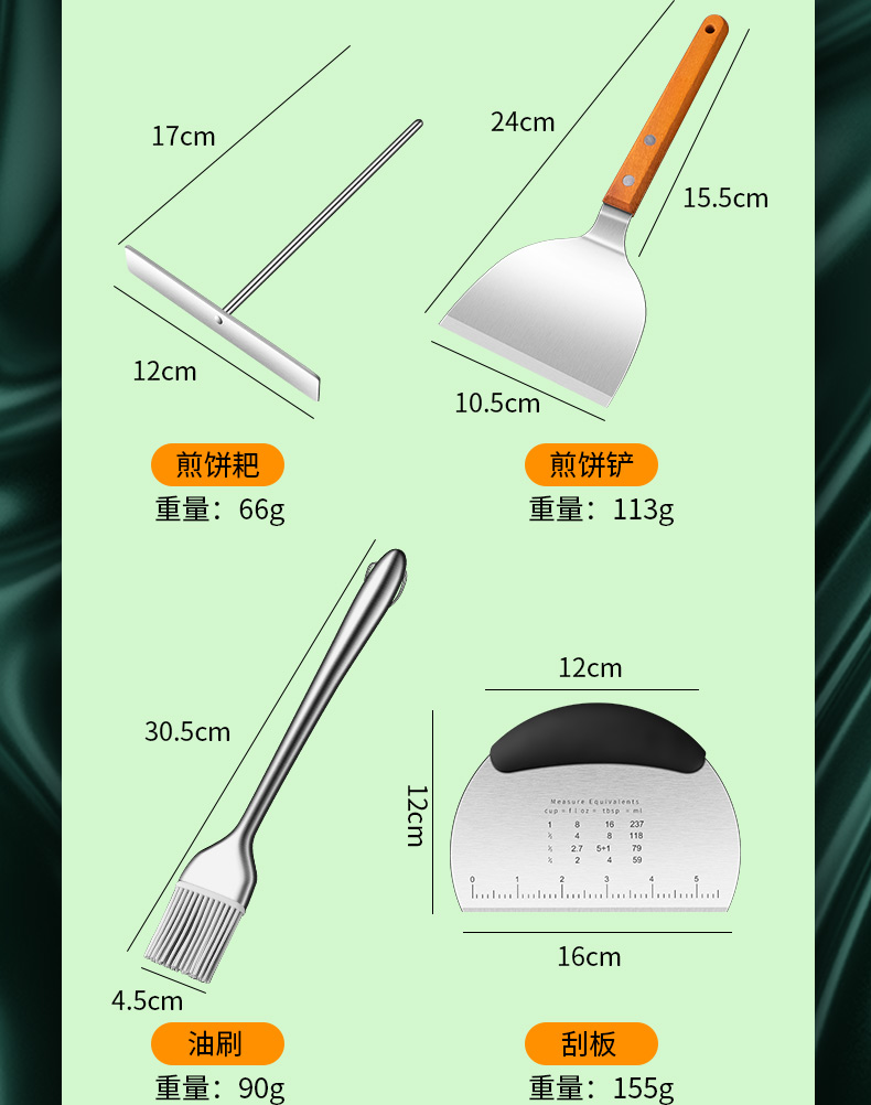 HUYO pancake tools household pancake fruit tool set stainless steel egg pancake scraper shovel pancake artifact pancake rake pancake shovel scraper