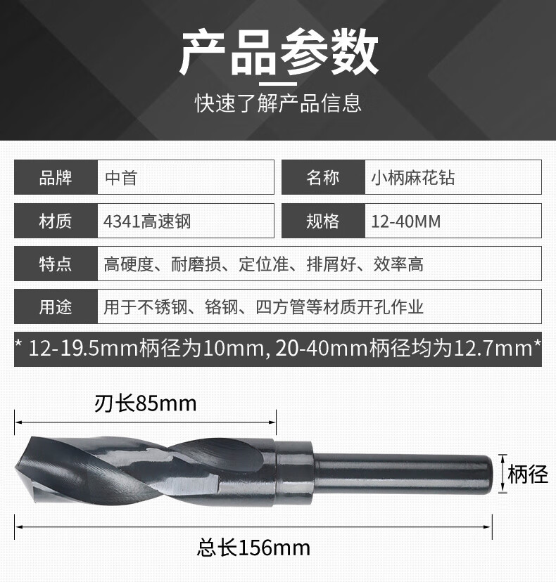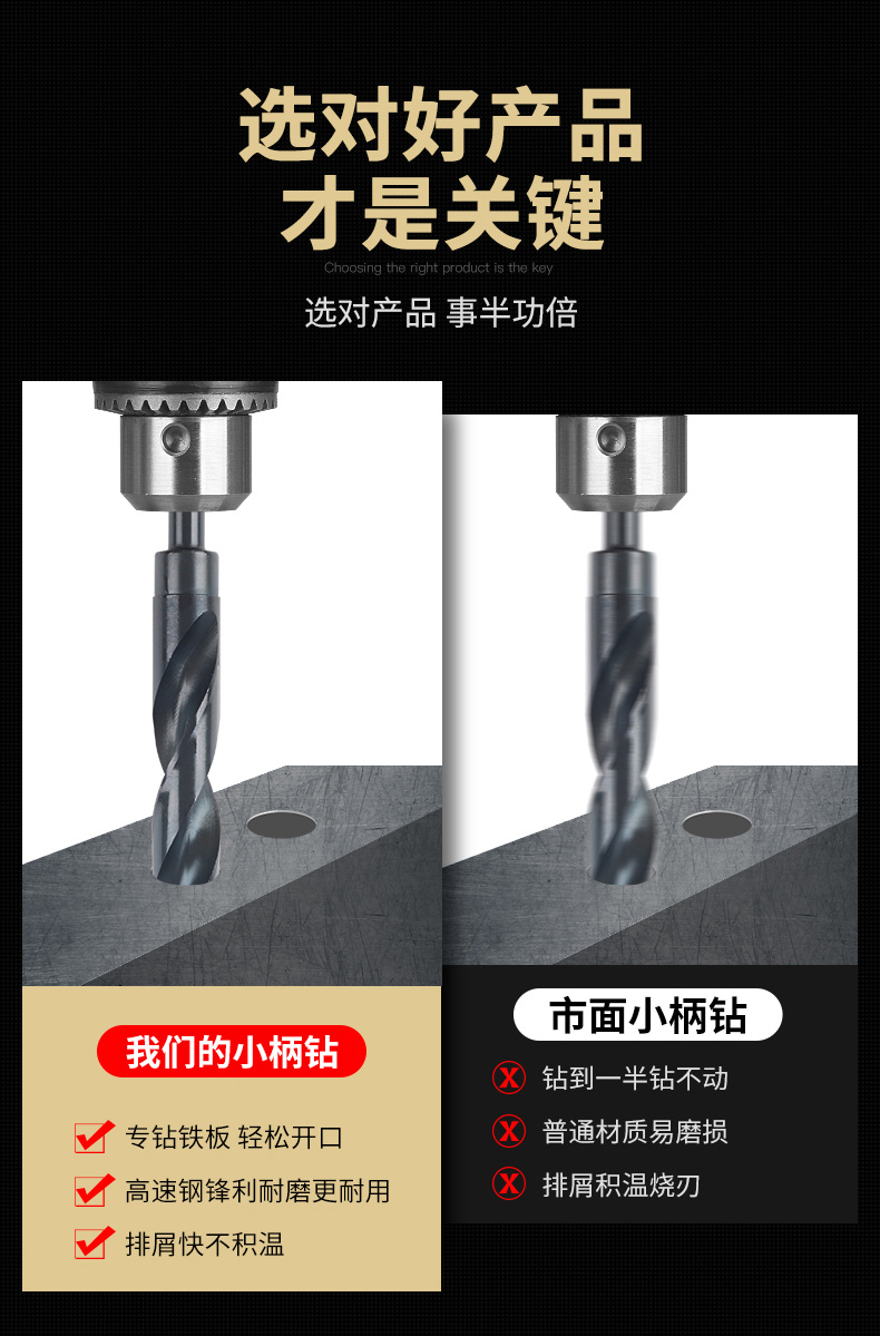 Zhongshou Small Handle Twist Drill Bit Collection High Hardness Hand Electric Drill for Iron Drilling Stainless Steel Woodworking Shrinking Handle and Other Handle Turn Head 16mm Twist Drill (Handle Thickness 10mm)