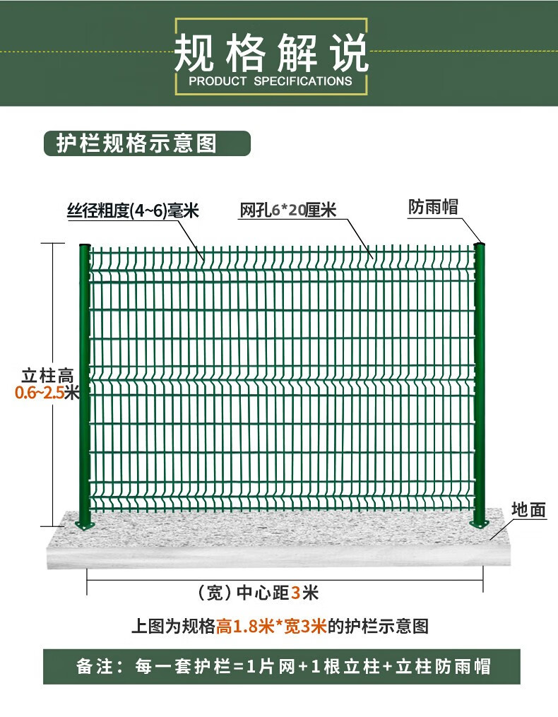 鑫绿源桃型柱护栏网围栏别墅小区围墙护栏加粗加厚铁丝网围栏护栏防护网 1.5米高*3米长 丝径5.0mm粗