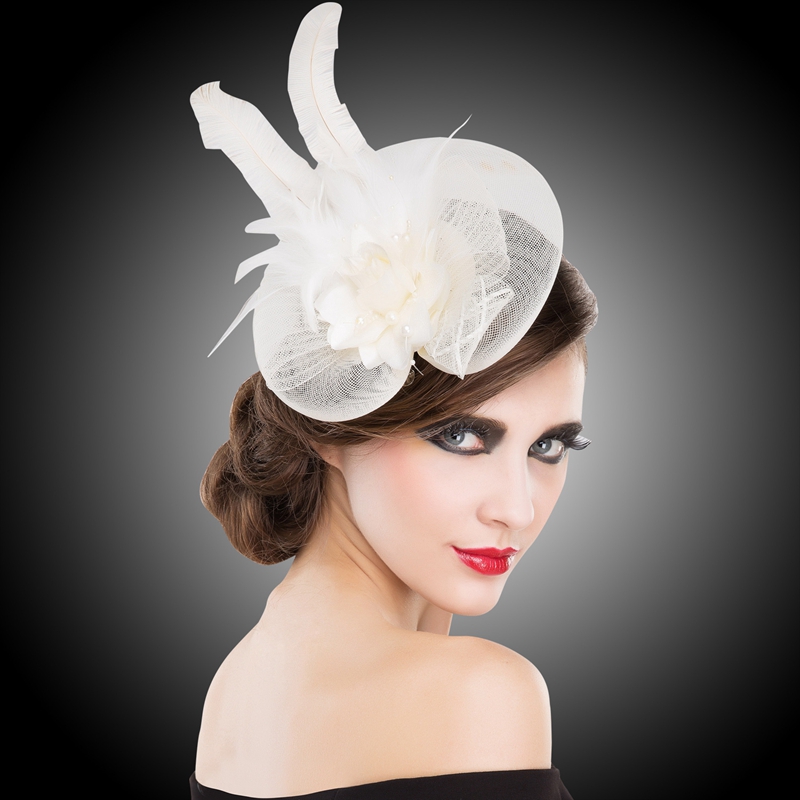 EE Summer New Style European and American Fashion Mesh Feather Headbands and Flower Top Hats Prom and Banquet T-Taiwan Trendy Products Red No Limit on Head Size