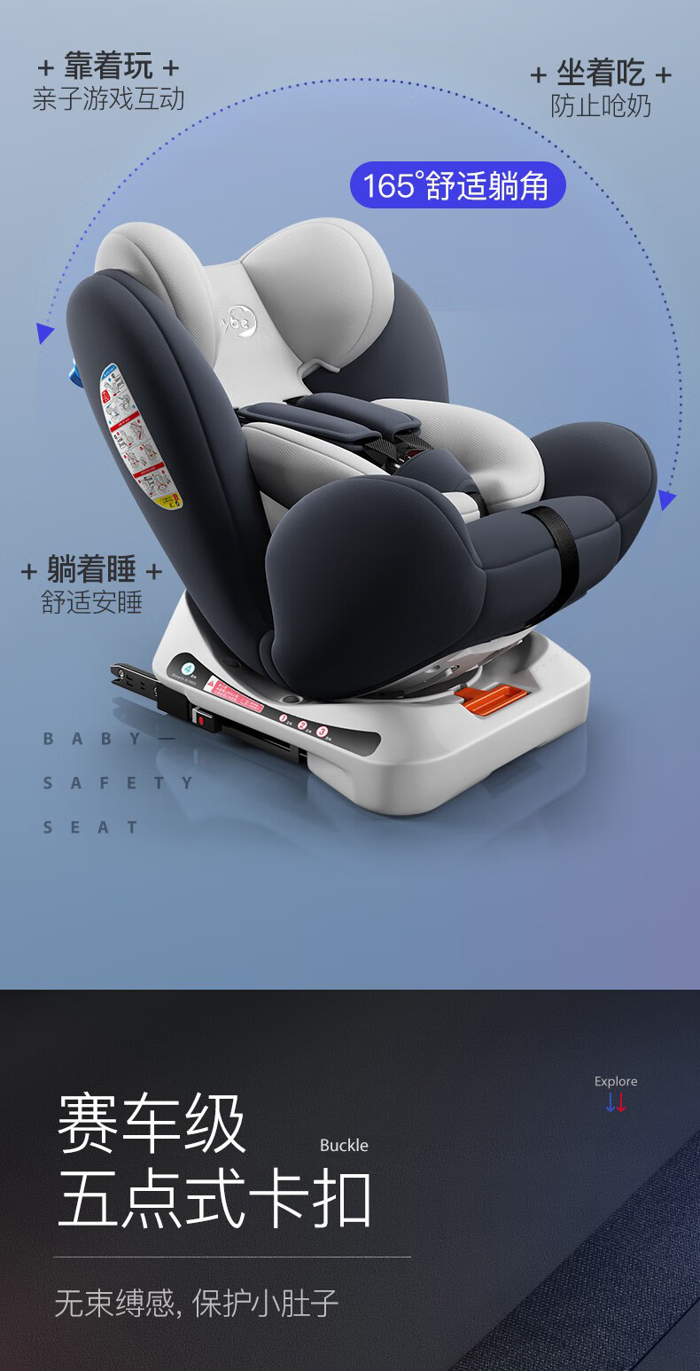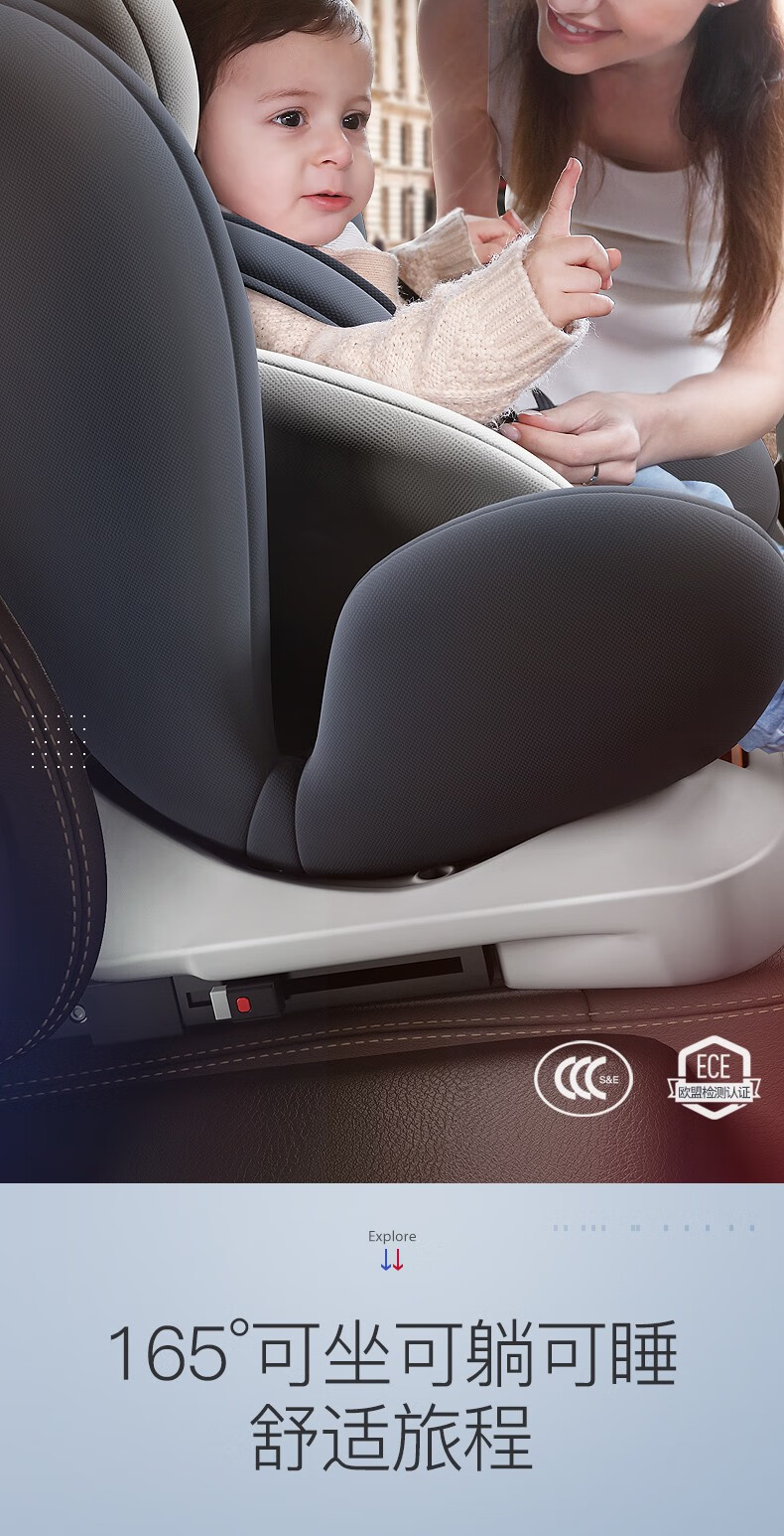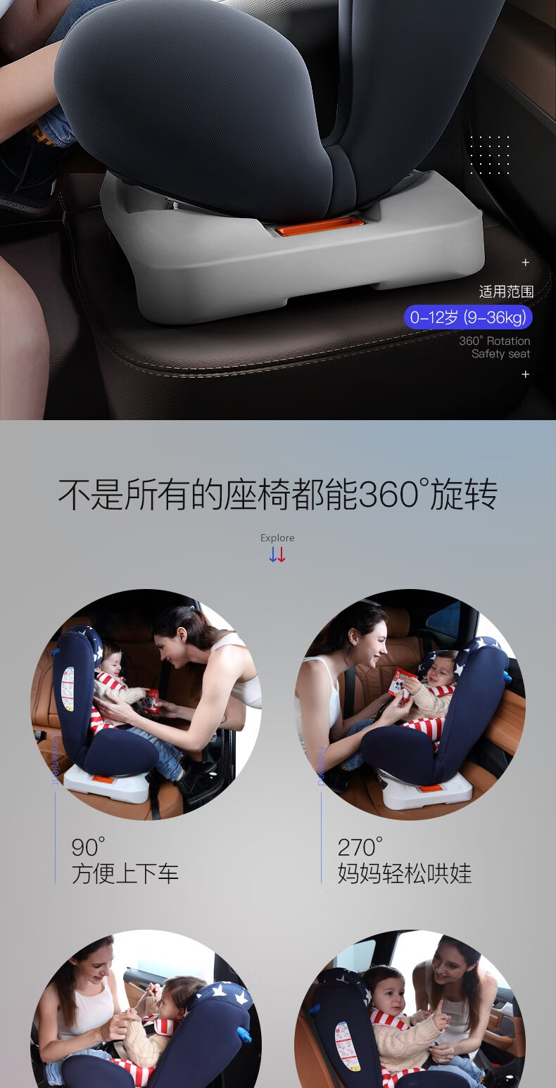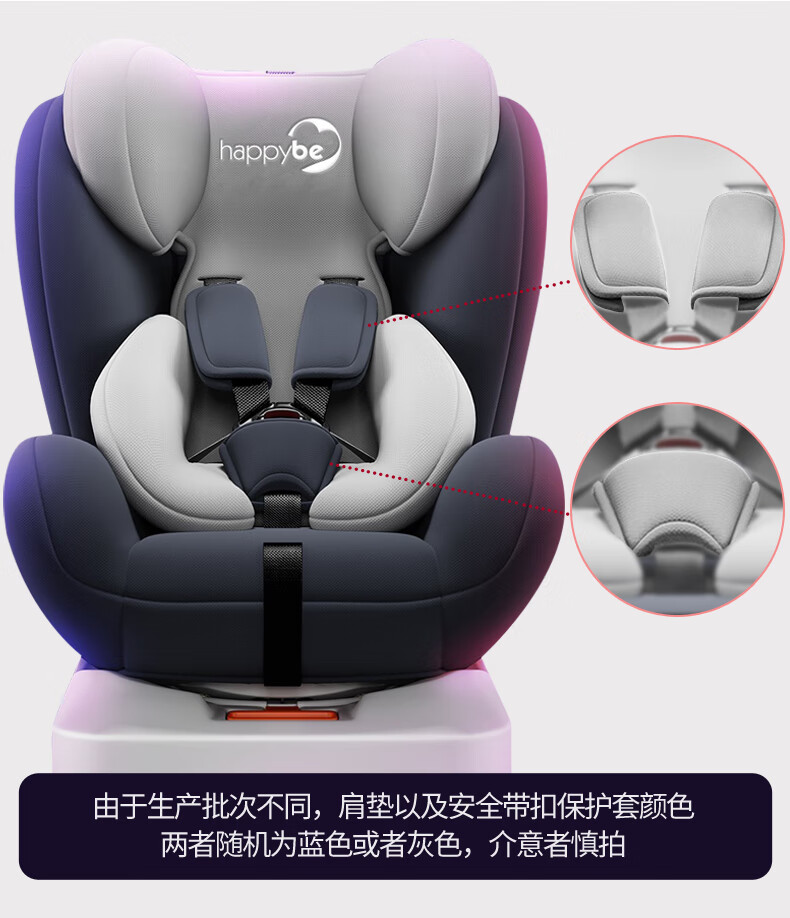 Happybe child safety seat 360-degree rotating car for infants 0-12 years old newborn baby car sleeping seat gray (isofix hard interface + steel frame) isofix hard interface