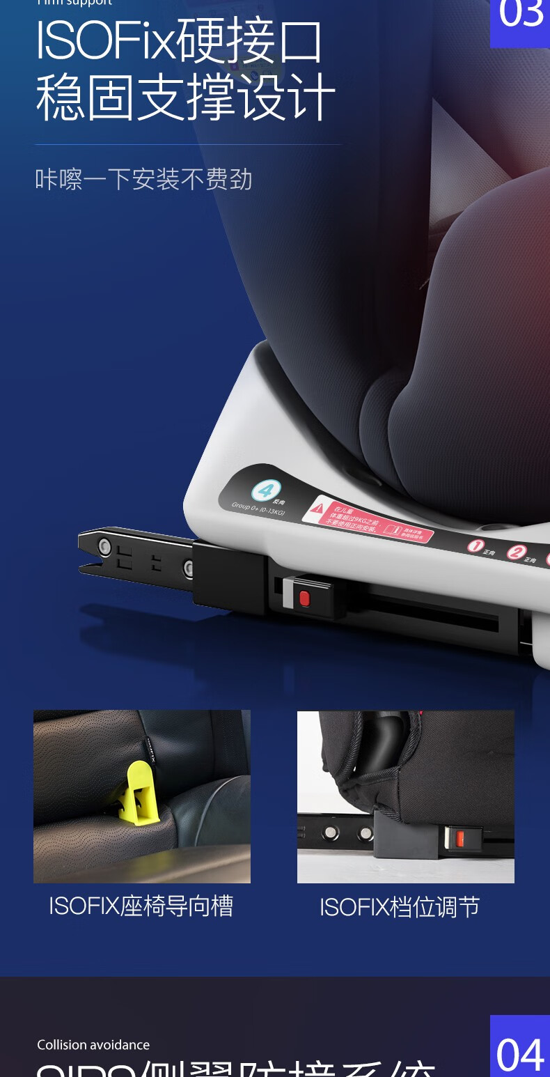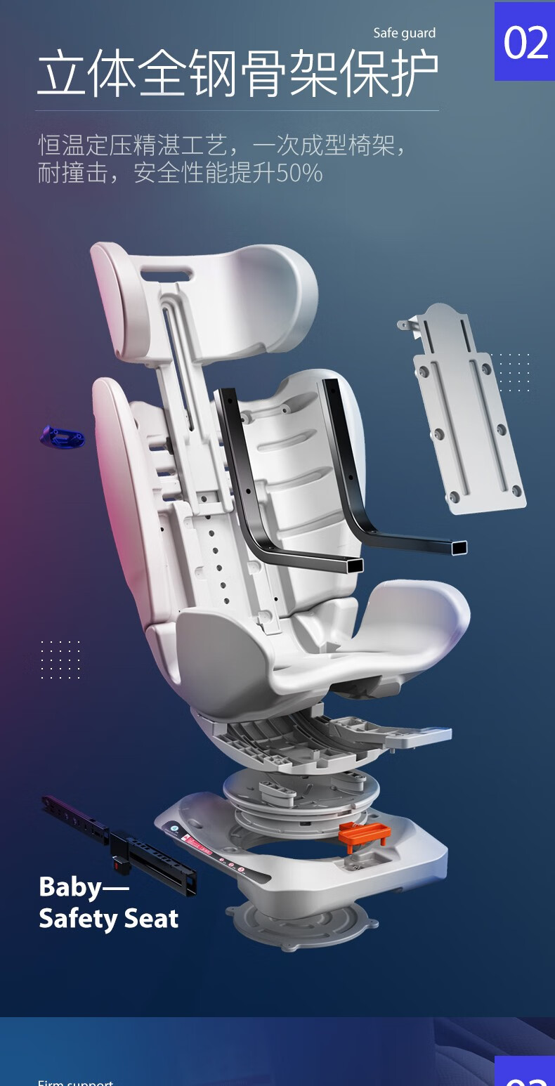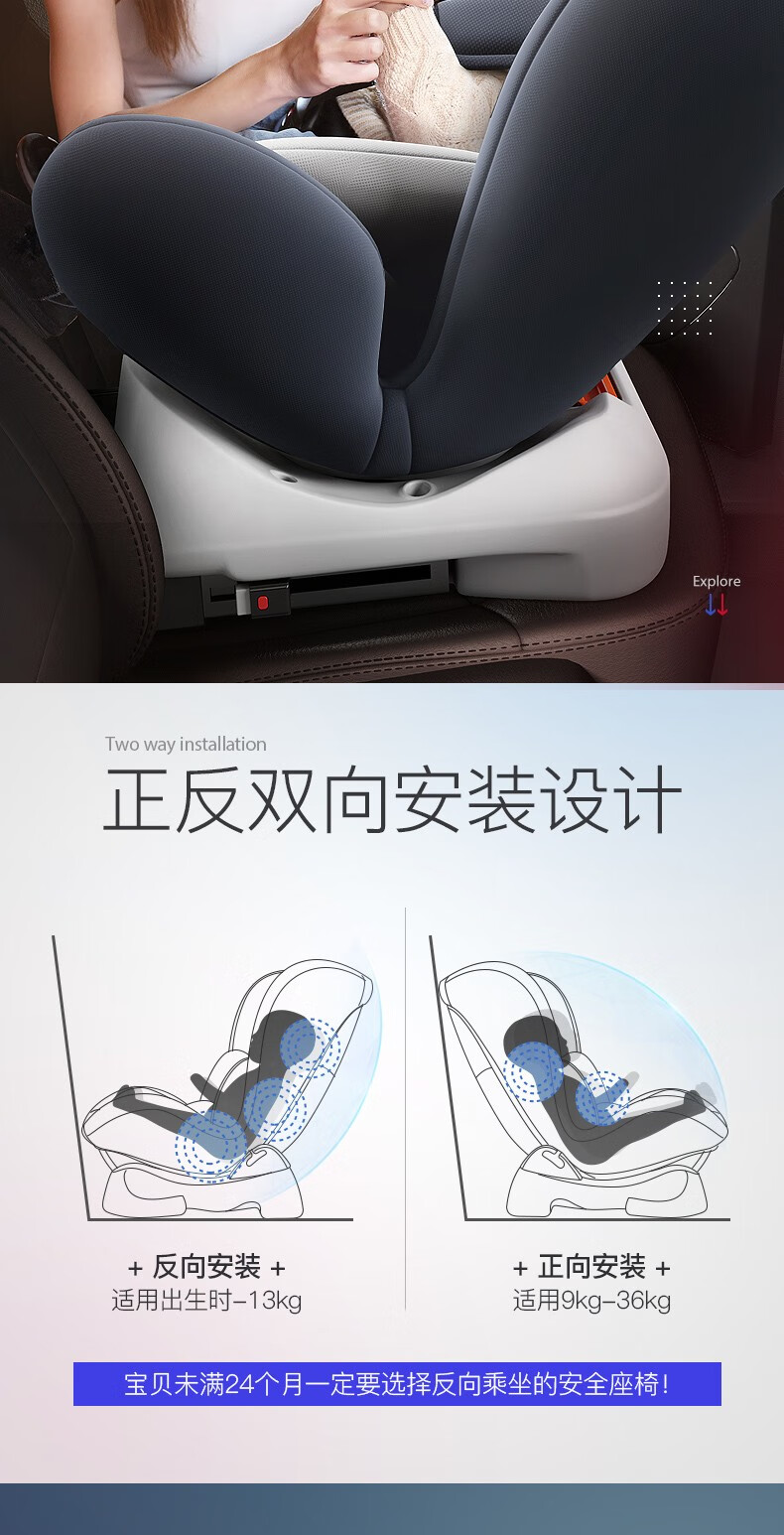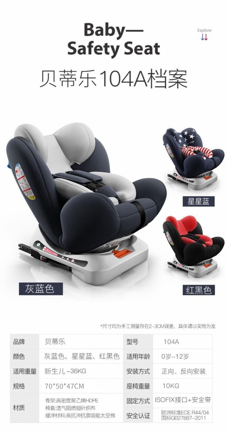 Happybe child safety seat 360-degree rotating car for infants 0-12 years old newborn baby car sleeping seat gray (isofix hard interface + steel frame) isofix hard interface