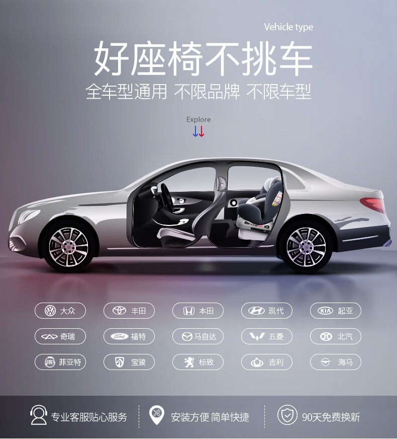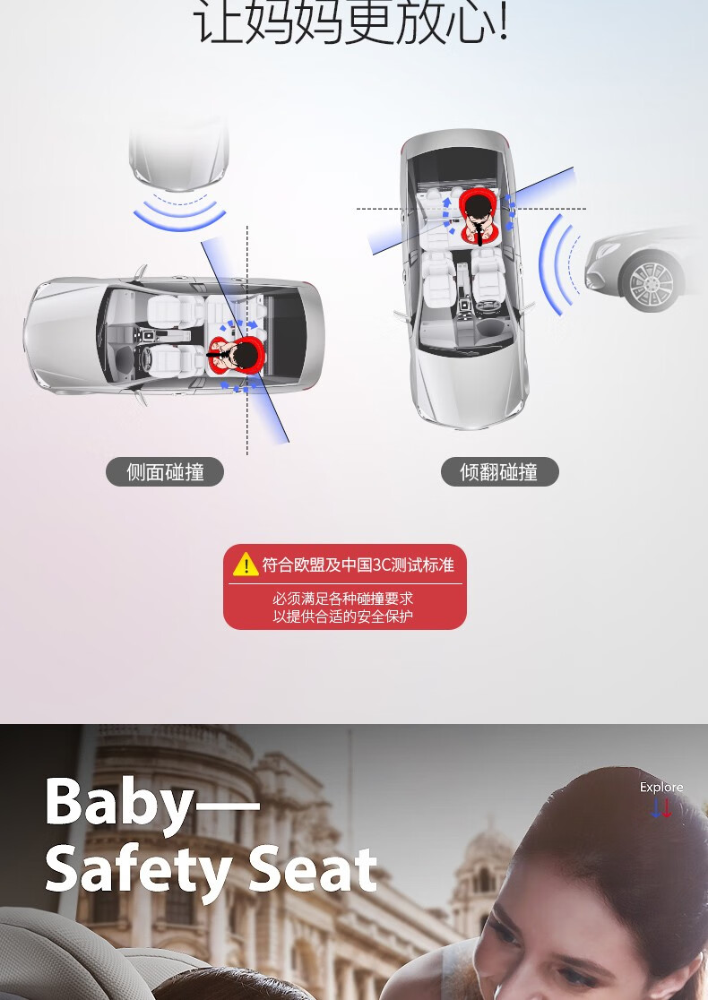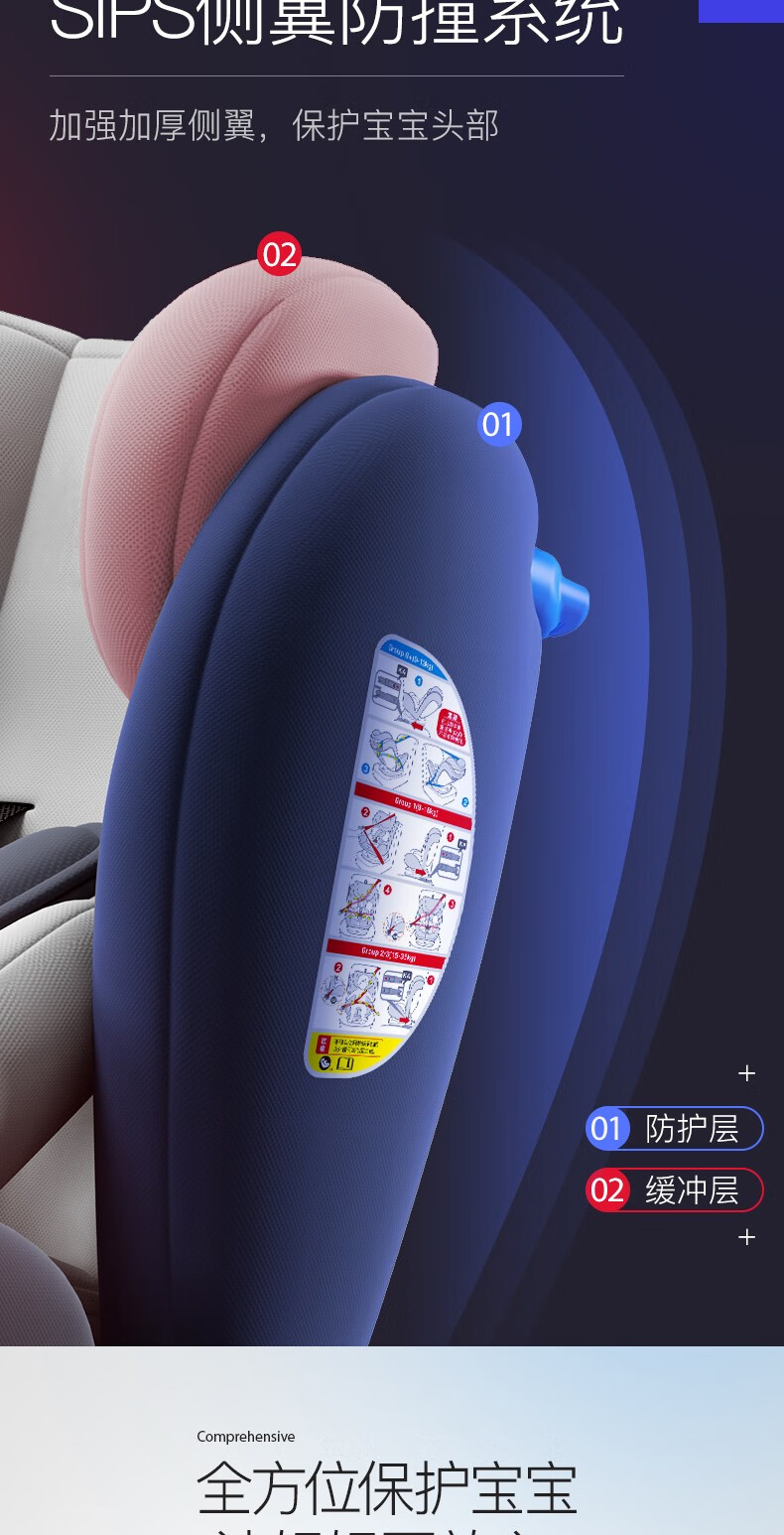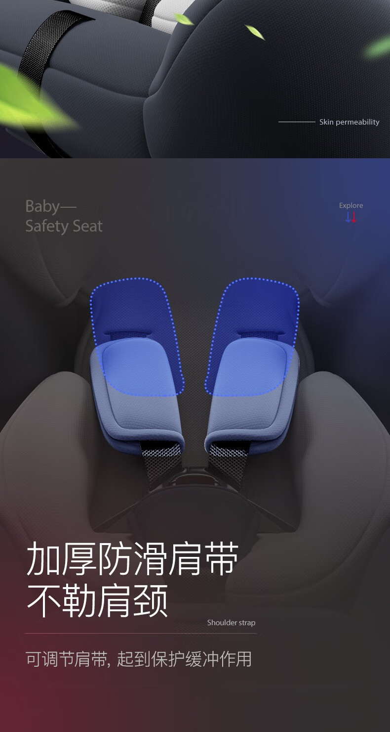Happybe child safety seat 360-degree rotating car for infants 0-12 years old newborn baby car sleeping seat gray (isofix hard interface + steel frame) isofix hard interface