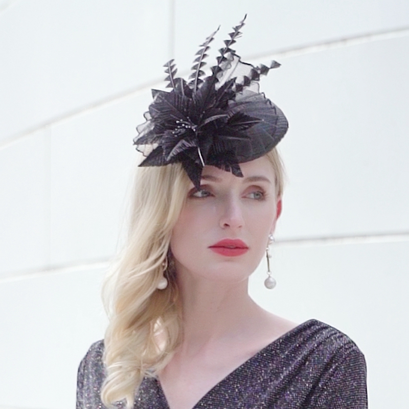 EE summer new style black flower banquet ladies fashion hat hat women summer elegant lace flower hat black adjustable