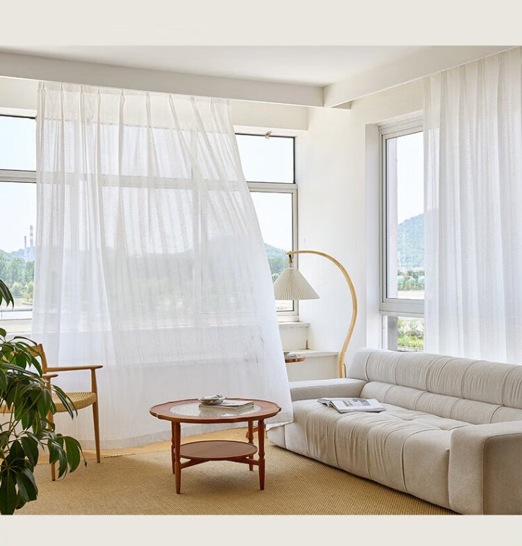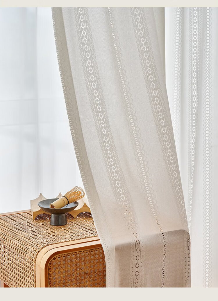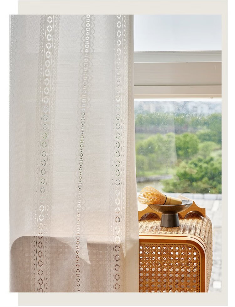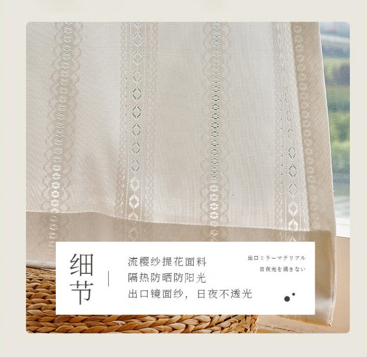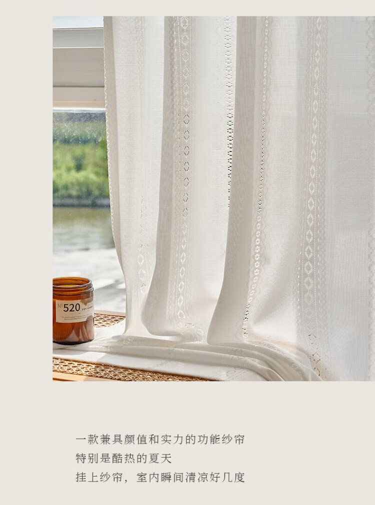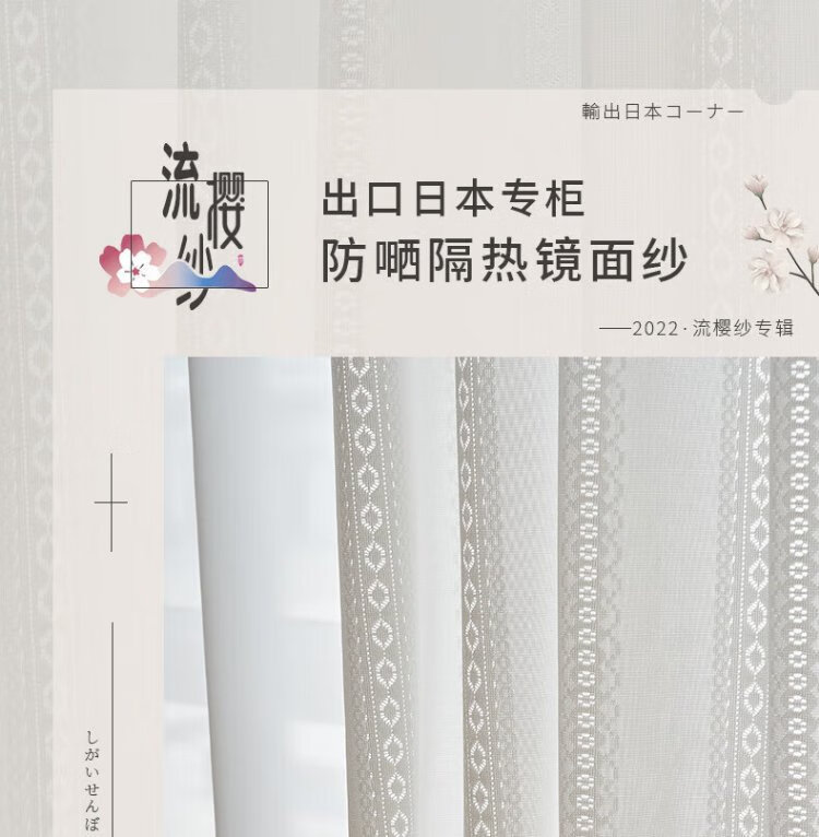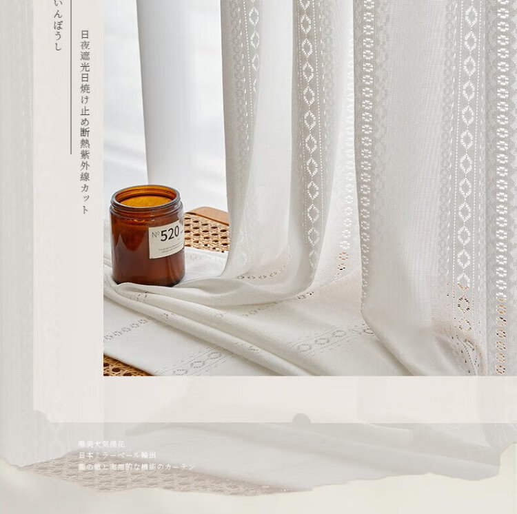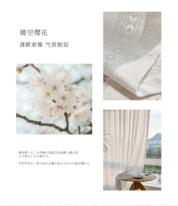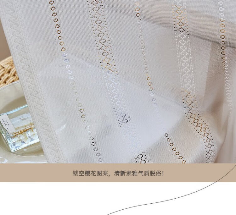 Qiao Nai can be customized Japanese sun protection heat insulation light-transmitting opaque mirror flow cherry gauze curtain jacquard hollow white yarn flow cherry gauze white custom width 1 meter * height 2.7 meters / Korean pleat hook can be changed to the height
