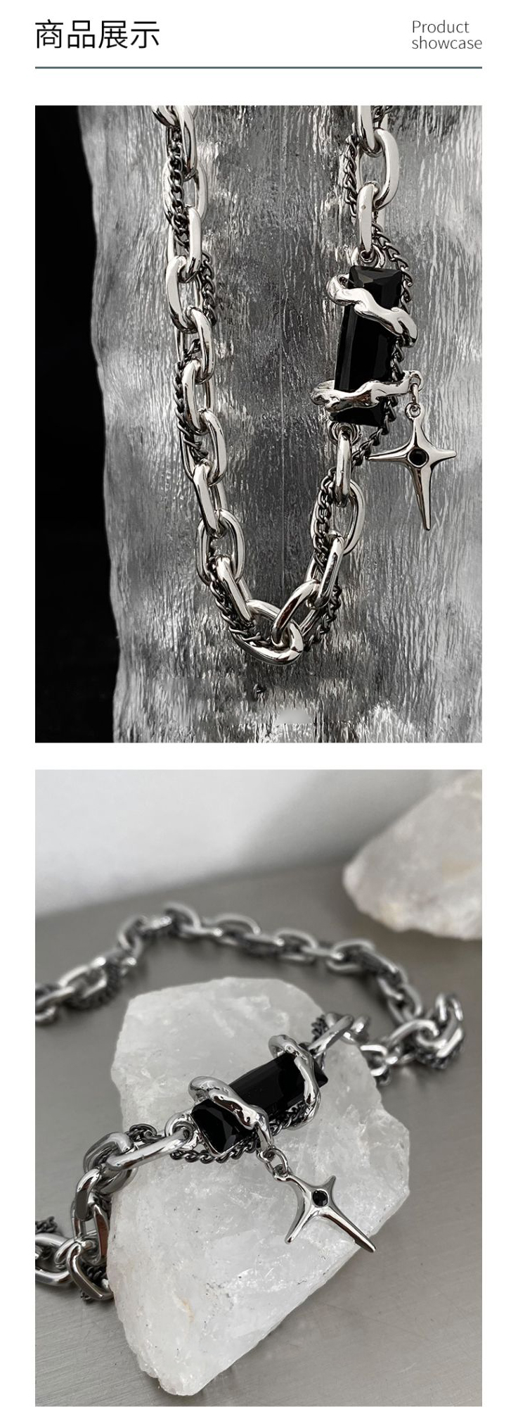 TULM black diamond multi-layer winding necklace pendant for men and women, trendy and cool clavicle chain for couples, Valentine's Day birthday gift for boyfriend L1157 dark winding star necklace