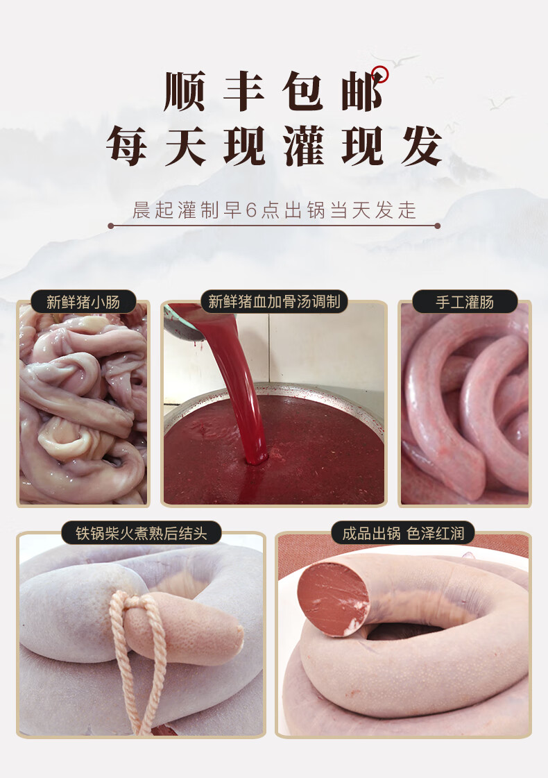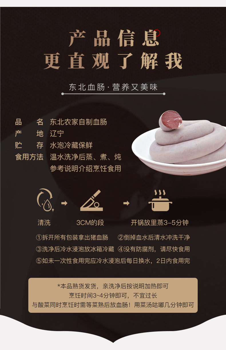 Northeastern Blood Sausage Liaoning Specialty Pig Blood Sausage Freshly Filled Food 2Jin Jin equals 0.5kg Blood Sausage + Pickled Cabbage Vermicelli