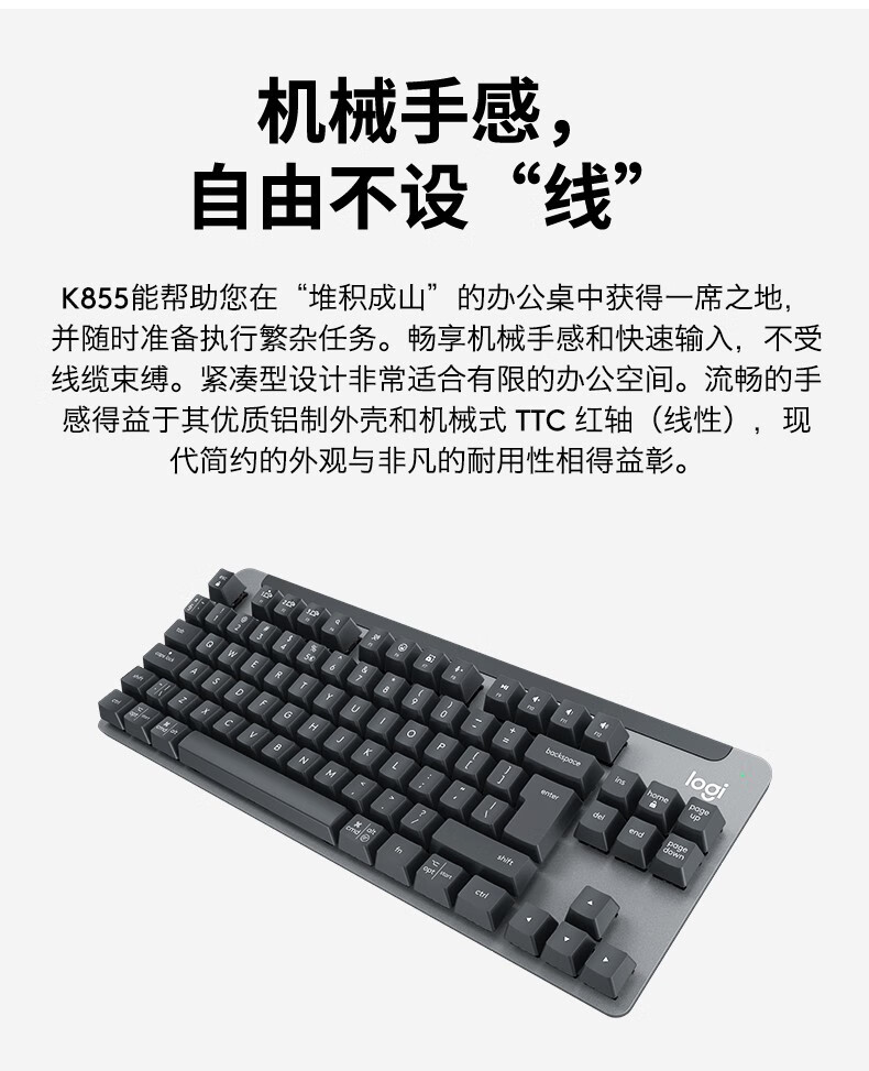 Logitech K855 Wireless Mechanical Keyboard Wireless Keyboard Bluetooth Keyboard Esports Gaming Office Keyboard Laptop MAC Keyboard K855 Wireless Mechanical Keyboard Black TTC Shaft-Red Shaft