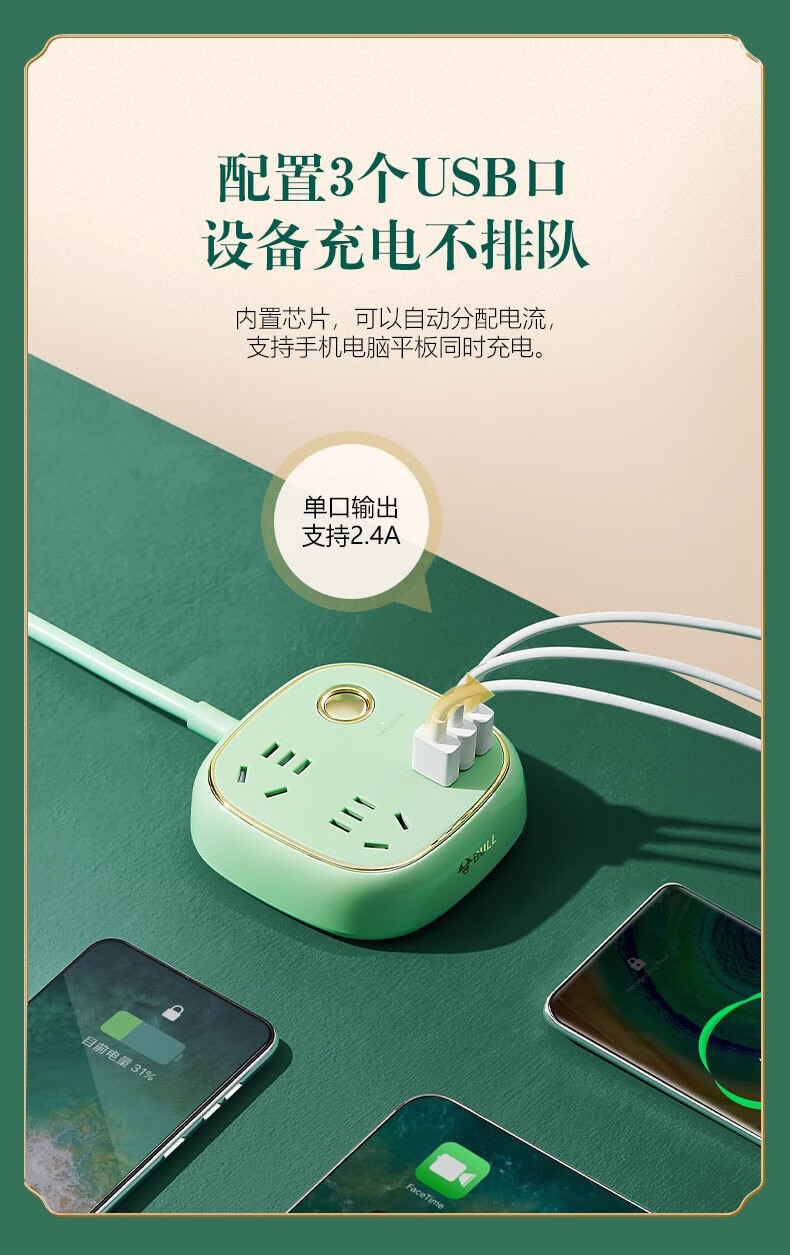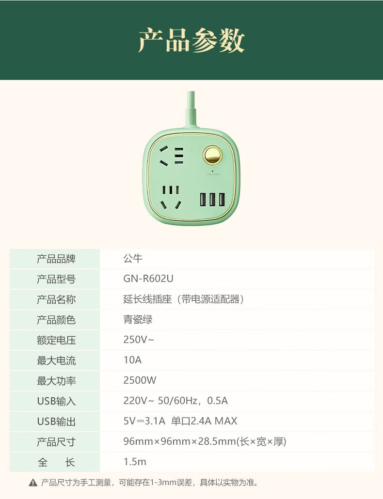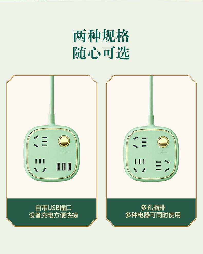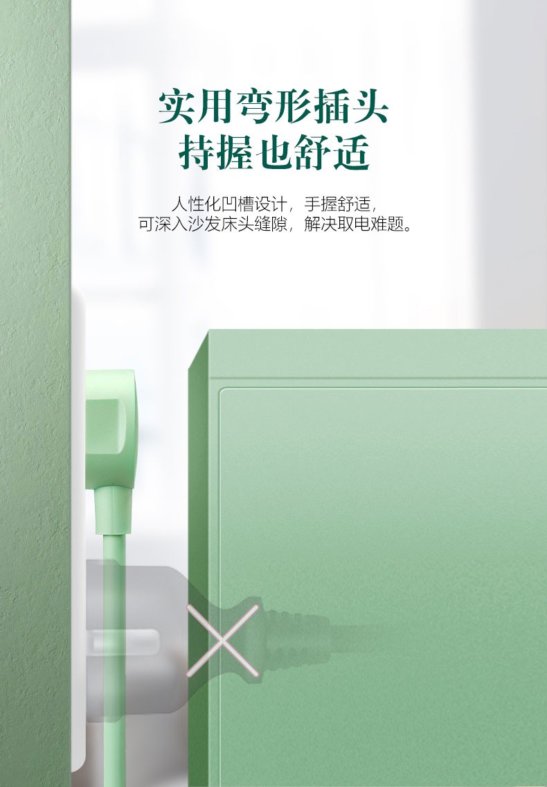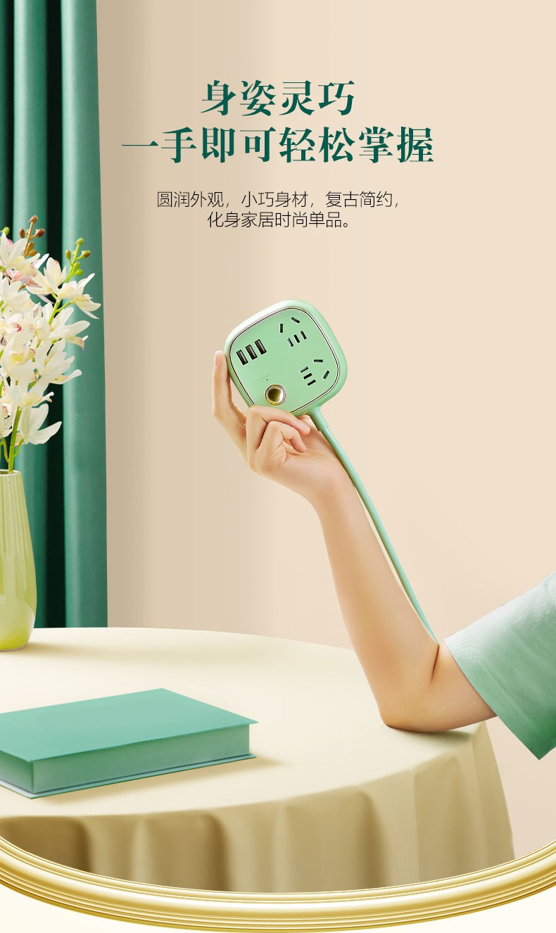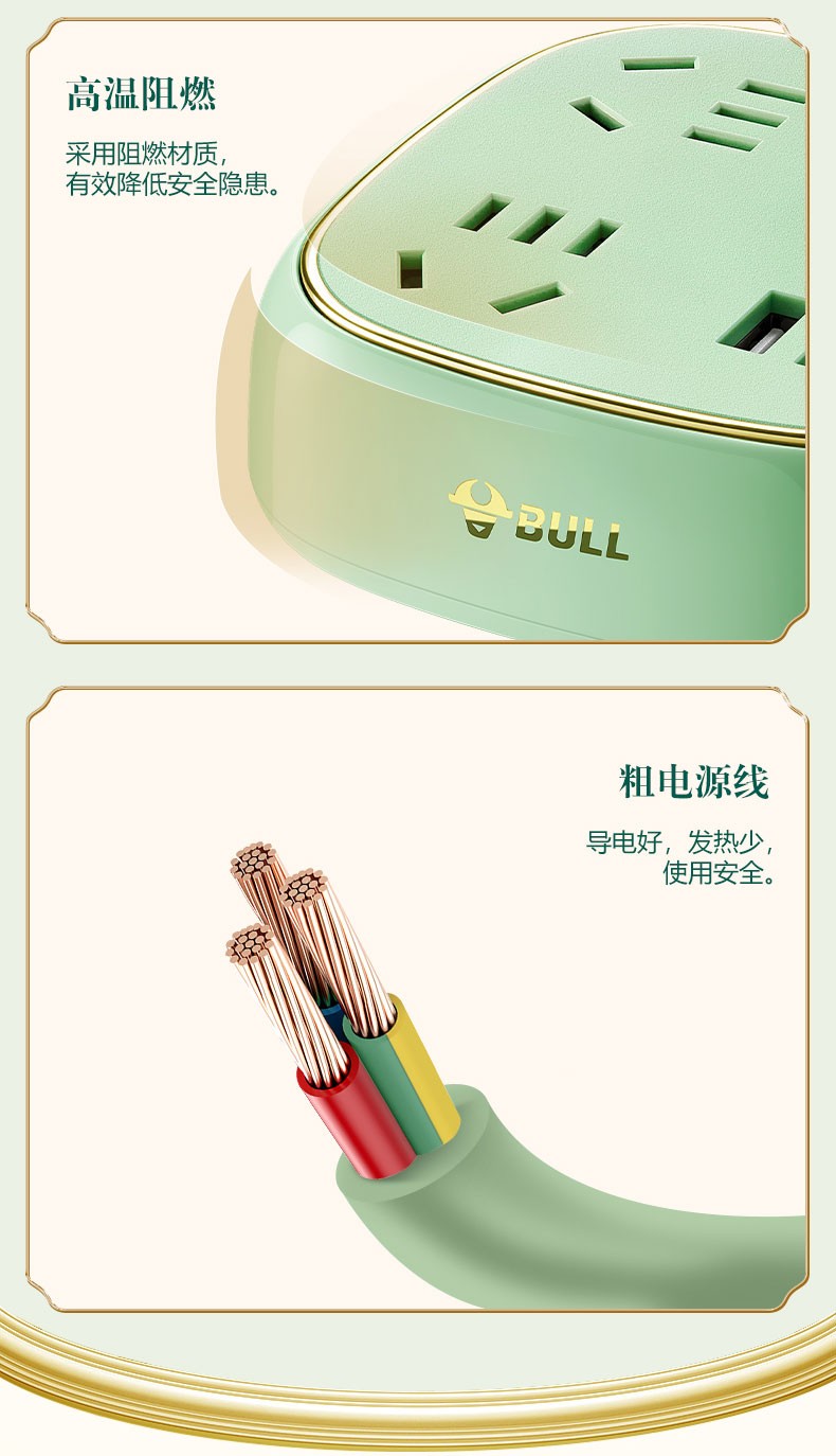 Bull socket retro girly heart safe and cute power strip on the bed for home with wired USB power strip smart power strip wiring board dormitory high-value power strip 2 sockets + USB + Typec 1.5 meters R602KQ black