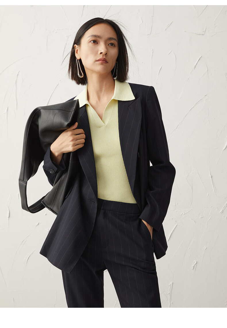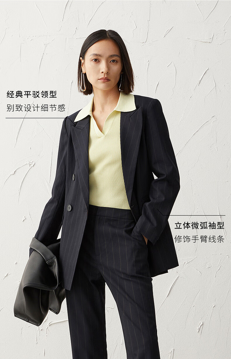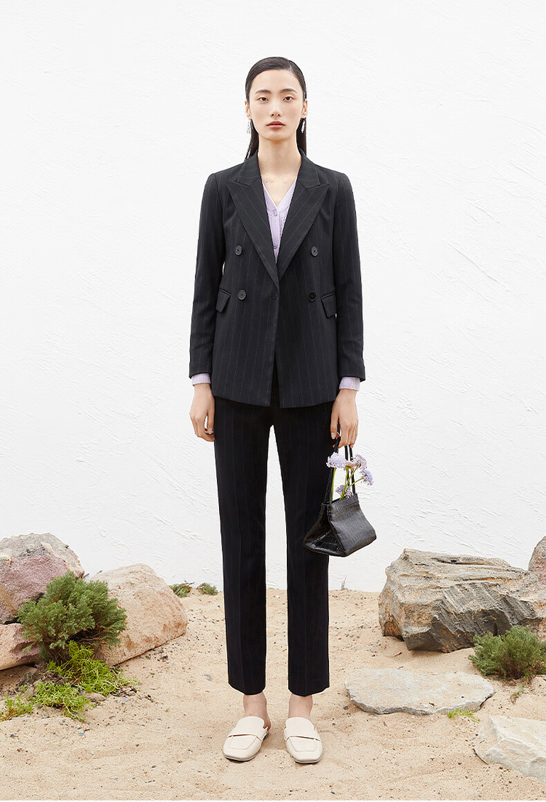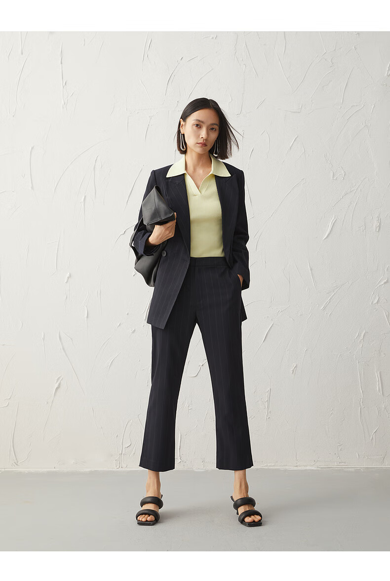 Mai Meng Shopping Mall Mai Meng 2022 Autumn New Style Suit Striped Lapel Jacket Pants Women Dark Navy Pants 599C250221-1 S 155/80A (110 Jin Jin is equal to less than 0.5 kg)