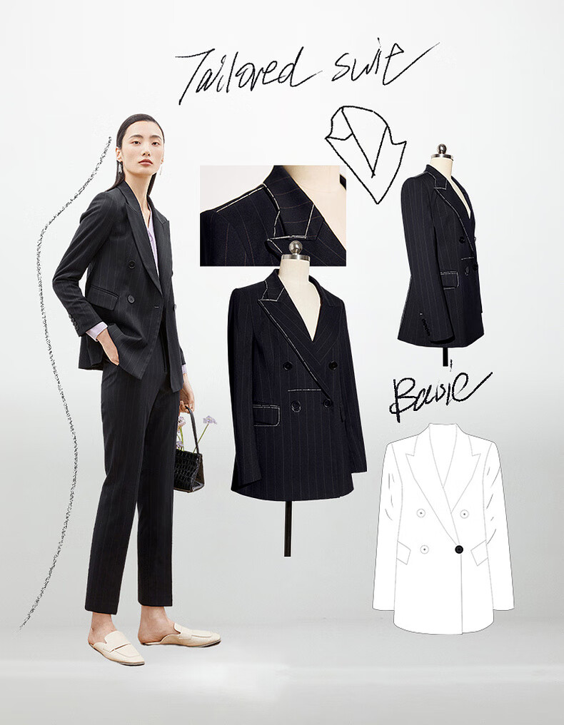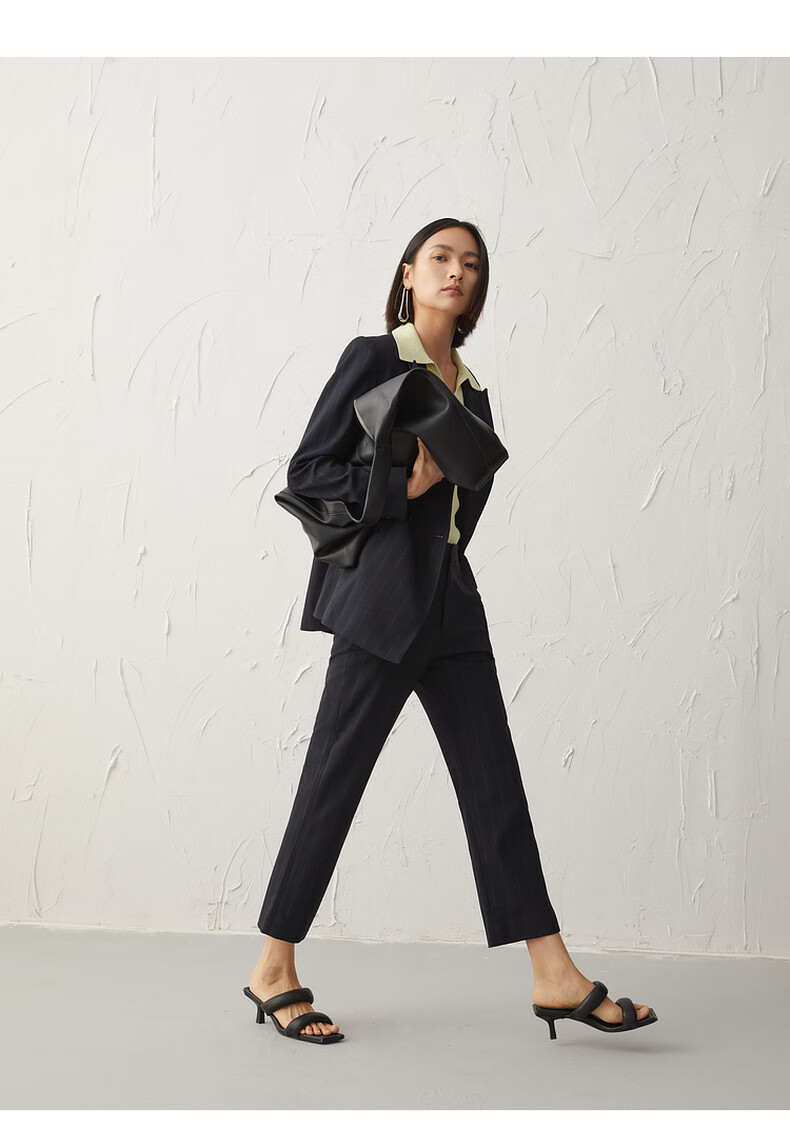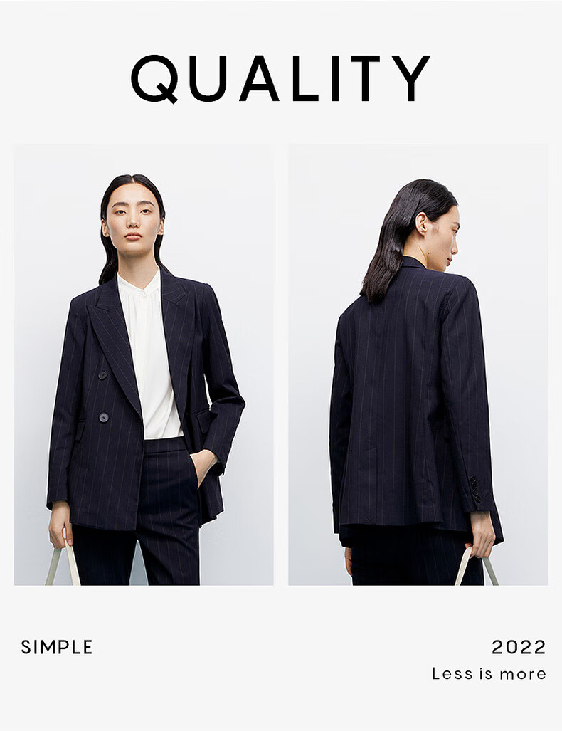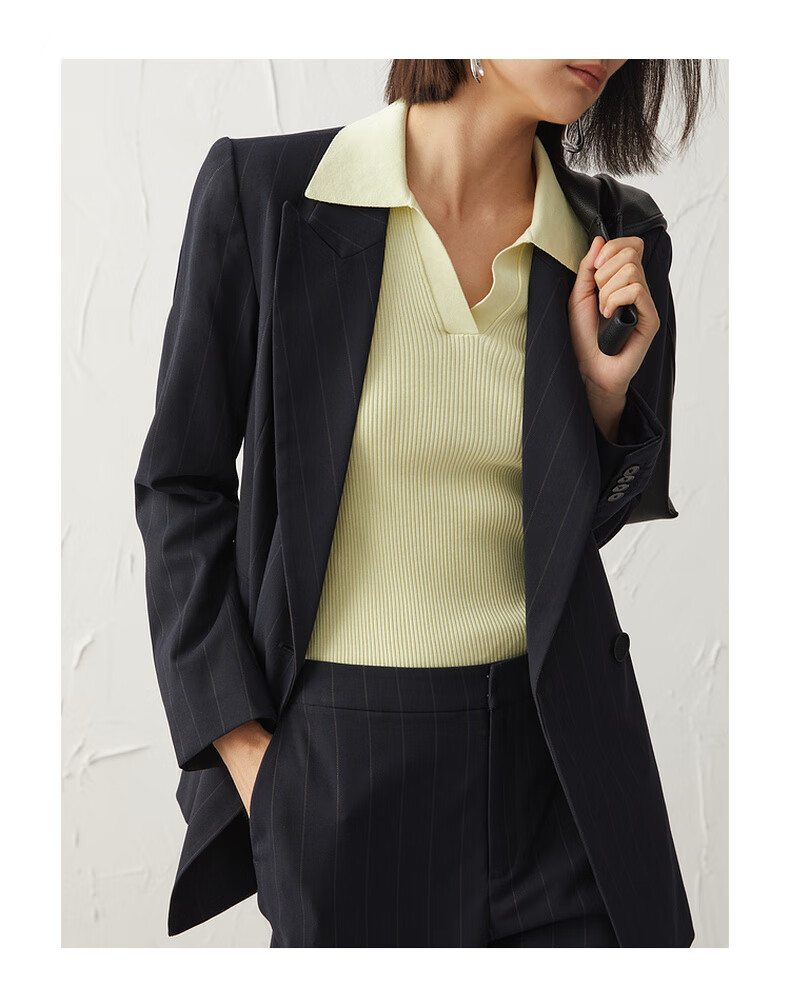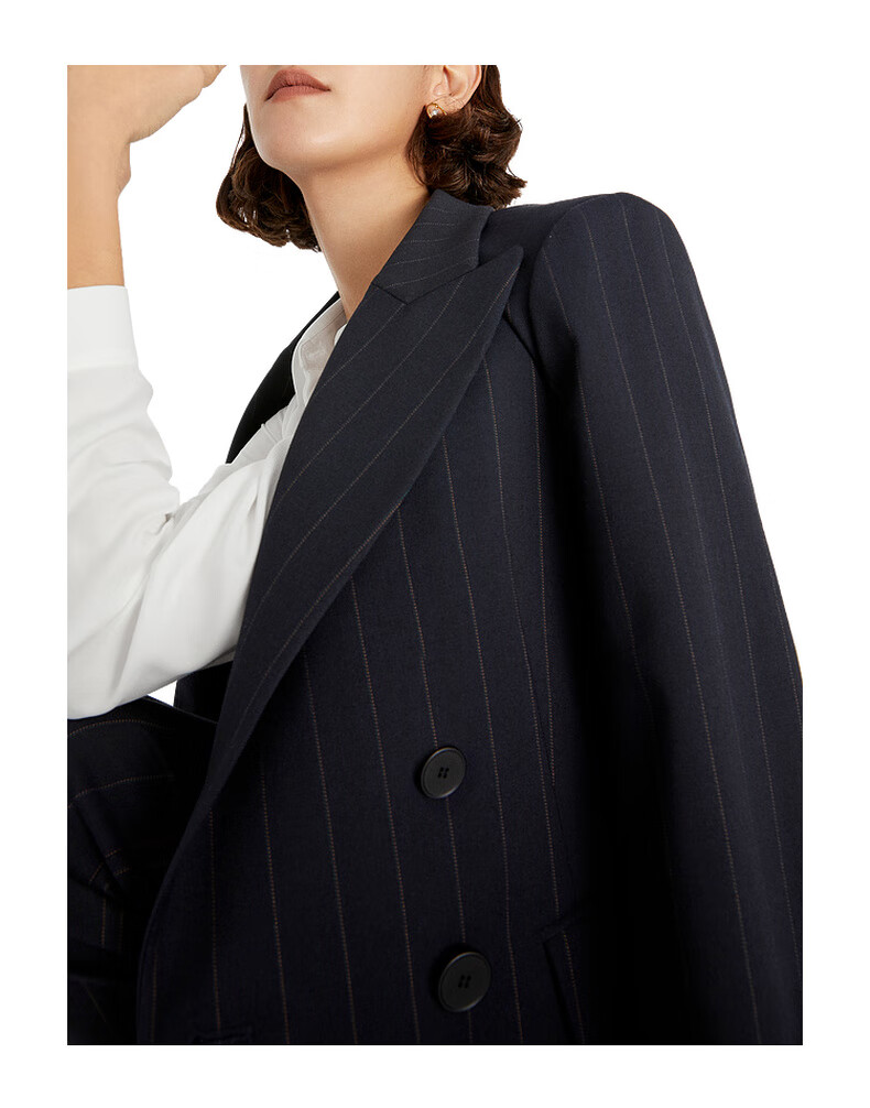 Mai Meng Shopping Mall Mai Meng 2022 Autumn New Style Suit Striped Lapel Jacket Pants Women Dark Navy Pants 599C250221-1 S 155/80A (110 Jin Jin is equal to less than 0.5 kg)
