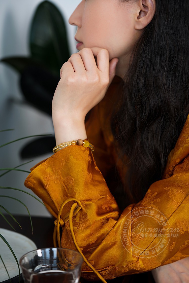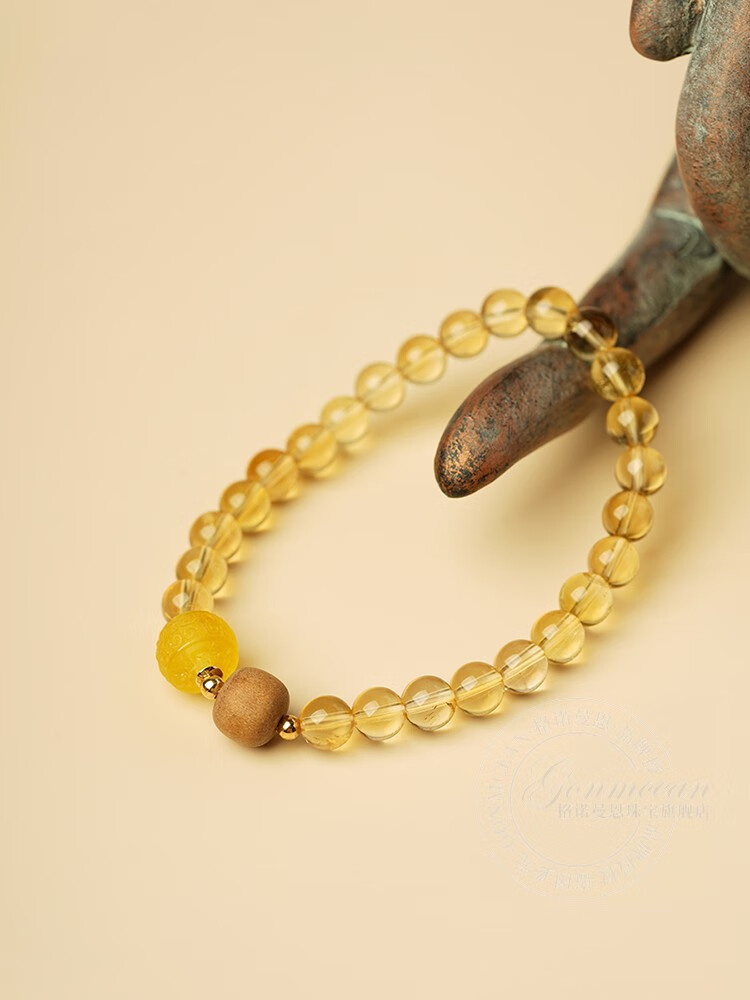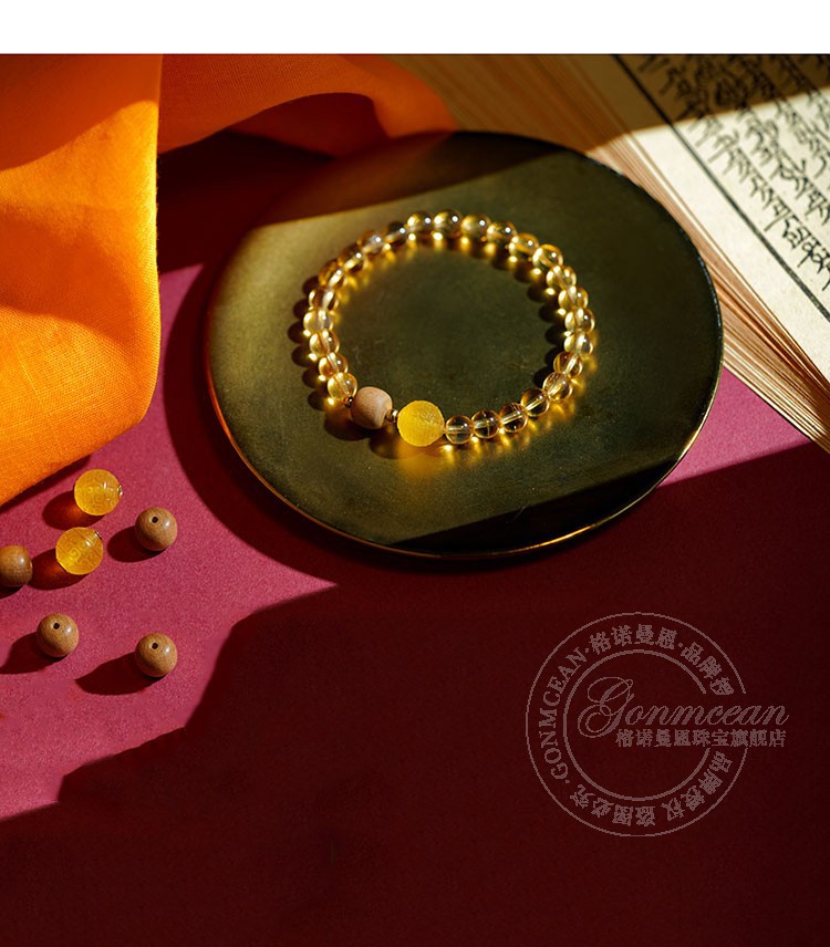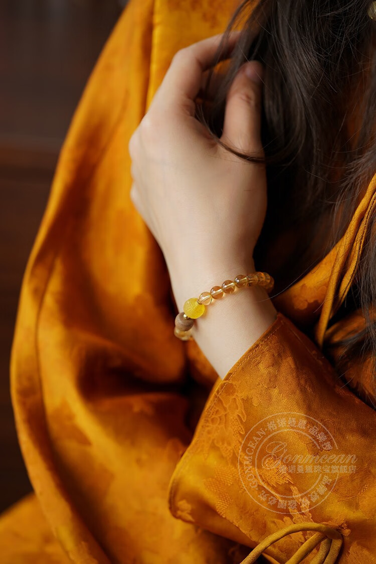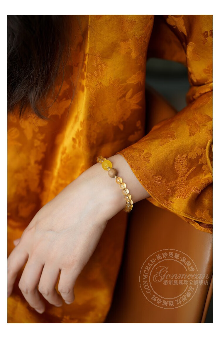 GONMCEAN Brazilian Citrine Bracelet Women's Amulet Bracelet Women's Gift Beads 8mm