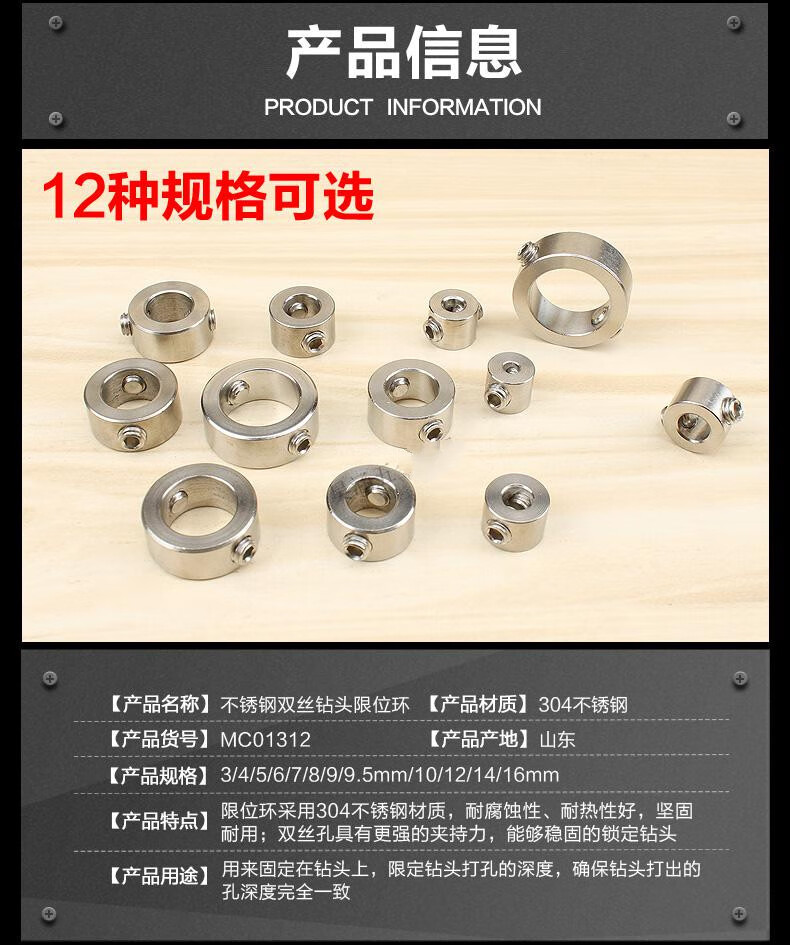 Drill bit limit ring, fixed ring, stainless steel optical axis drill bit positioner, limiter, positioning ring, positioning ring, one stainless steel 3mm limit ring