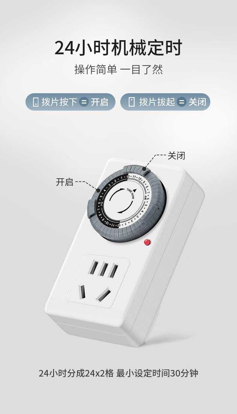 DELIXI (DELIXI) national standard mechanical timer socket mobile phone charging anti-overcharging power strip/socket/socket 12h model mechanical timing