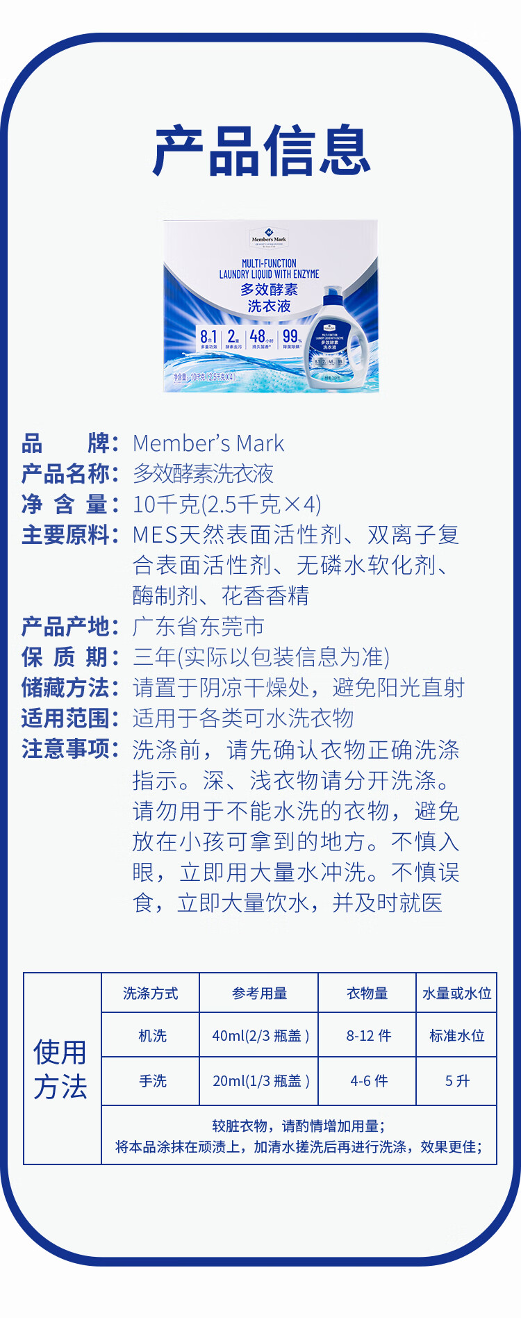 Multi-effect enzyme laundry detergent 10kg (2.5kg*4) 2.5kg*4 bottles
