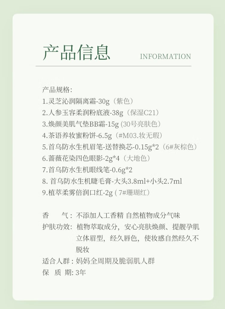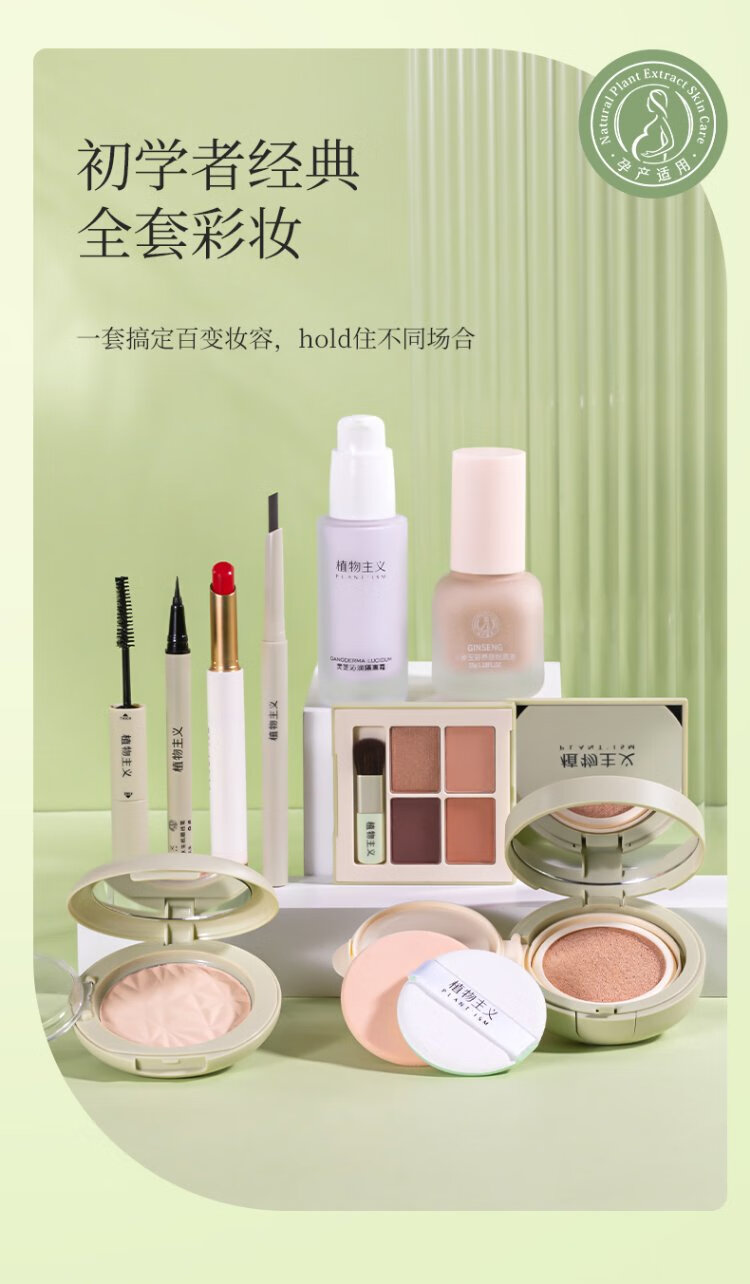Botanical Makeup Set for Pregnant Women, Cosmetics, Lipstick, Foundation, Eyebrow Pencil, Air Cushion, Lip Glaze, Isolating Eye Cream, Brightening Color, Versatile Ace 9-piece Set, Botanical Makeup 9-piece Set