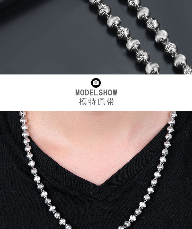 Zhou Hongjin platinum necklace men's platinum ball necklace pt950 platinum cat's eye necklace trendy men's platinum pendant clavicle chain platinum about 25 grams long about 56cm thick about 4.5mm