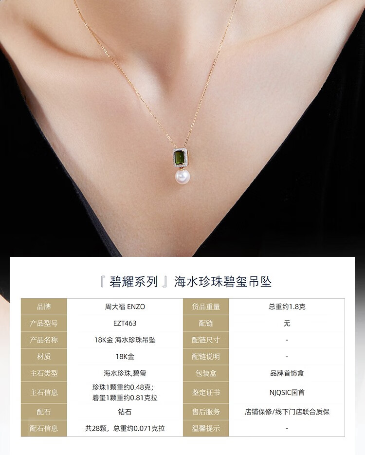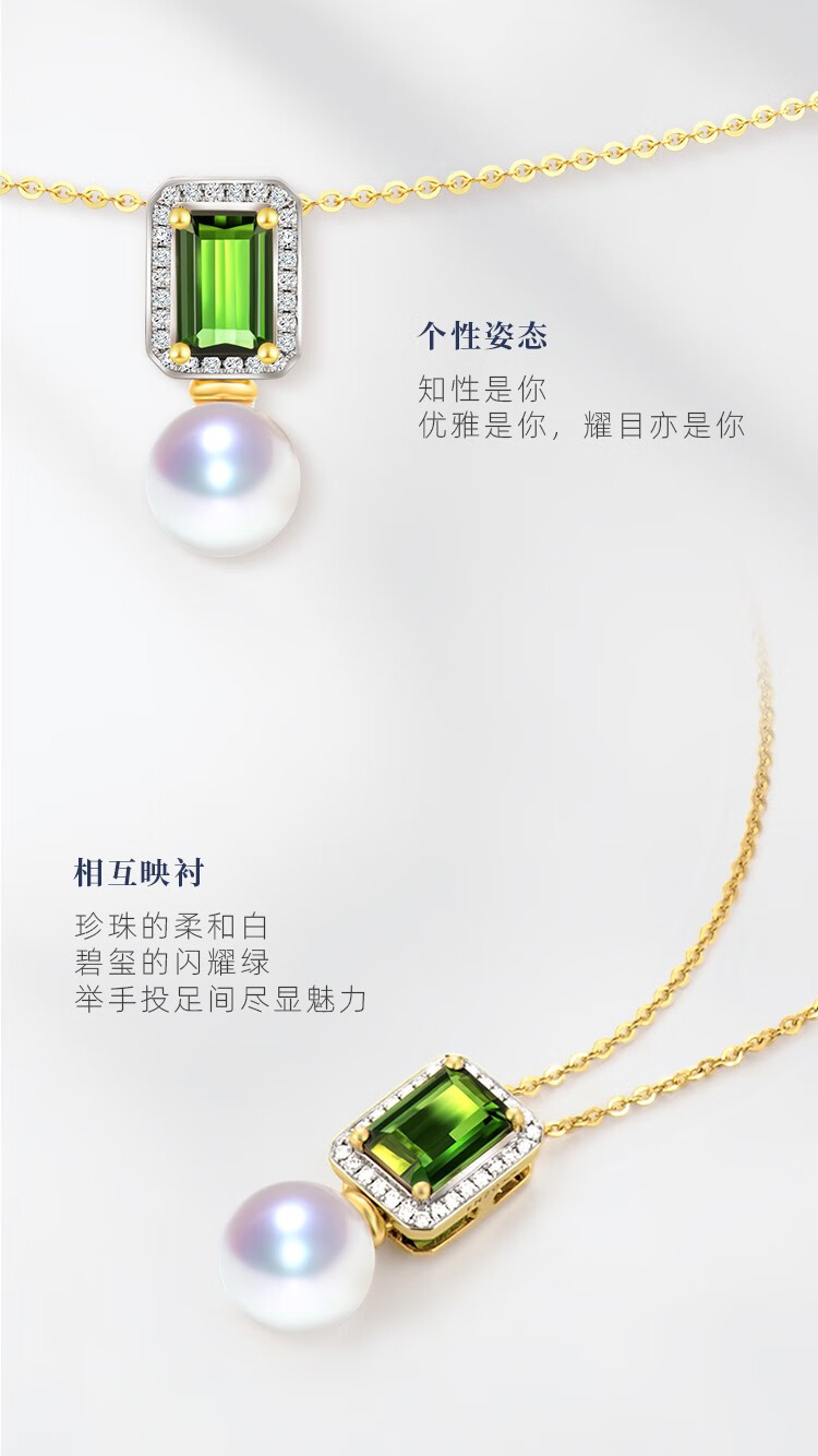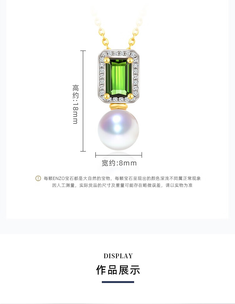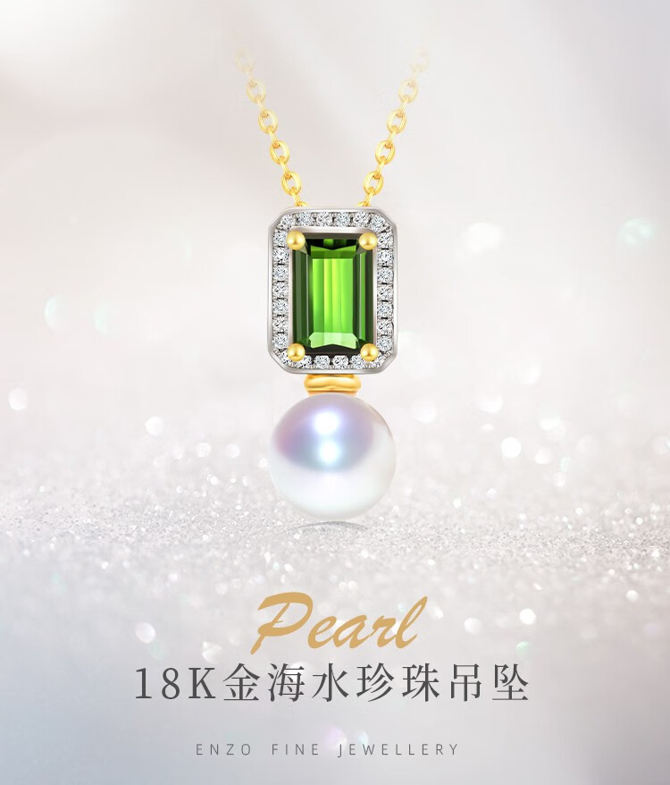 ENZO 18K Gold Seawater Pearl Tourmaline Diamond Pendant for Women EZT463 Silver Chain Birthday Gift 18K Gold Seawater Pearl Tourmaline Pendant 7-7.5mm