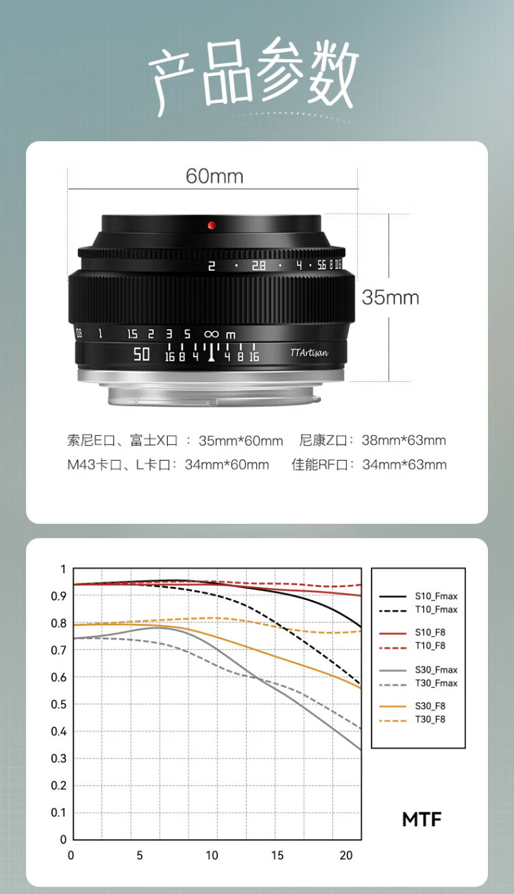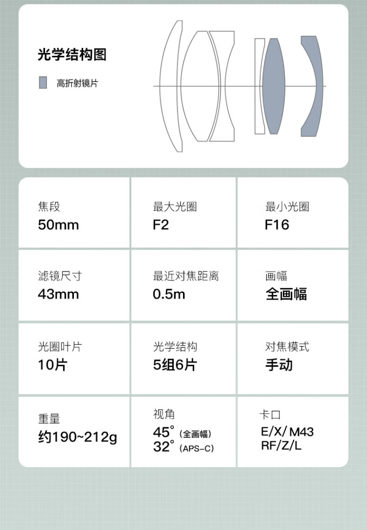 Mingjiang 50mm f2 full-frame fixed focus lens suitable for X-mount/E-mount/Z-mount/L-mount black L-mount