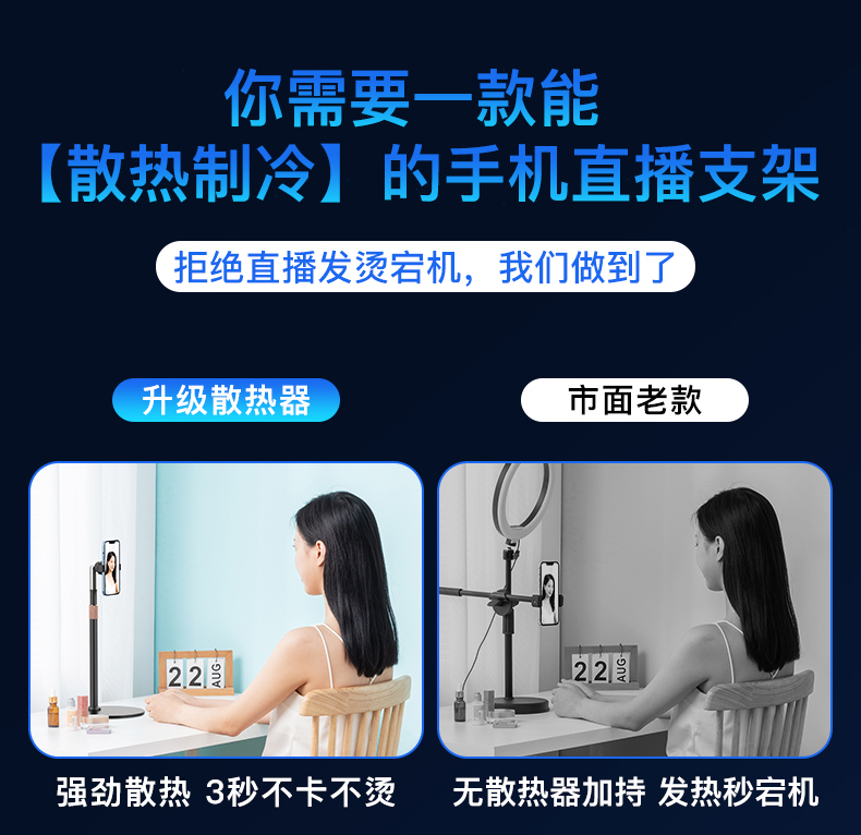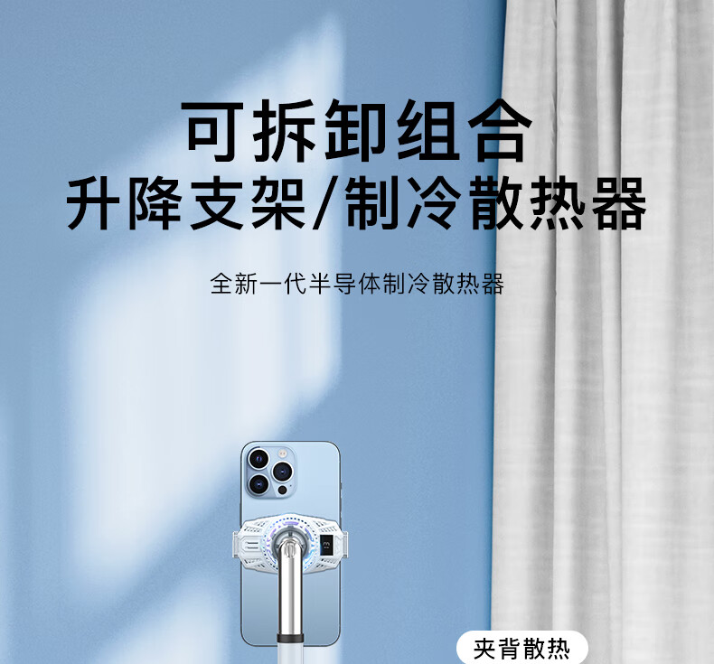PICKOGEN mobile phone radiator live broadcast bracket desktop semiconductor refrigeration cooling charging cooling fan air conditioner telescopic lifting adjustable silent floor-standing online class outdoor floor-standing type丨single station丨semiconductor refrigeration丨black