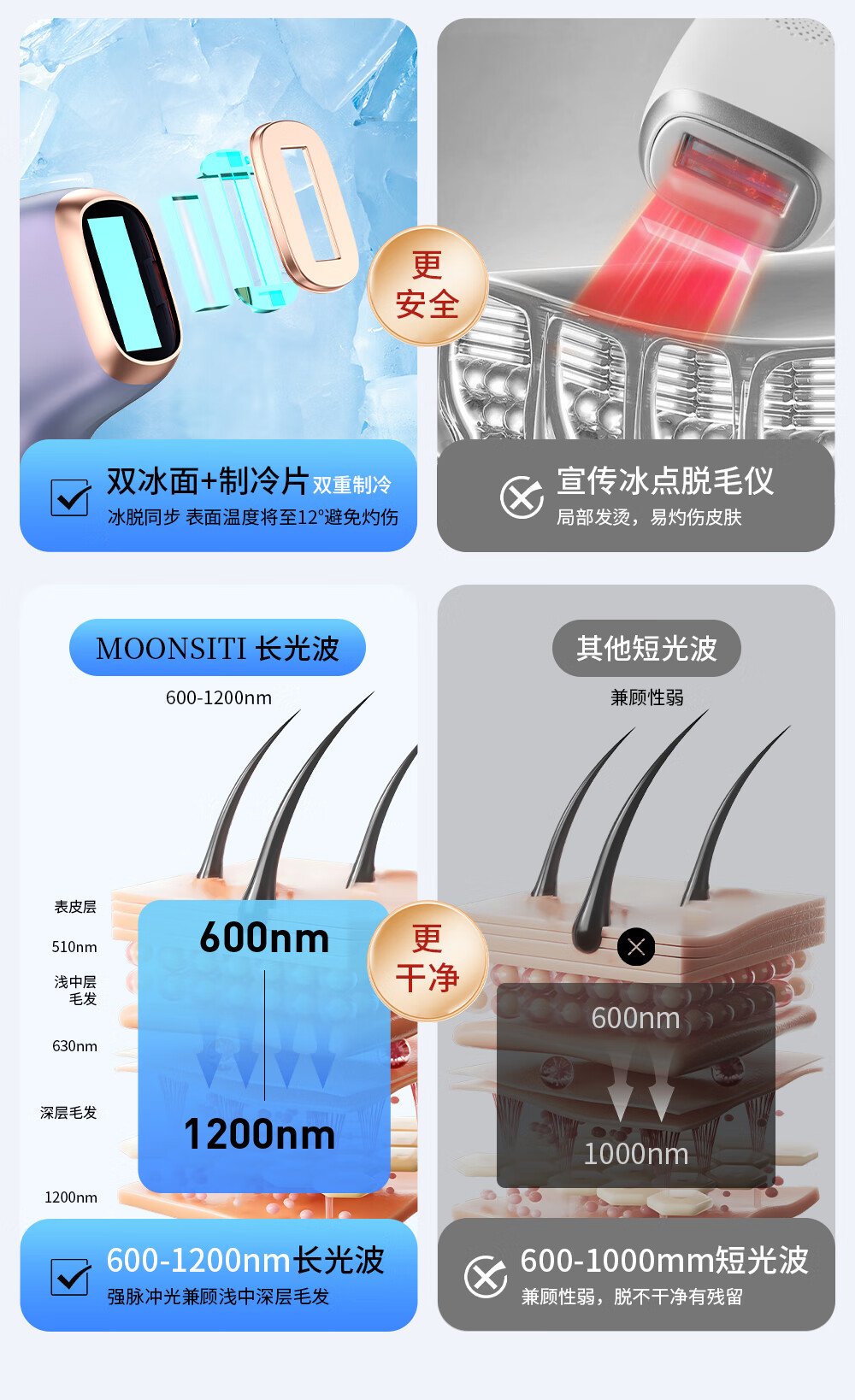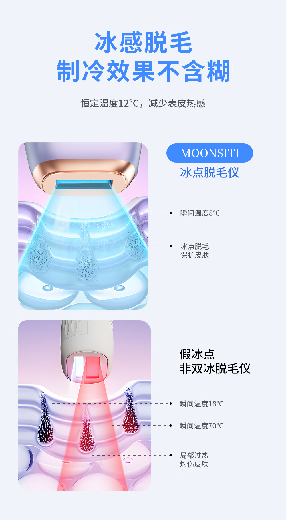 MOONSITI Hair Removal Device Freezing Point Laser Hair Removal Device Painless Hair Removal Instrument Household Shaving Device Full Body Underarm Hair Removal Single Hair Removal Device