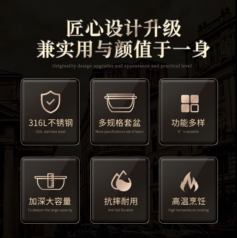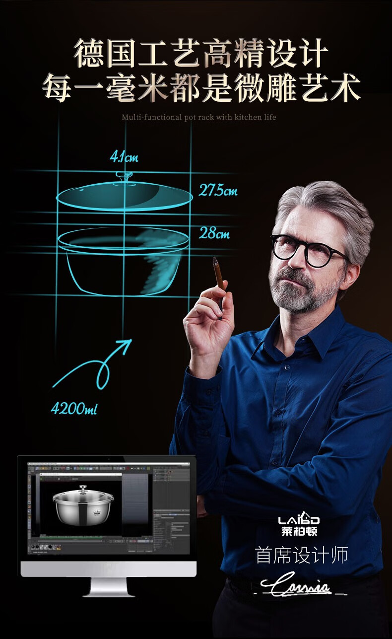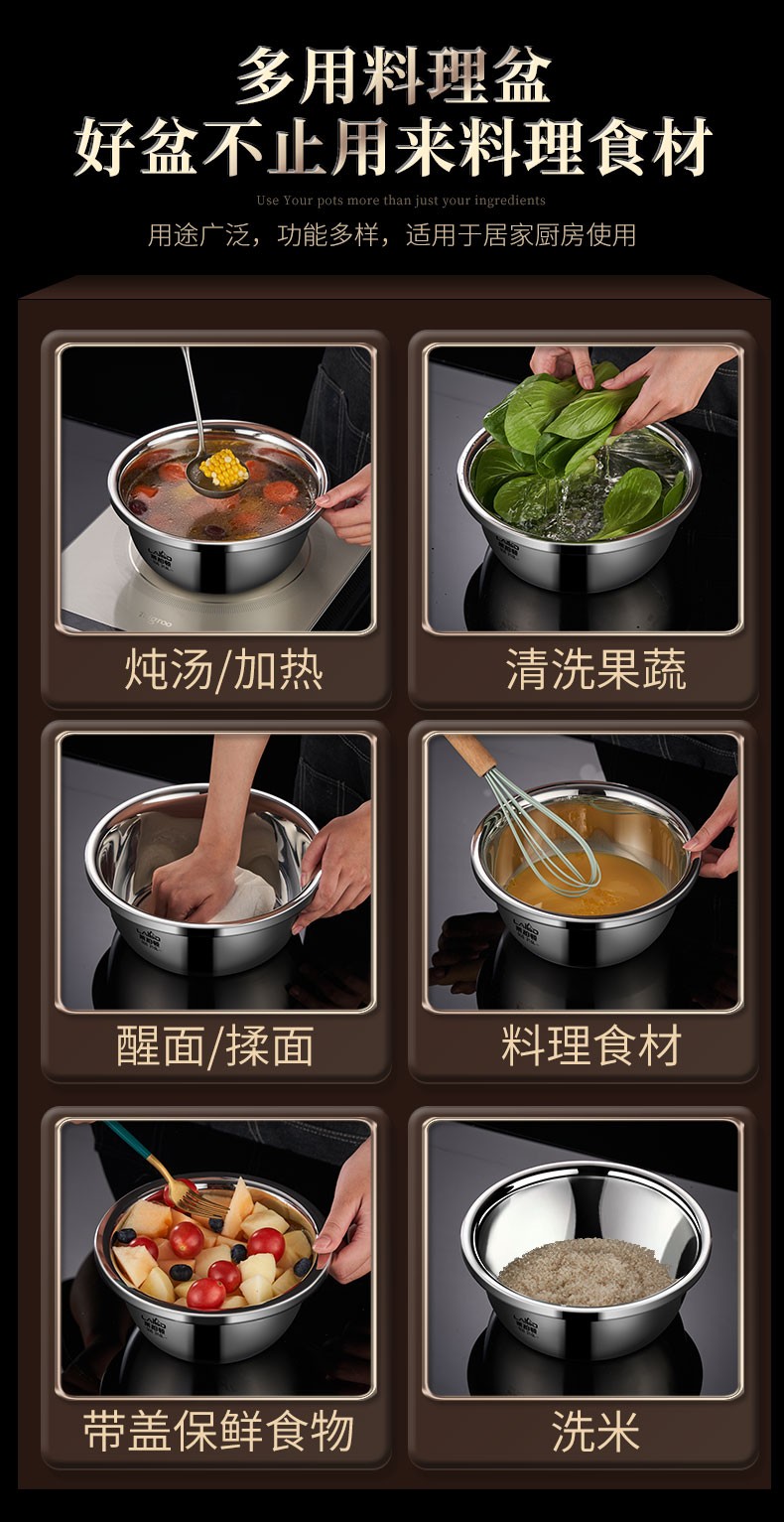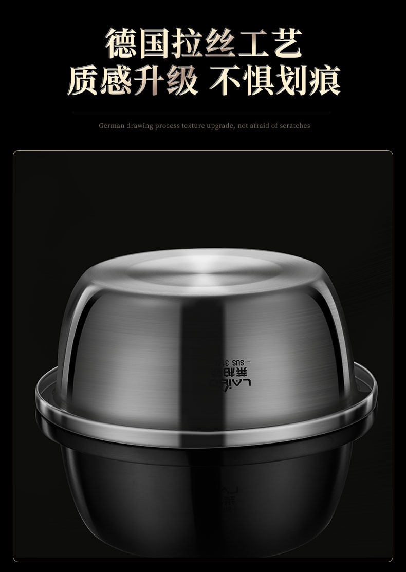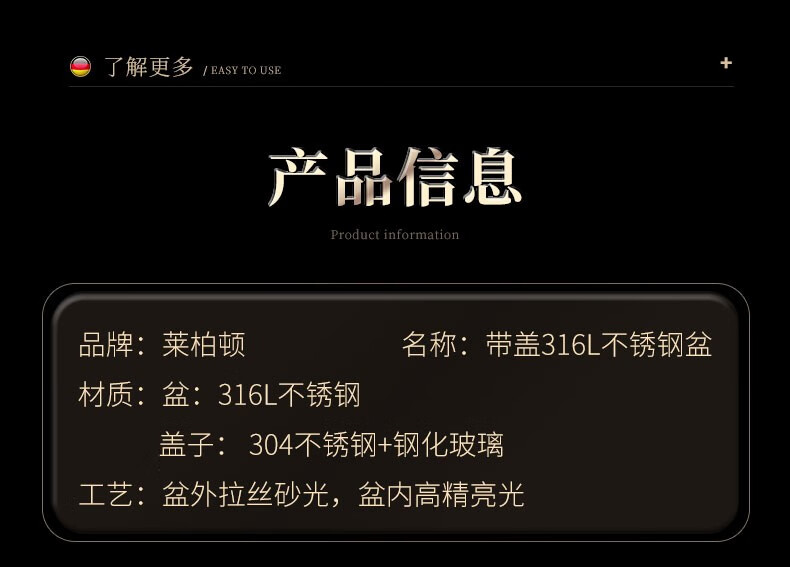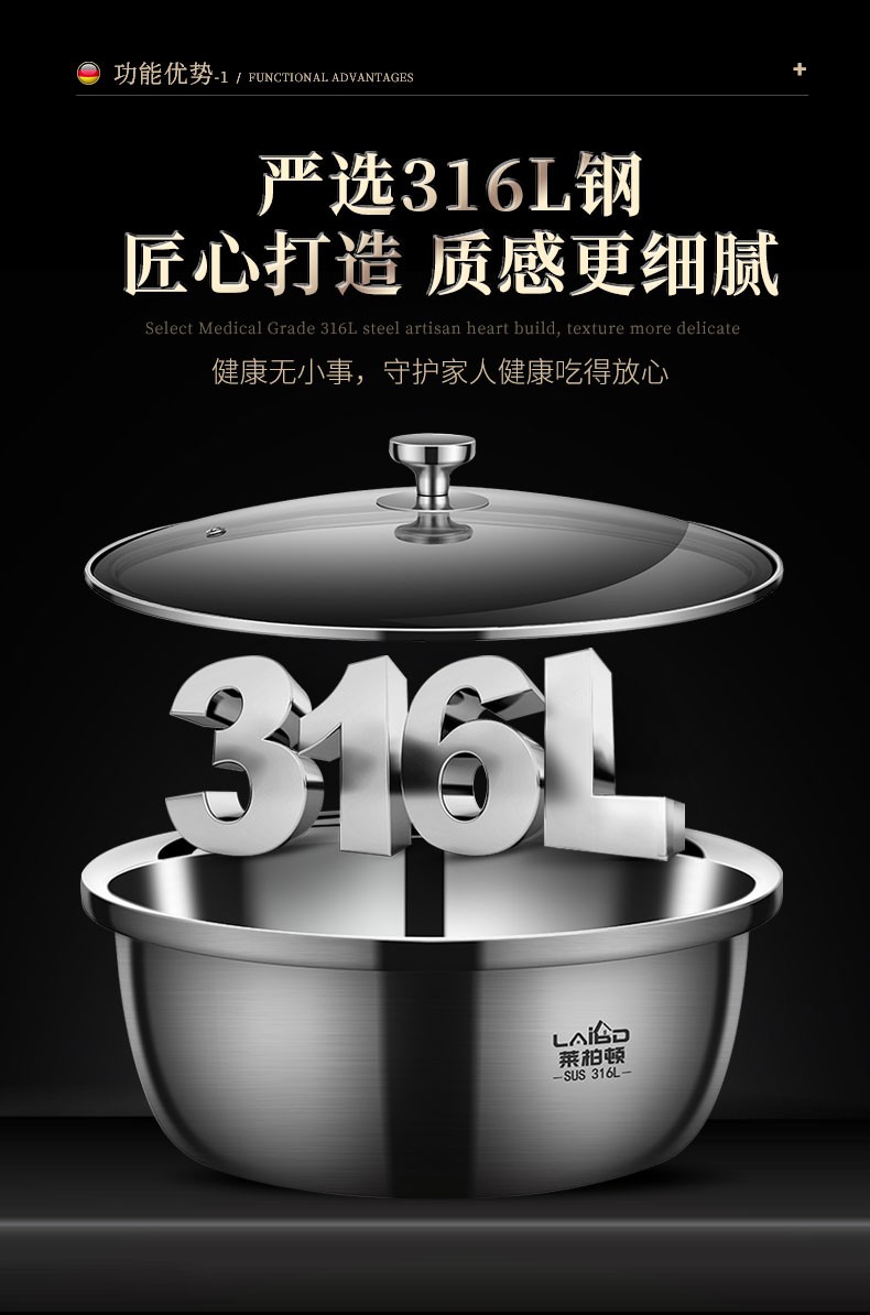 Laberton 316L stainless steel basin set with lid, glass household oil basin, thickened and deepened, dough baking basin, dough kneading basin, soup basin, kitchen 34CM stainless steel basin 316L + tempered glass lid 8.4L