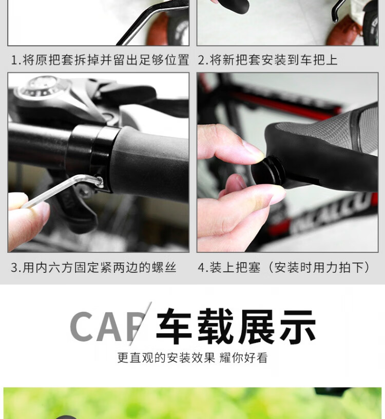 G LUXOME bicycle handlebar cover silicone mountain bike deputy handlebar universal bicycle grip cover cow and sheep horn handle cover accessories one-piece meat ball handlebar cover with deputy handlebar gray