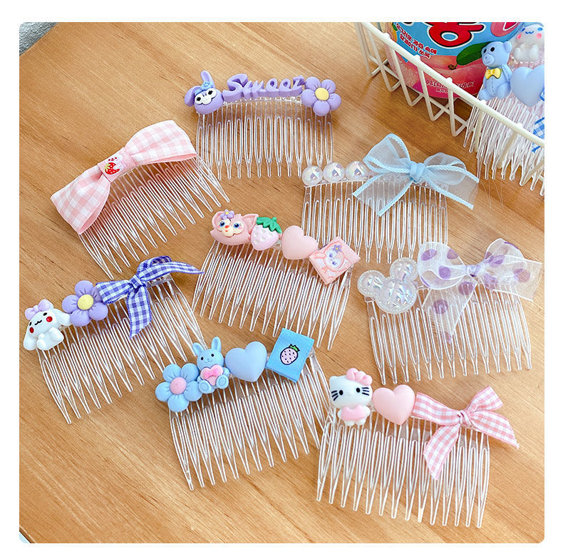 ZHIO Children's cartoon transparent hair comb for broken hair on the back of the head for little girls to arrange bangs and insert comb hairpins Blue cinnamon dog transparent hair comb (set of 3)
