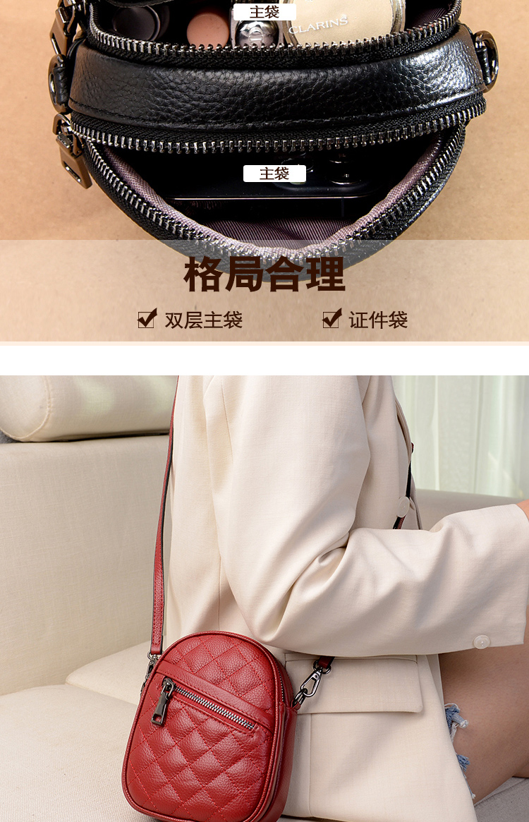 Beihu genuine leather multi-layer bag women's single shoulder top layer cowhide crossbody bag 2023 new style versatile small fragrance exquisite small bag coin mobile phone bag + song clutch bag (10*18cm)