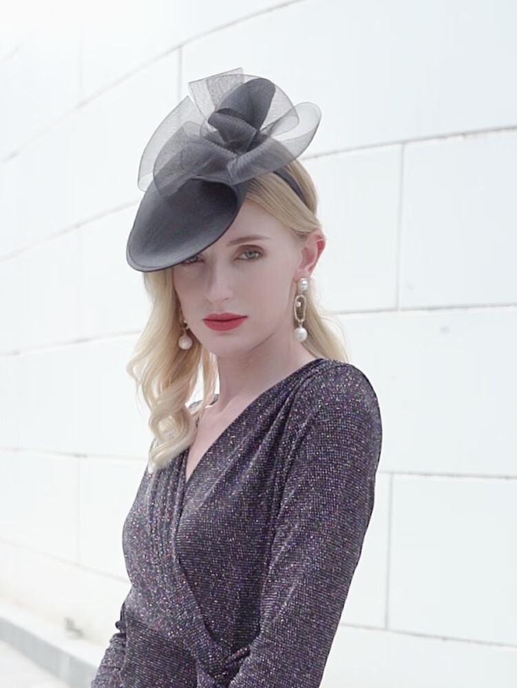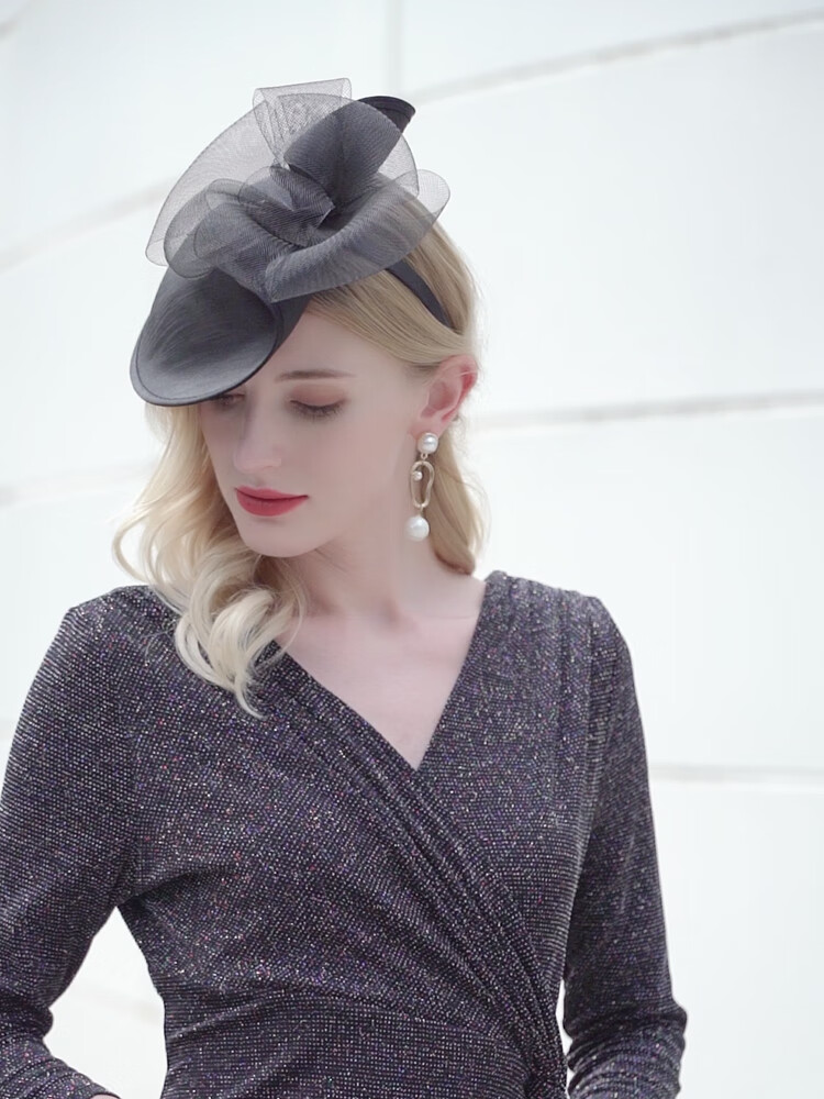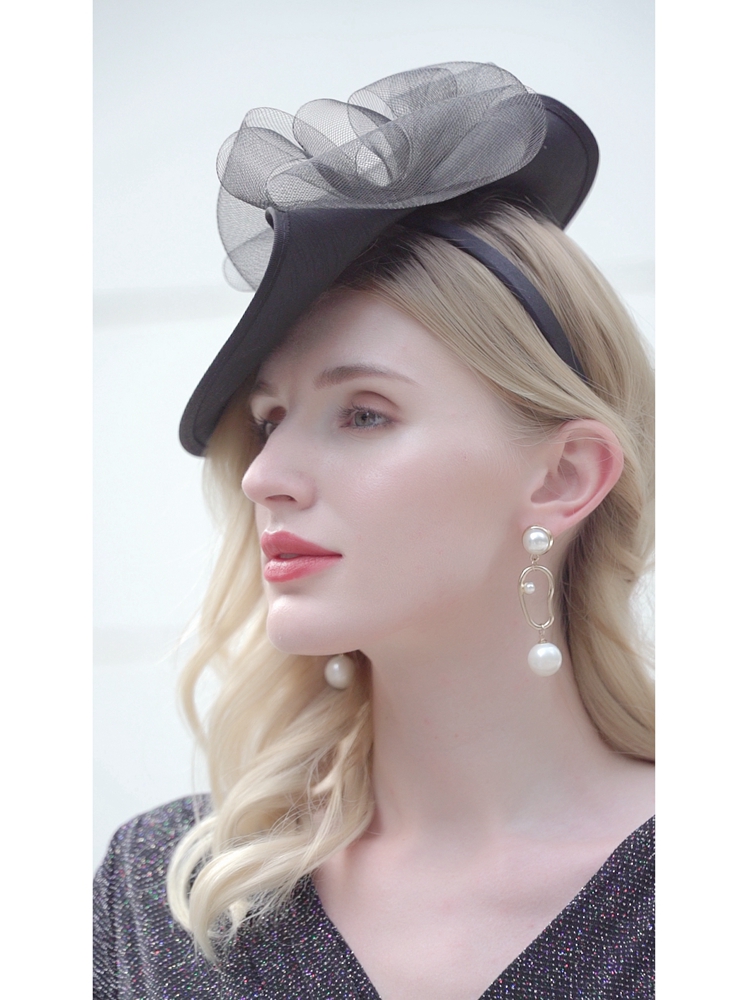 EE Fashion Top Hat Mesh Retro Elegant Headband for Women Black M(56-58cm)