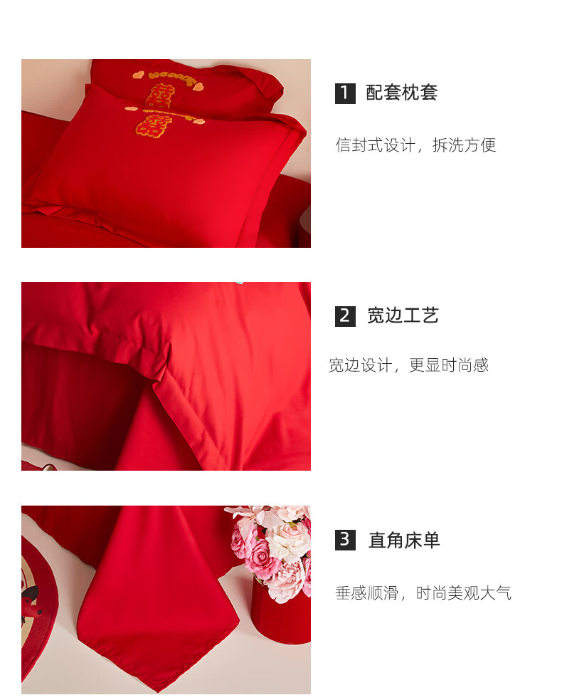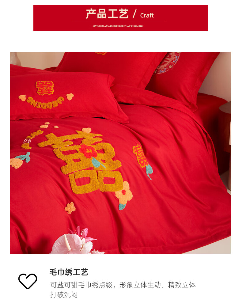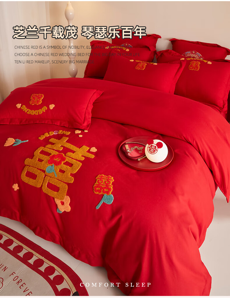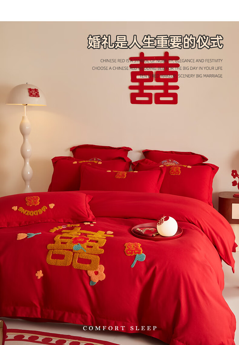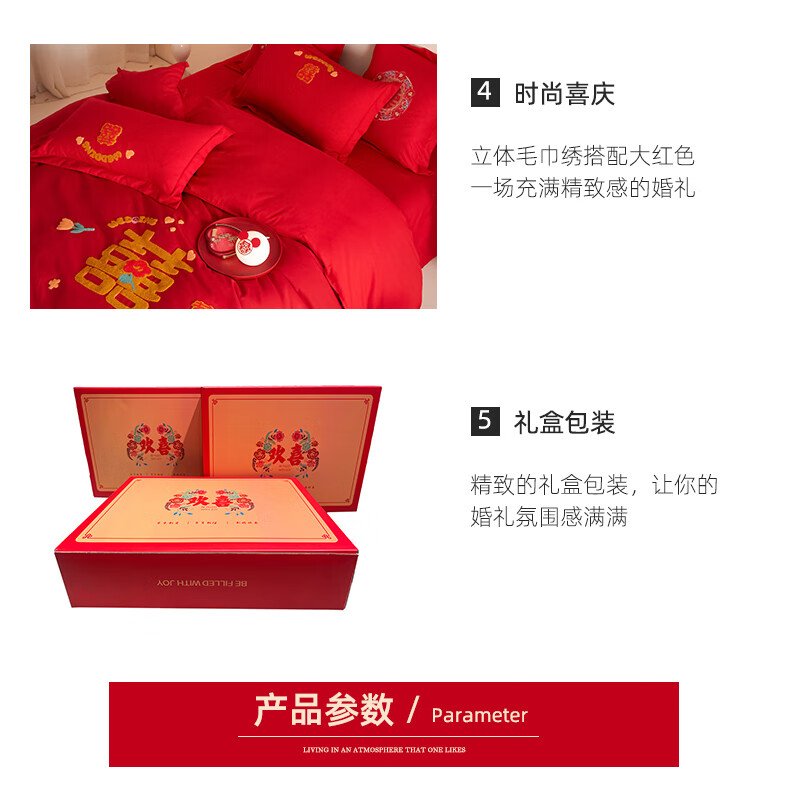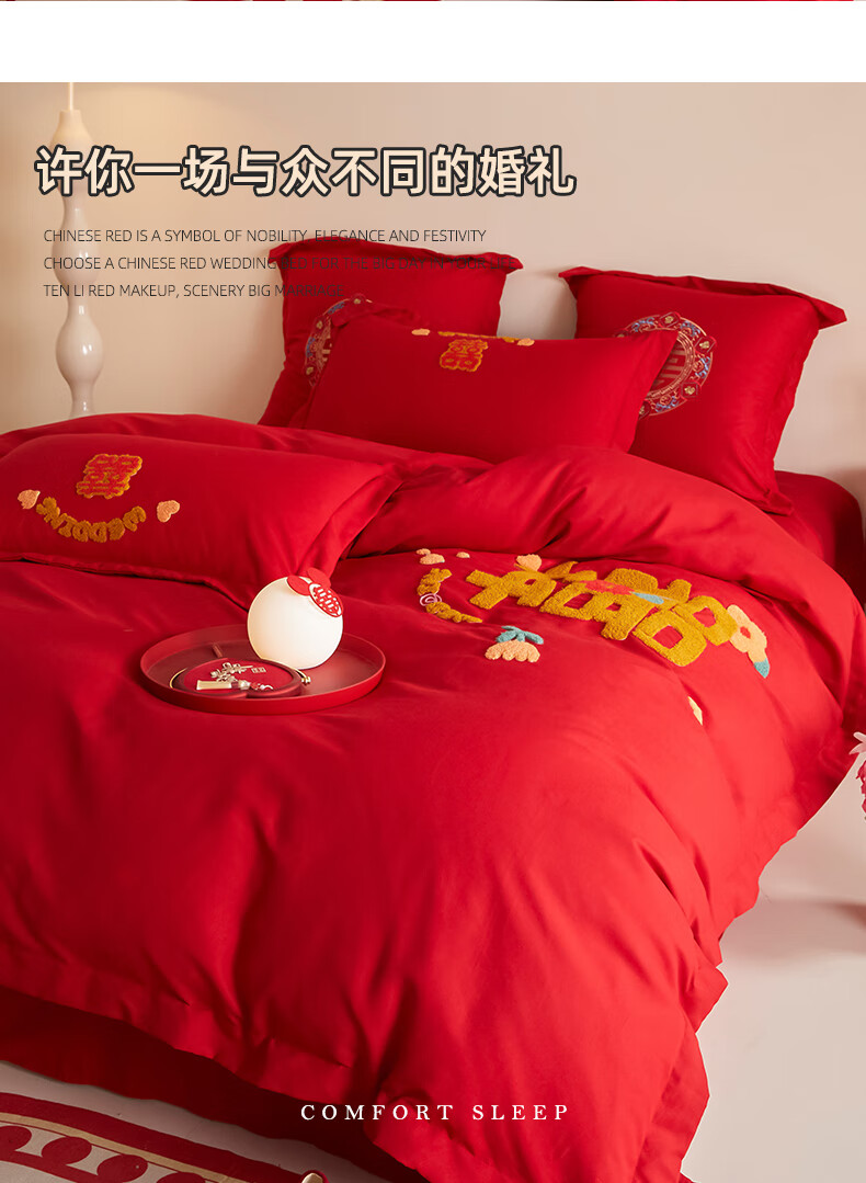 Yalu skin-friendly towel embroidered wedding four-piece set big red embroidered quilt cover bed sheet wedding bedding 1.8M bed romantic engagement 1.8m bed sheet style four-piece set-quilt cover 200*230cm