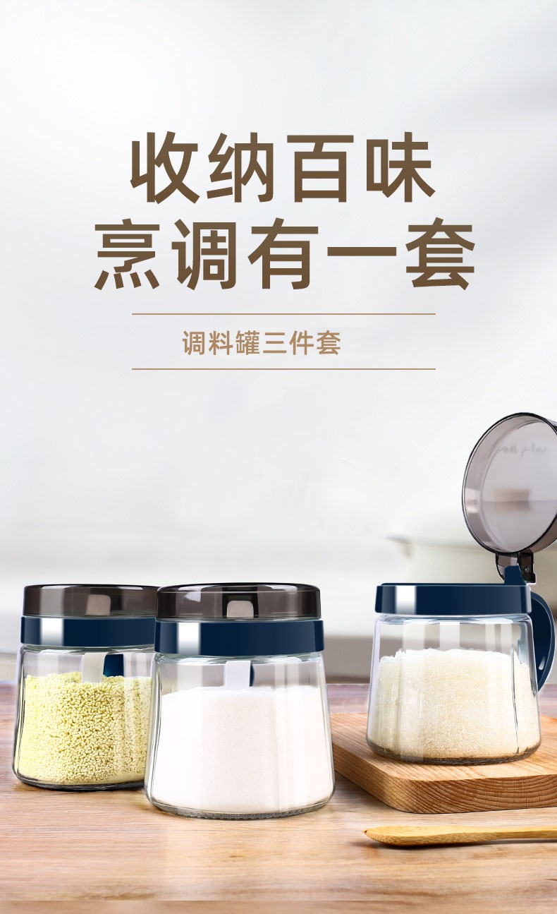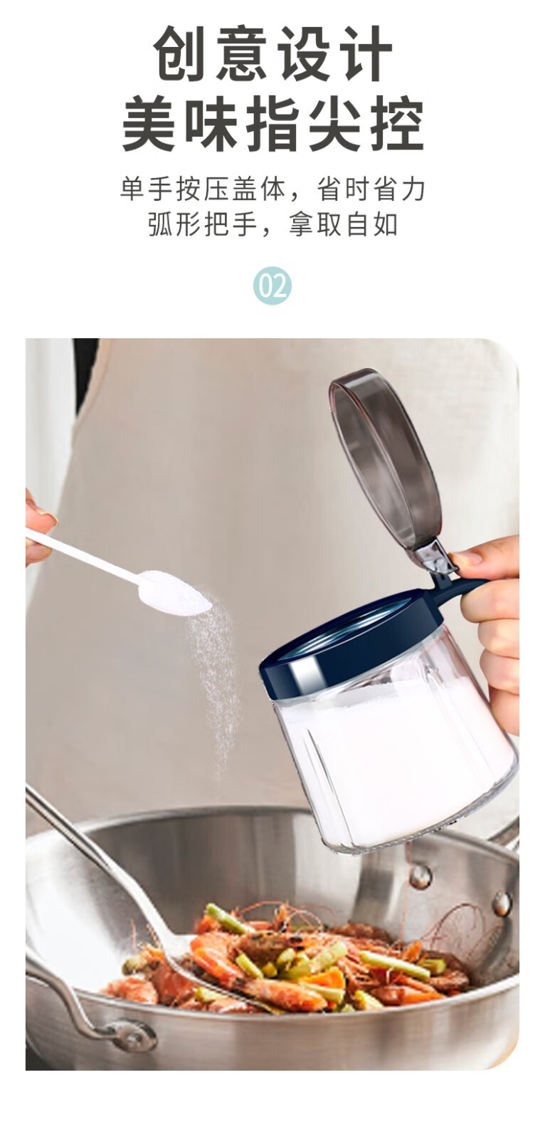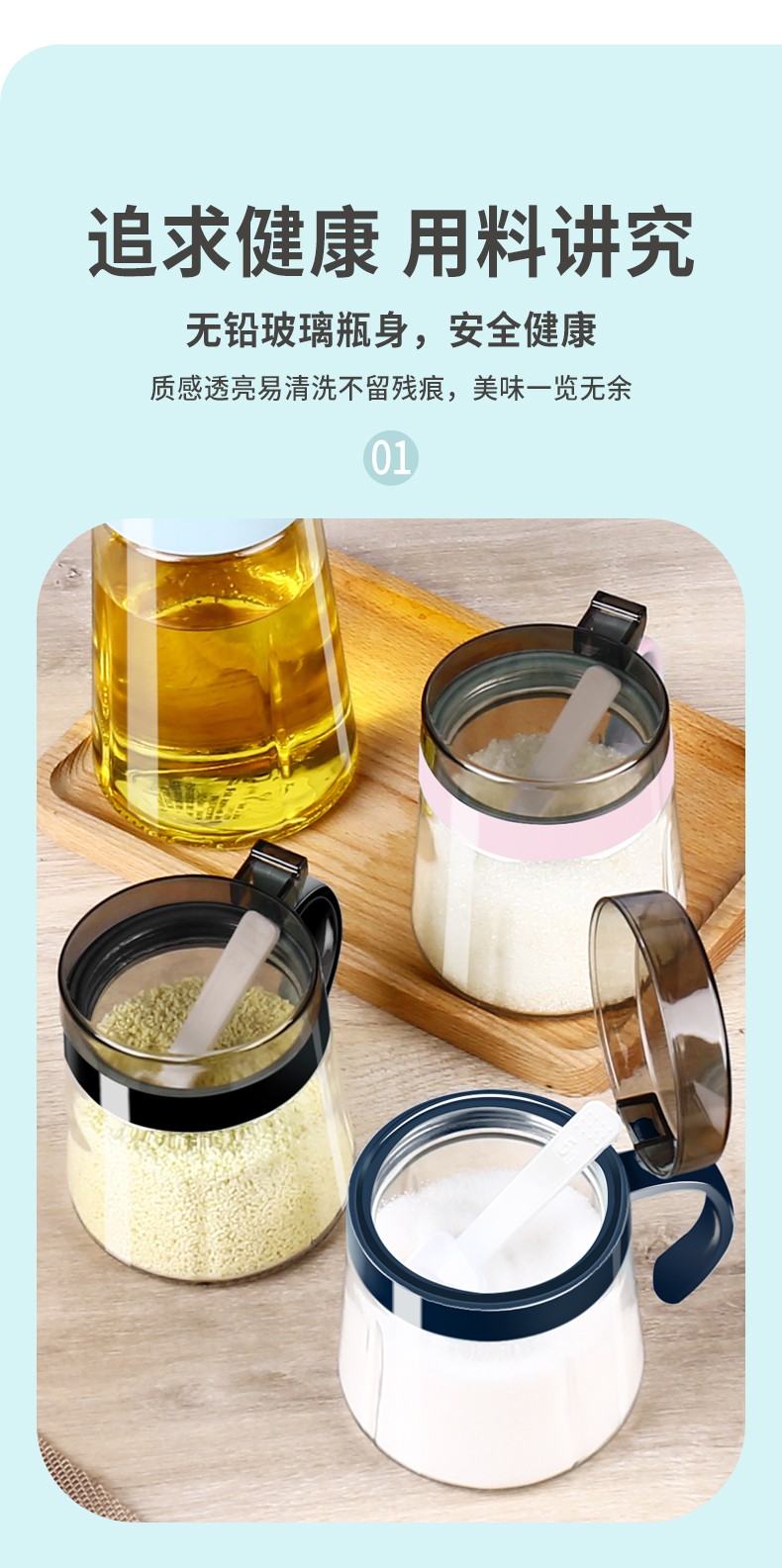 Xinmeiya household salt MSG seasoning box kitchen seasoning jar combination set seasoning bottle jar salt jar single seasoning bottle Youlan seasoning box 2 pieces with label + spoon