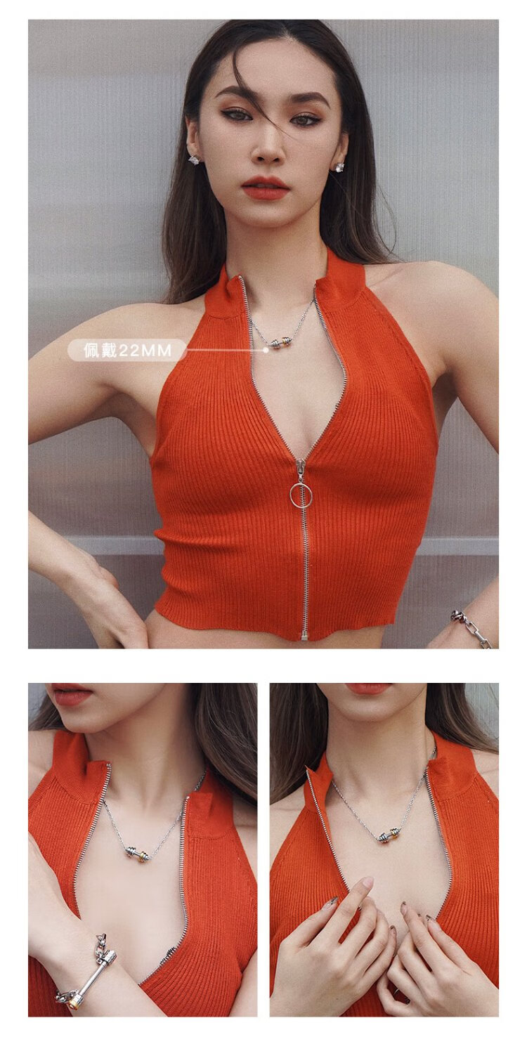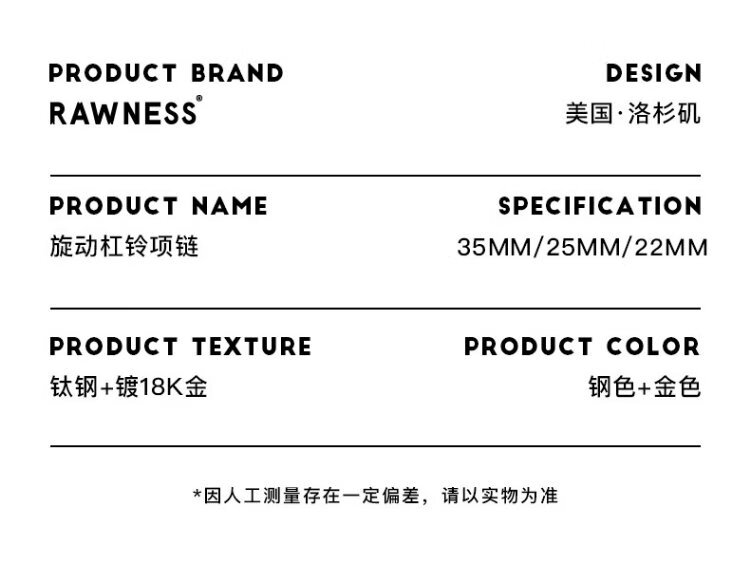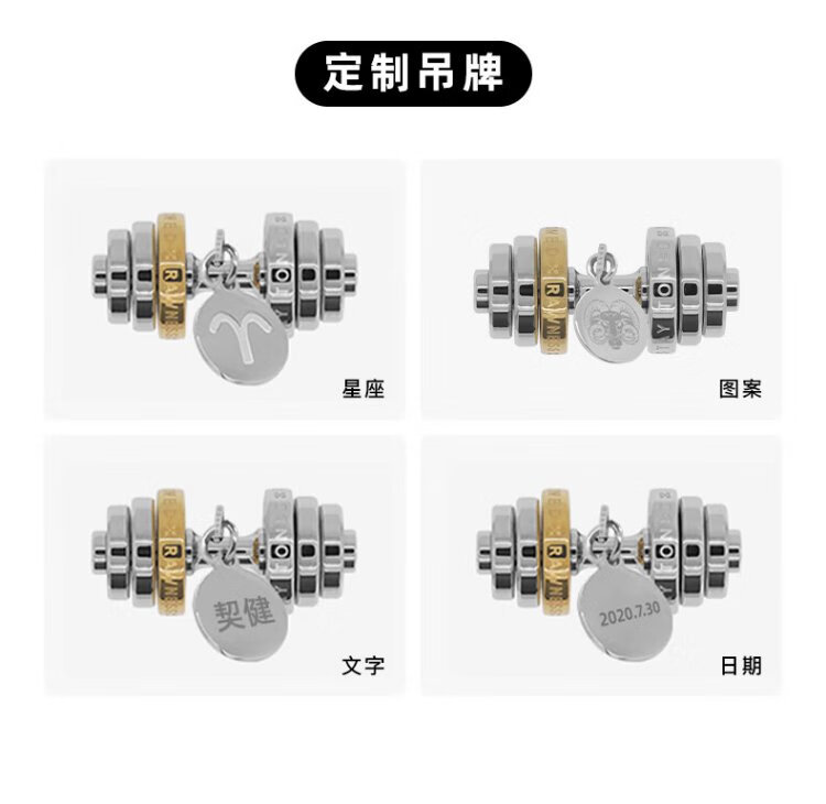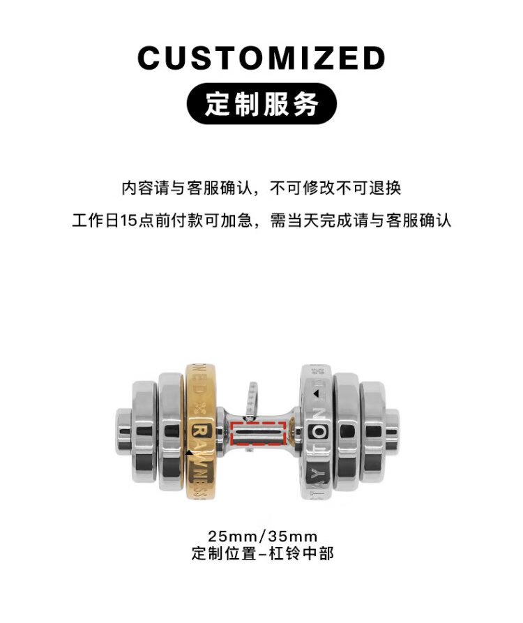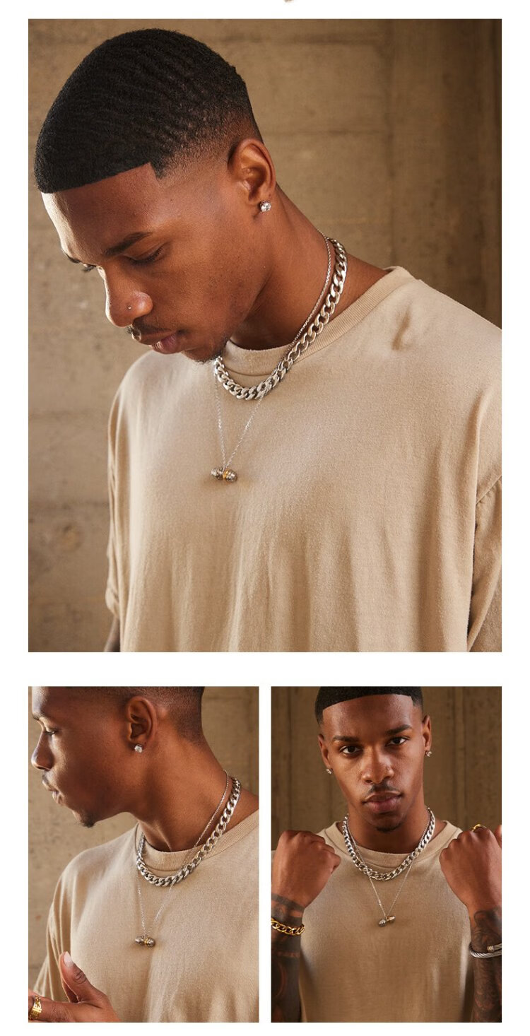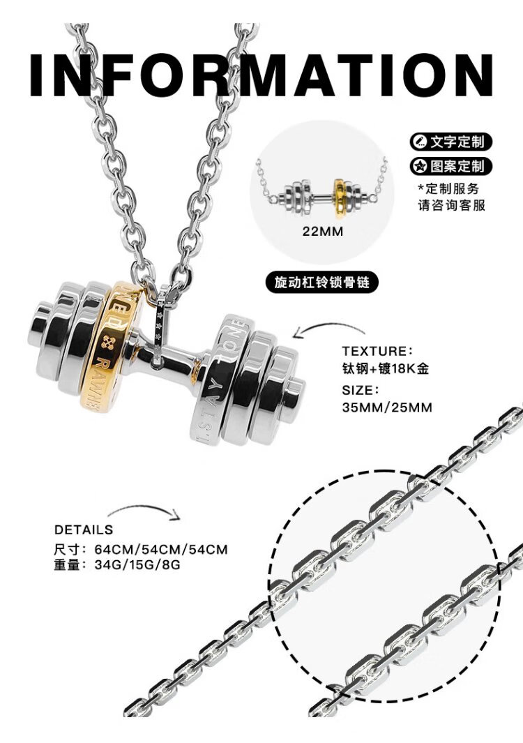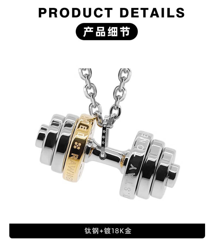 Rawness dumbbell necklace rotating barbell plate fitness fashion brand Qijian pendant custom couple jewelry male birthday gift 35mm for boys to wear (large L)