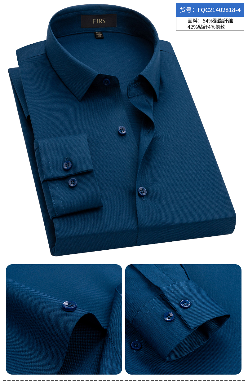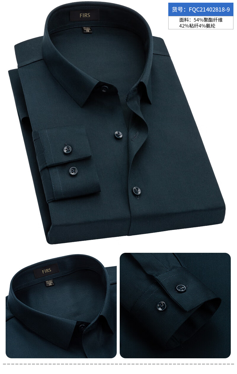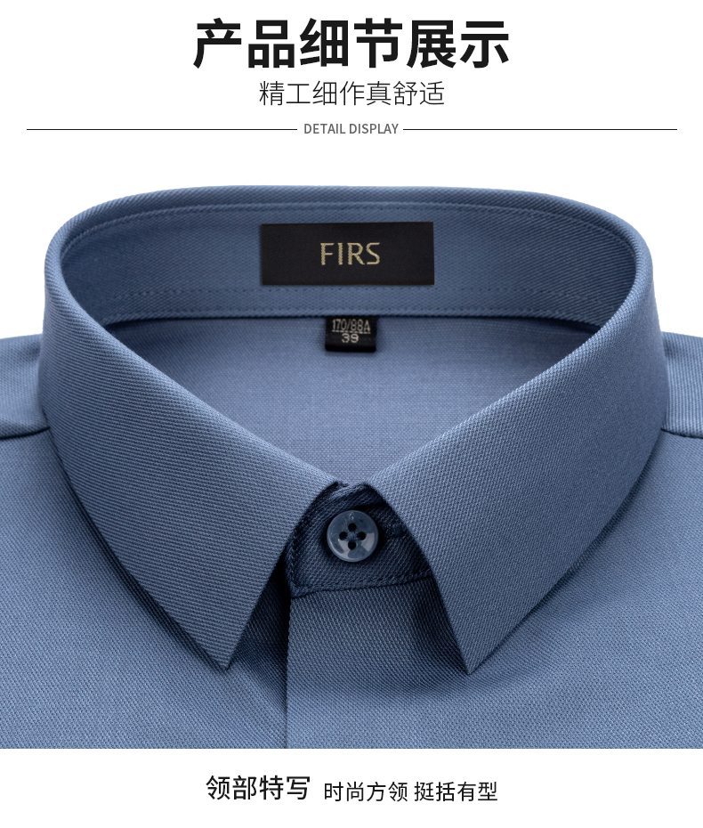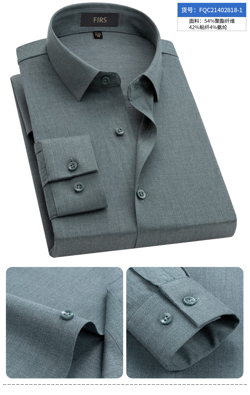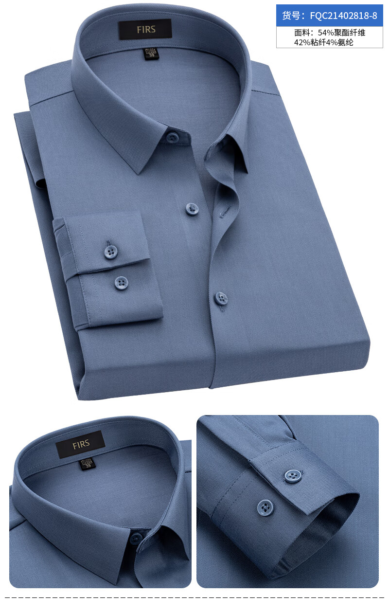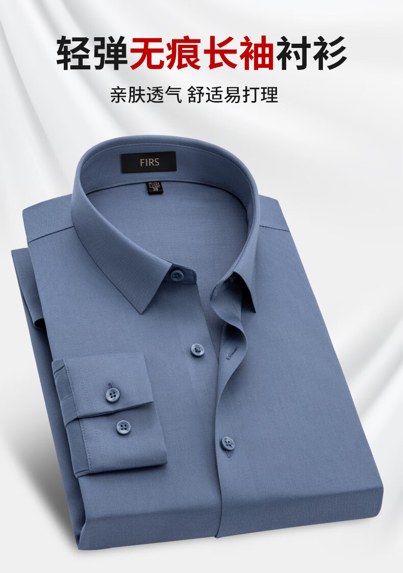 Shanshan (FIRS) nahtloses Hemd für Herren, langärmelig, blaugrau, 2026, Frühling, Vier-Wege-Stretch, Business-Casual, mittleres Alter, High-End-Hemd für Väter FQC818-8, Blaugrau, 42