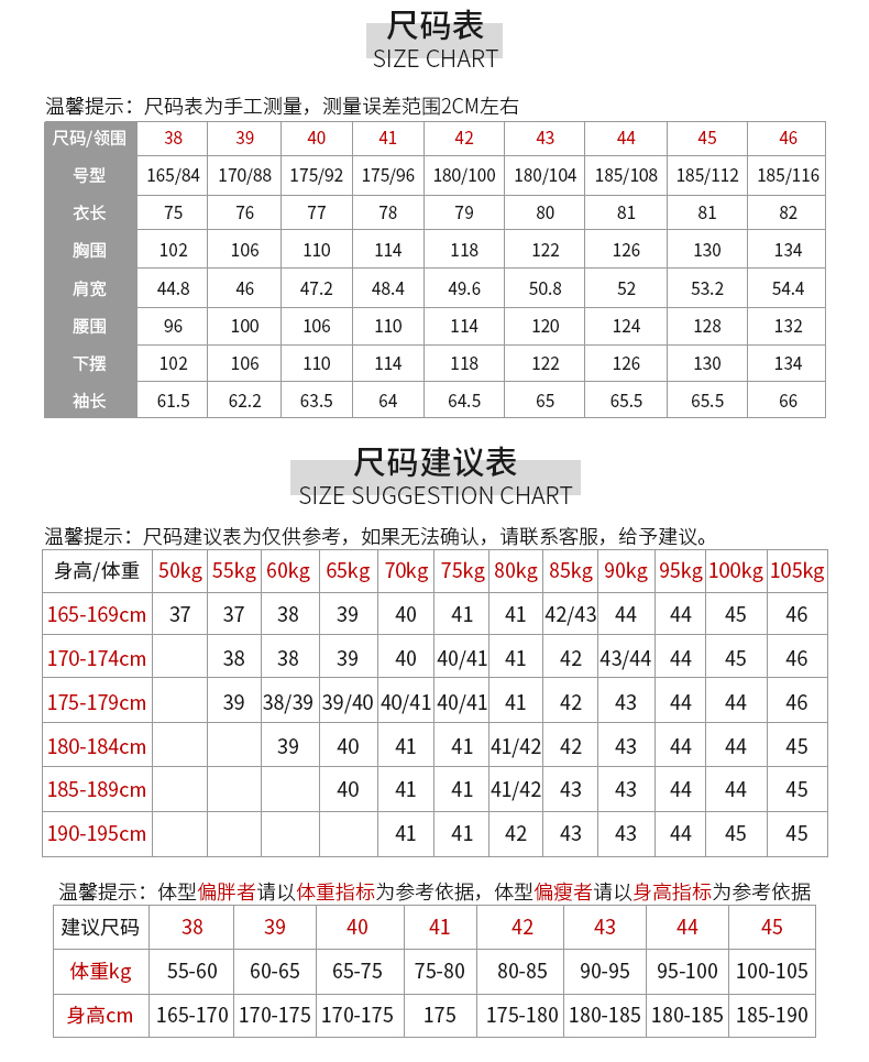 China (cm) 160-165/84-86 165-170 / 88-90 167-172 / 92-96 168-173 / 98-102 170-176 / 106-110
