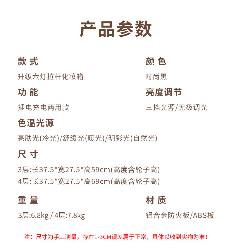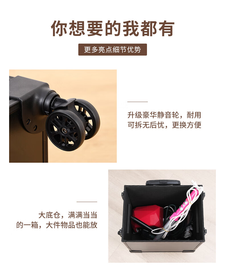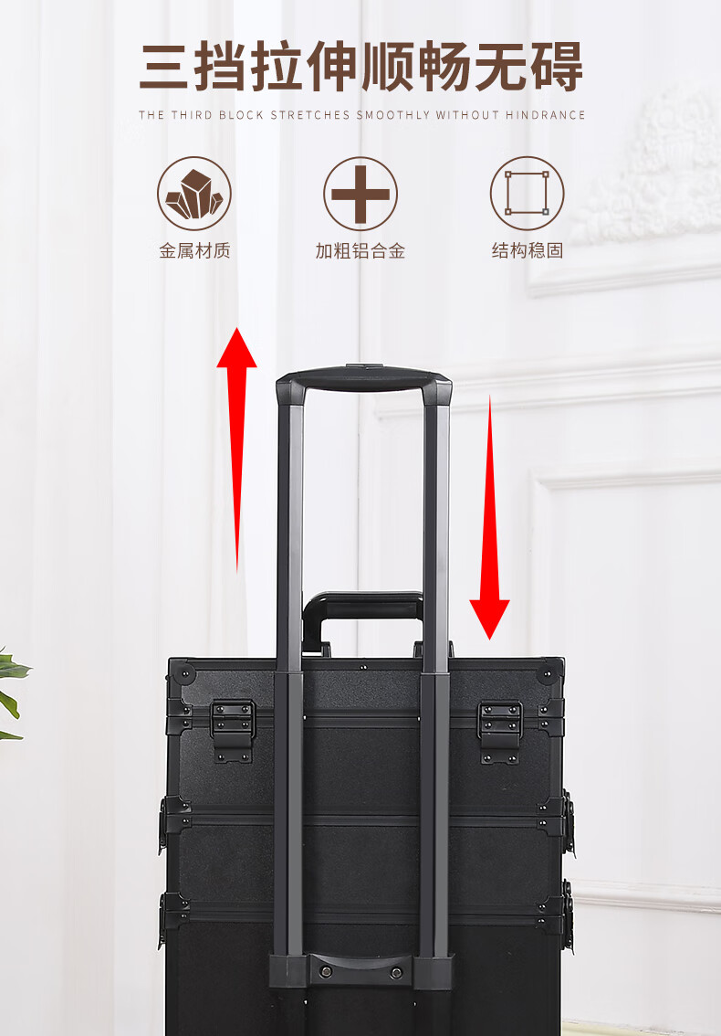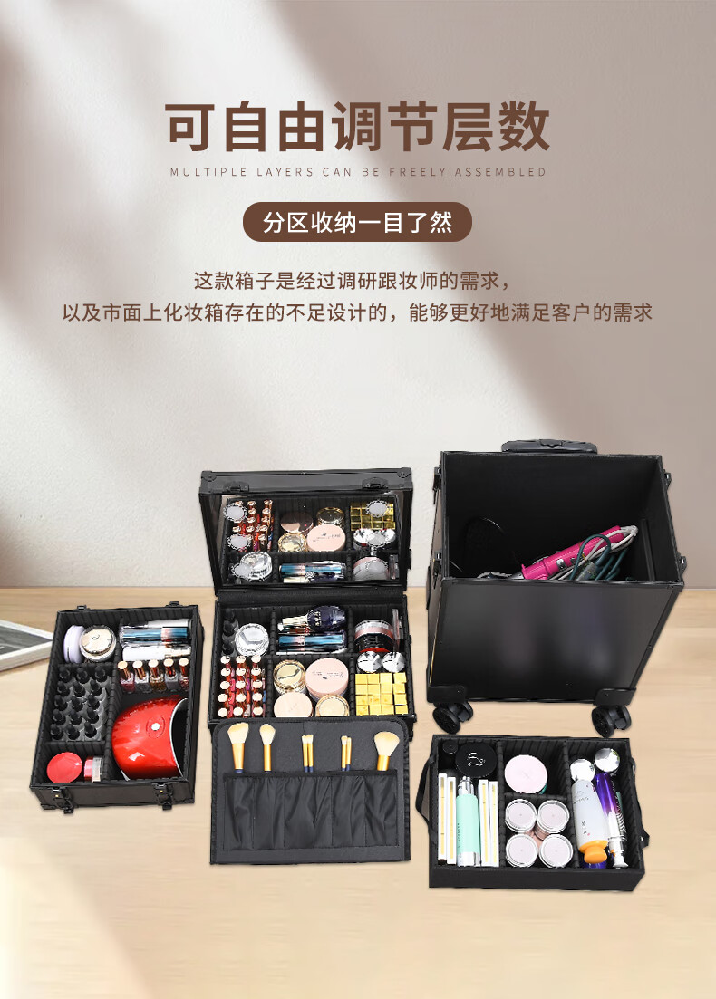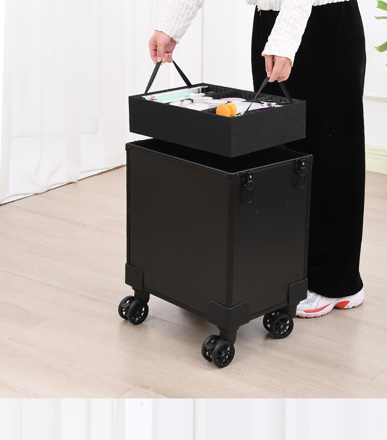 Qilong new makeup box professional makeup artist trolley box with light 2025 large capacity high-end bridal cosmetics storage box black upgraded charging model four layers 6 lights