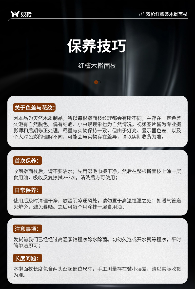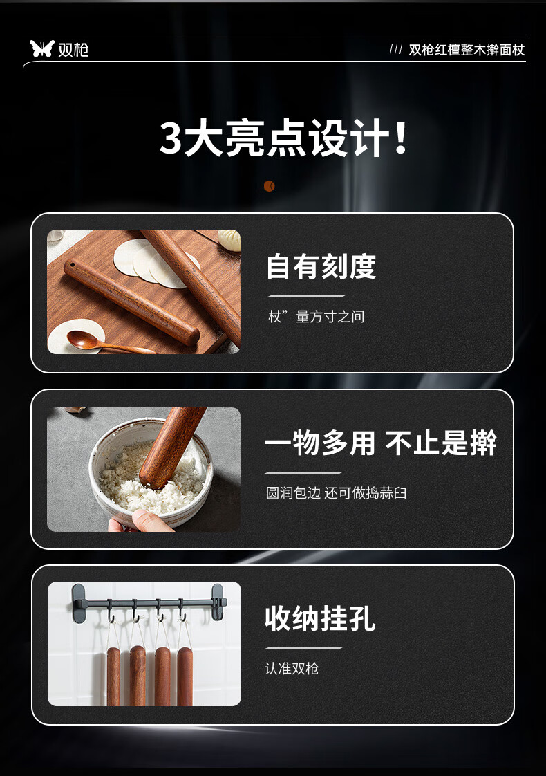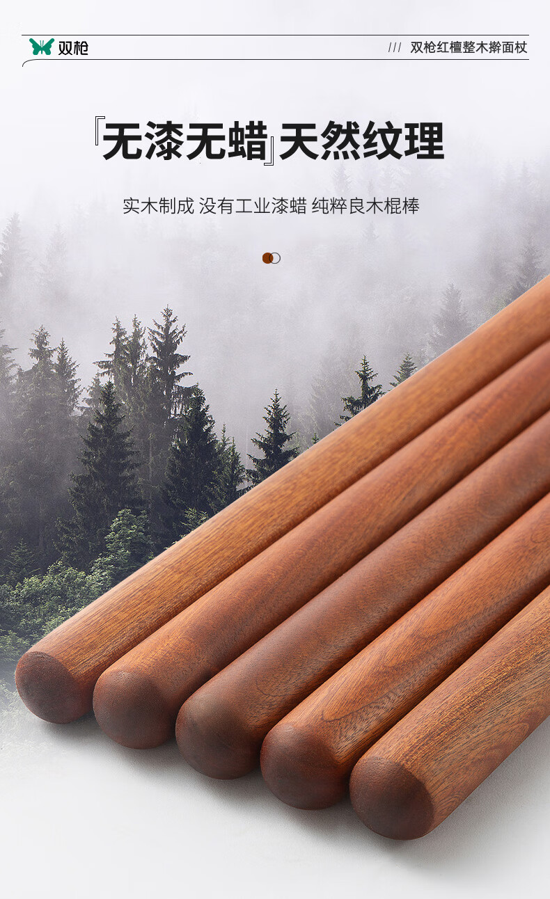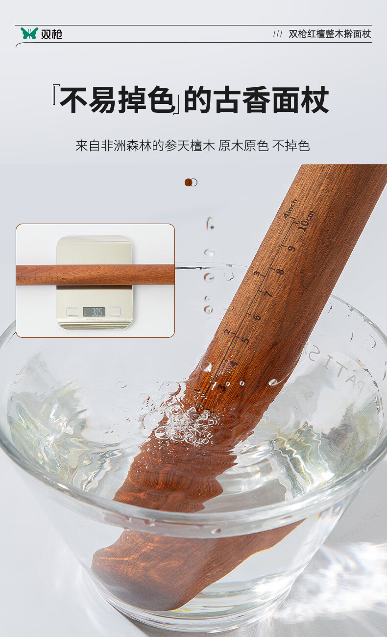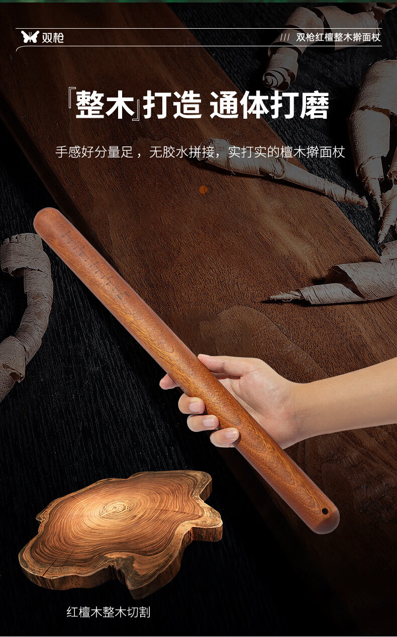 Double-gun rolling pin household solid wood rolling pin red sandalwood rolling pin recommended by the store manager 3.0*30cm