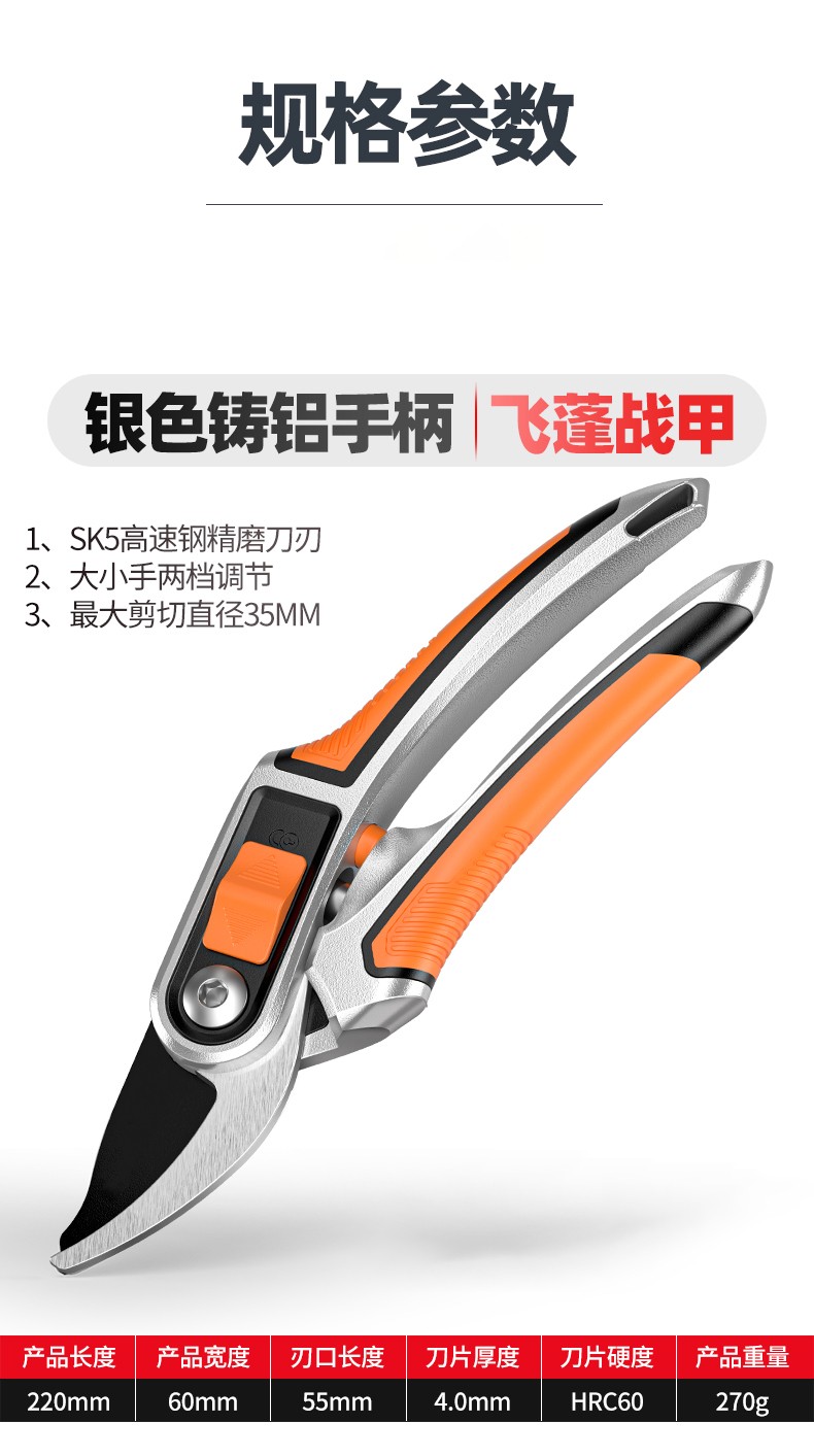 Bobenjia garden fruit tree pruning scissors, special scissors for cutting branches, pruning scissors for pruning flowers, gardening scissors, branch scissors. Silver cast aluminum handle