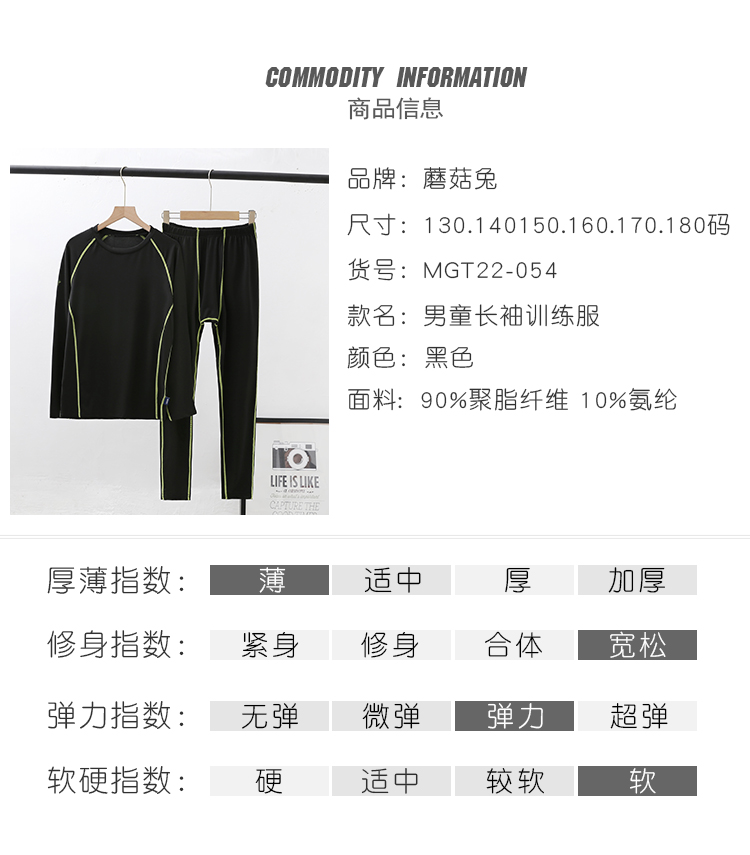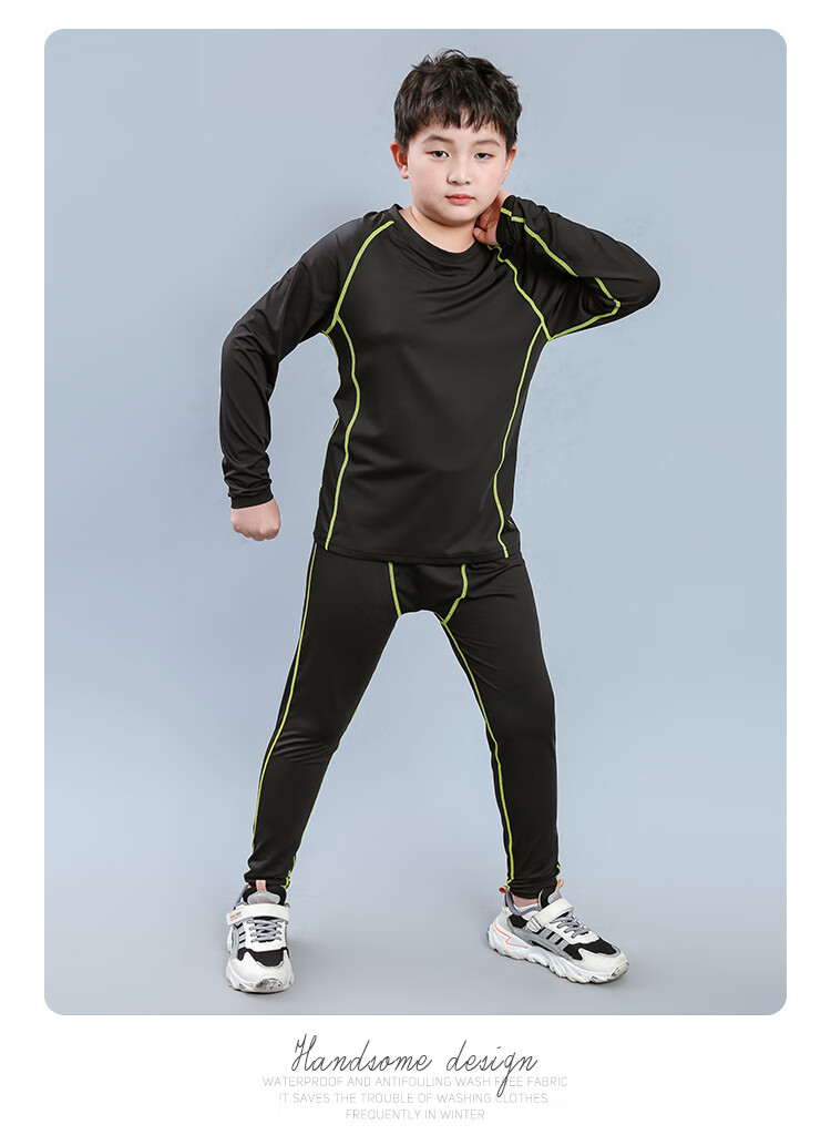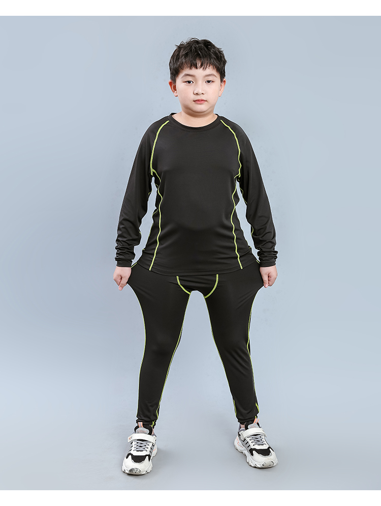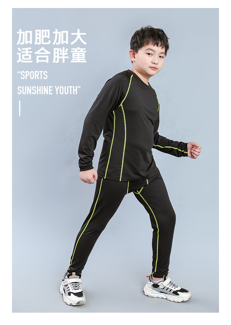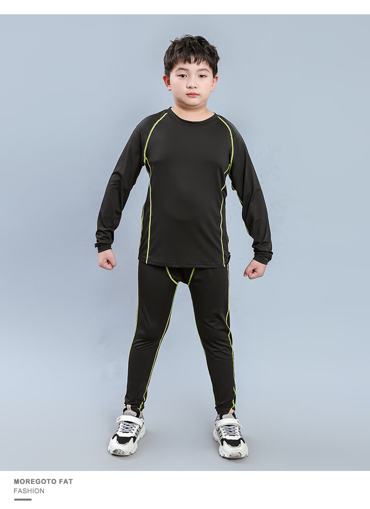 Mushroom Rabbit (MOREGOTO) fat boy training clothes tights loose big children boys sportswear teenagers plus weight enlargement basketball uniform black green line 150 plus weight plus size suitable for 100Jin Jin is equal to 0.5 kg, left and right wear