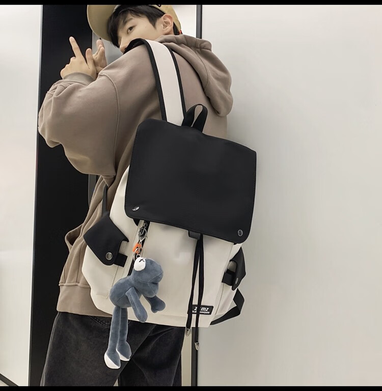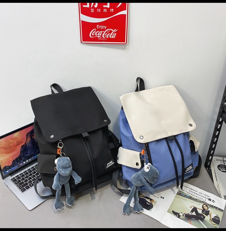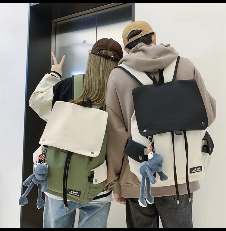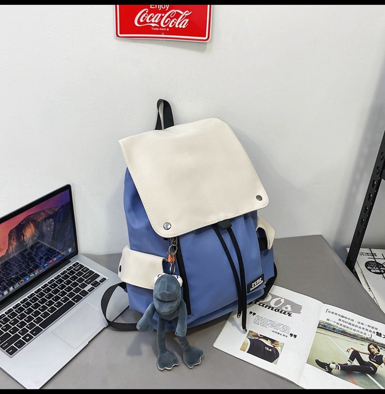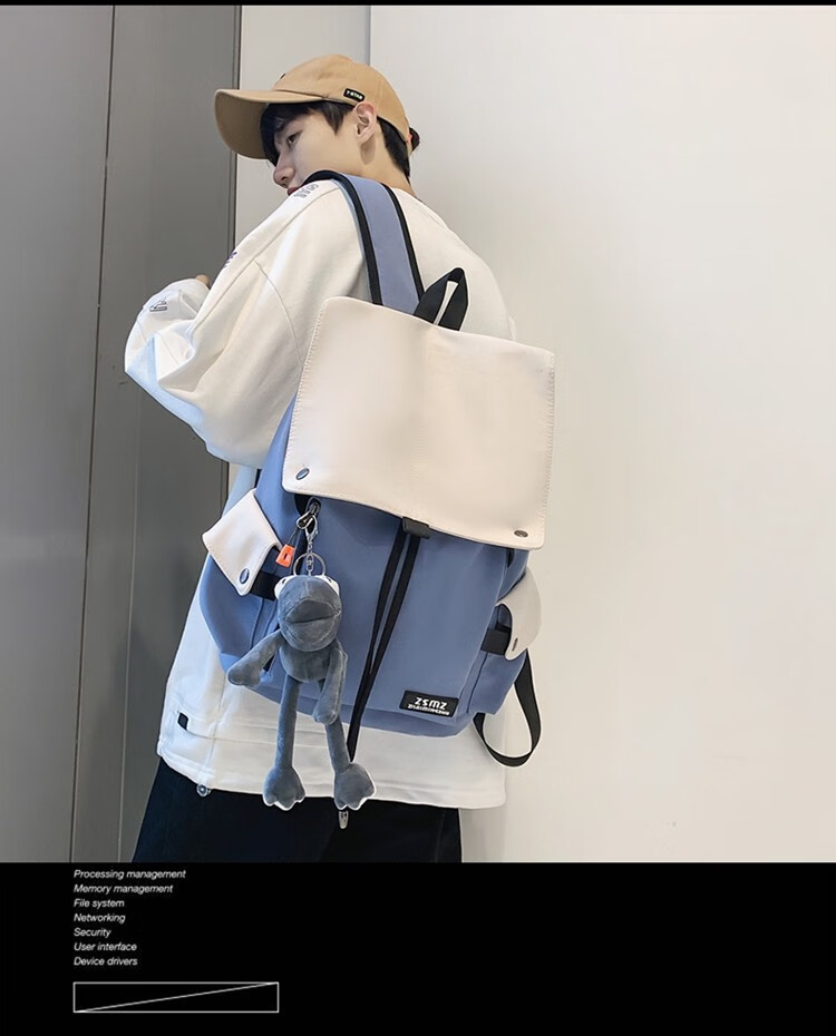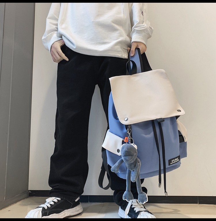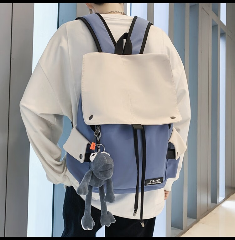 Fadelu Backpack Men's Backpack College Student Bag Men's Ins Cool Fashion High School Simple Canvas Large Capacity Computer Bag huashengda8811 Blue with White + Frog