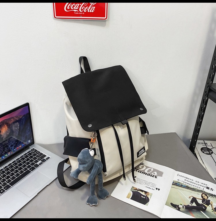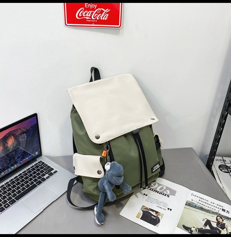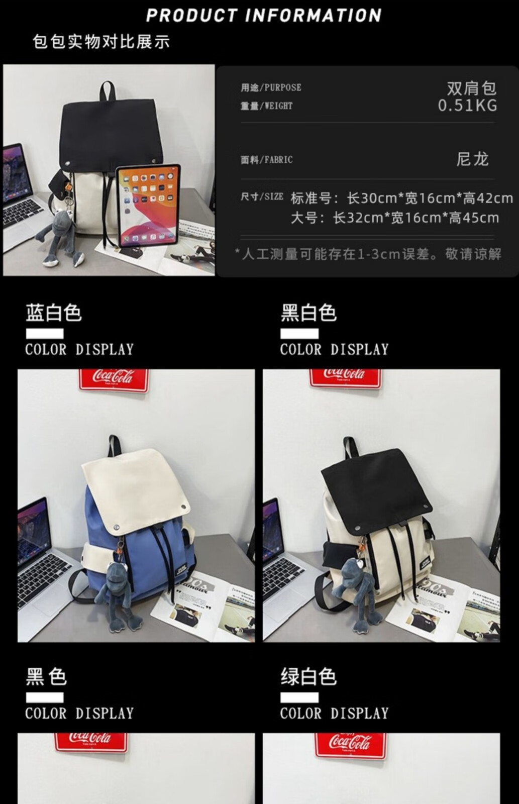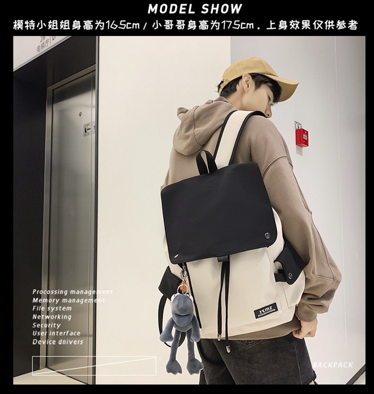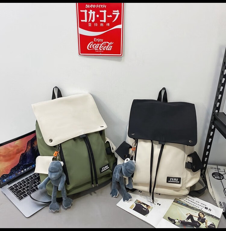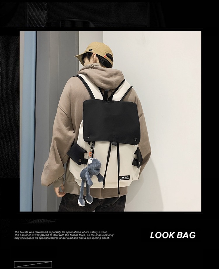 Fadelu Backpack Men's Backpack College Student Bag Men's Ins Cool Fashion High School Simple Canvas Large Capacity Computer Bag huashengda8811 Blue with White + Frog