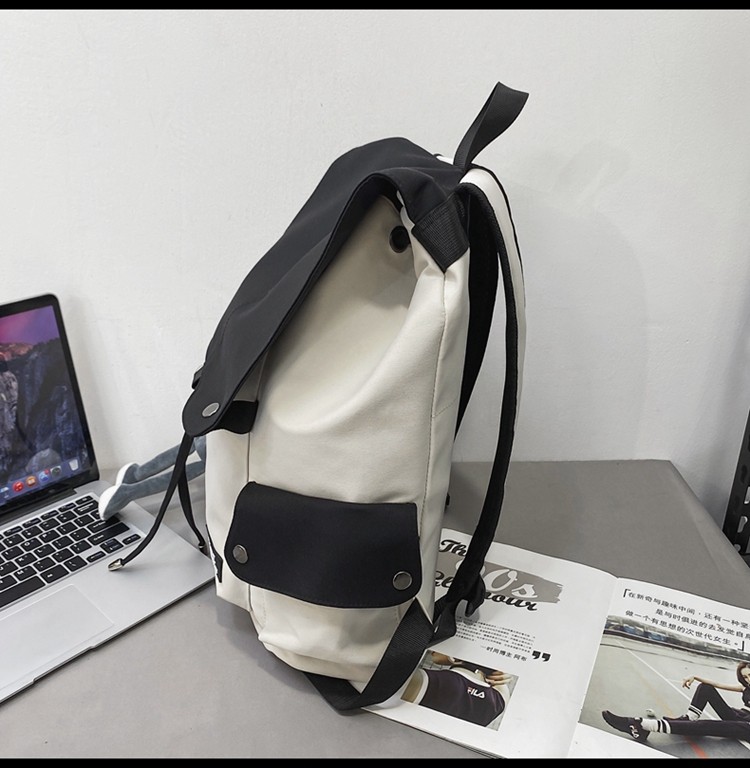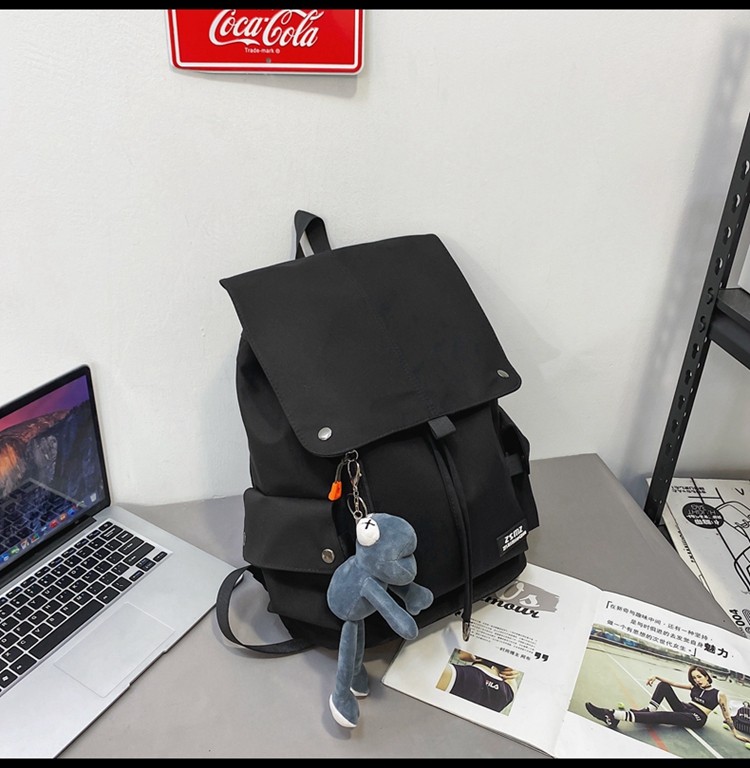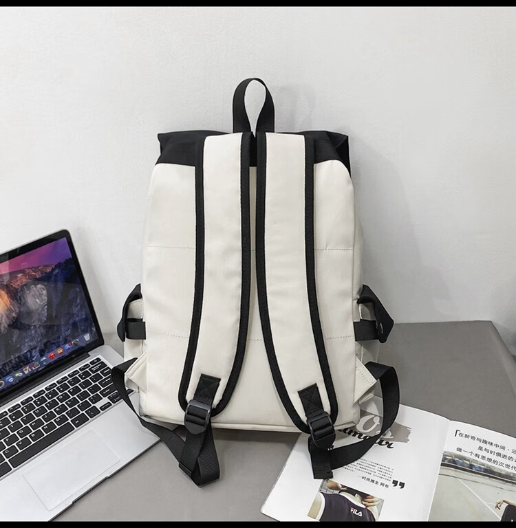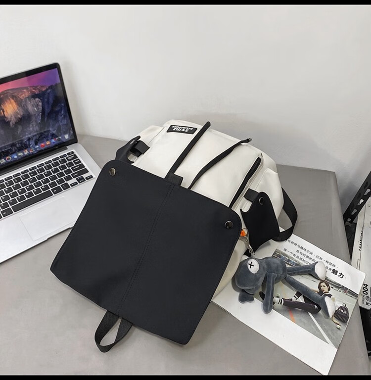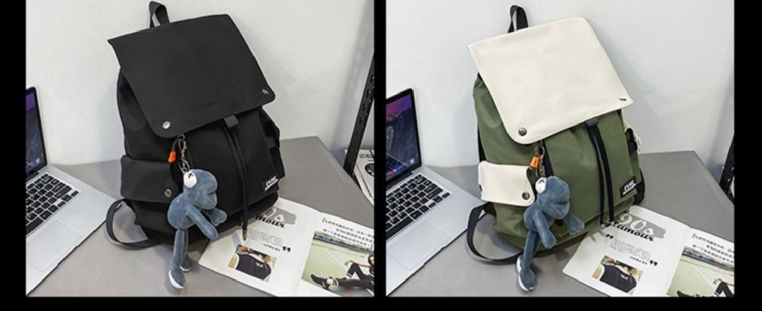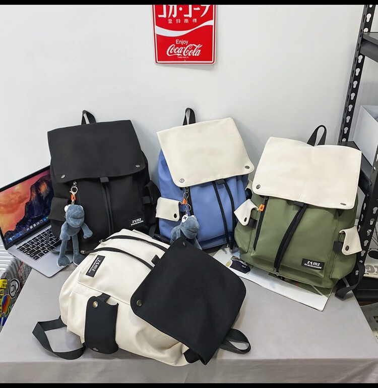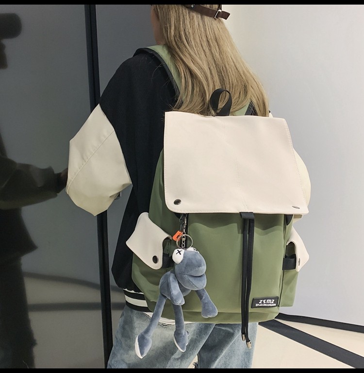 Fadelu Backpack Men's Backpack College Student Bag Men's Ins Cool Fashion High School Simple Canvas Large Capacity Computer Bag huashengda8811 Blue with White + Frog