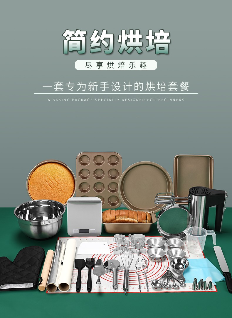 Cake mold baking tool set for novices, home pizza baking pan, biscuit bread oven baking package, Yafu high-end upgraded model, including electric egg beater + electronic scale package + decorating table