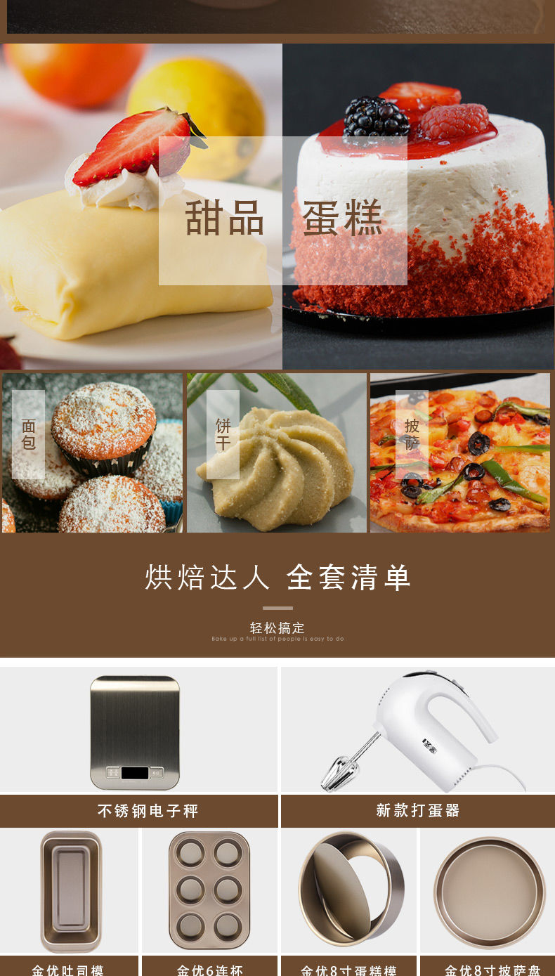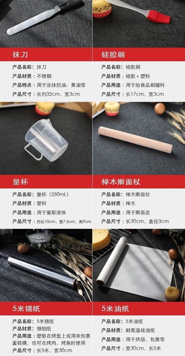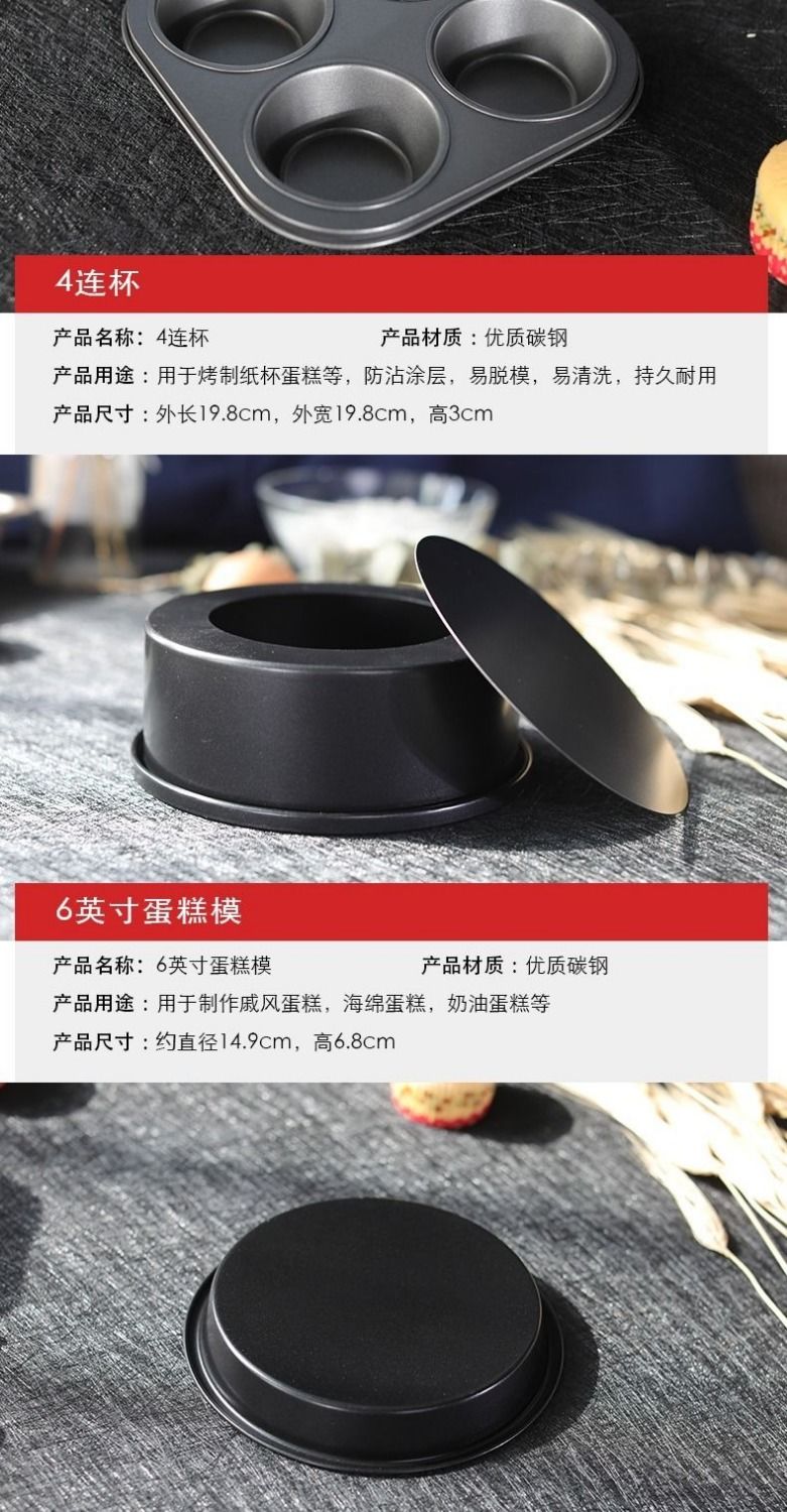 Baking tool set for beginners, household biscuit materials, novice pizza pan, oven baking, chiffon cake mold, Yafo black small mold set, new egg beater tool upgrade