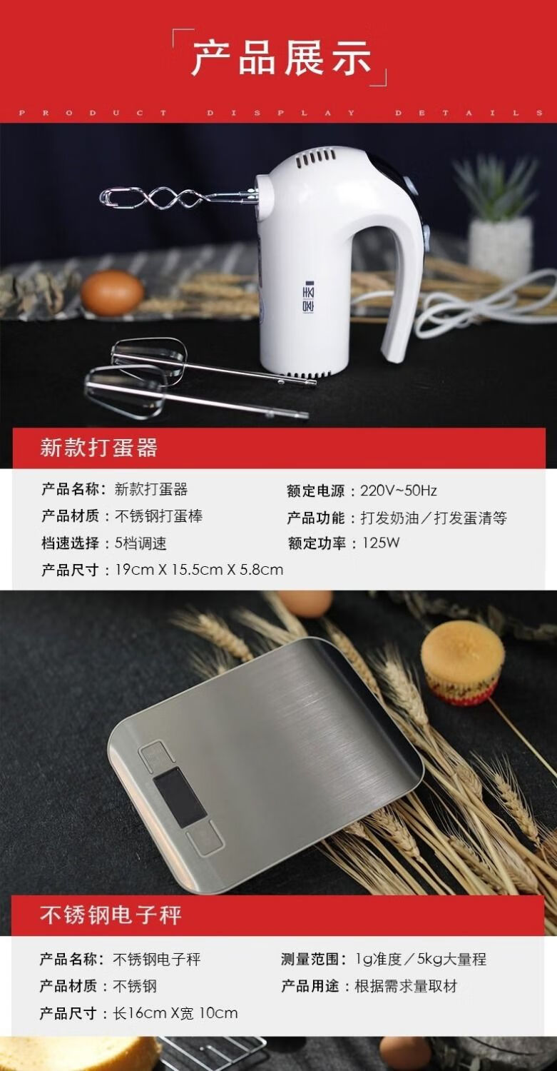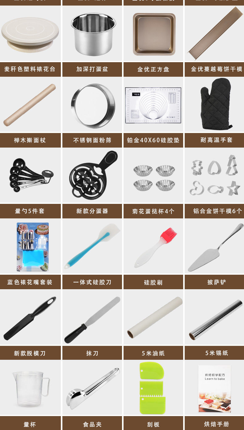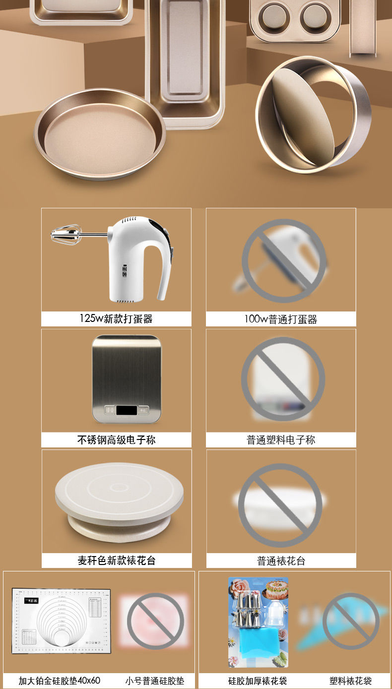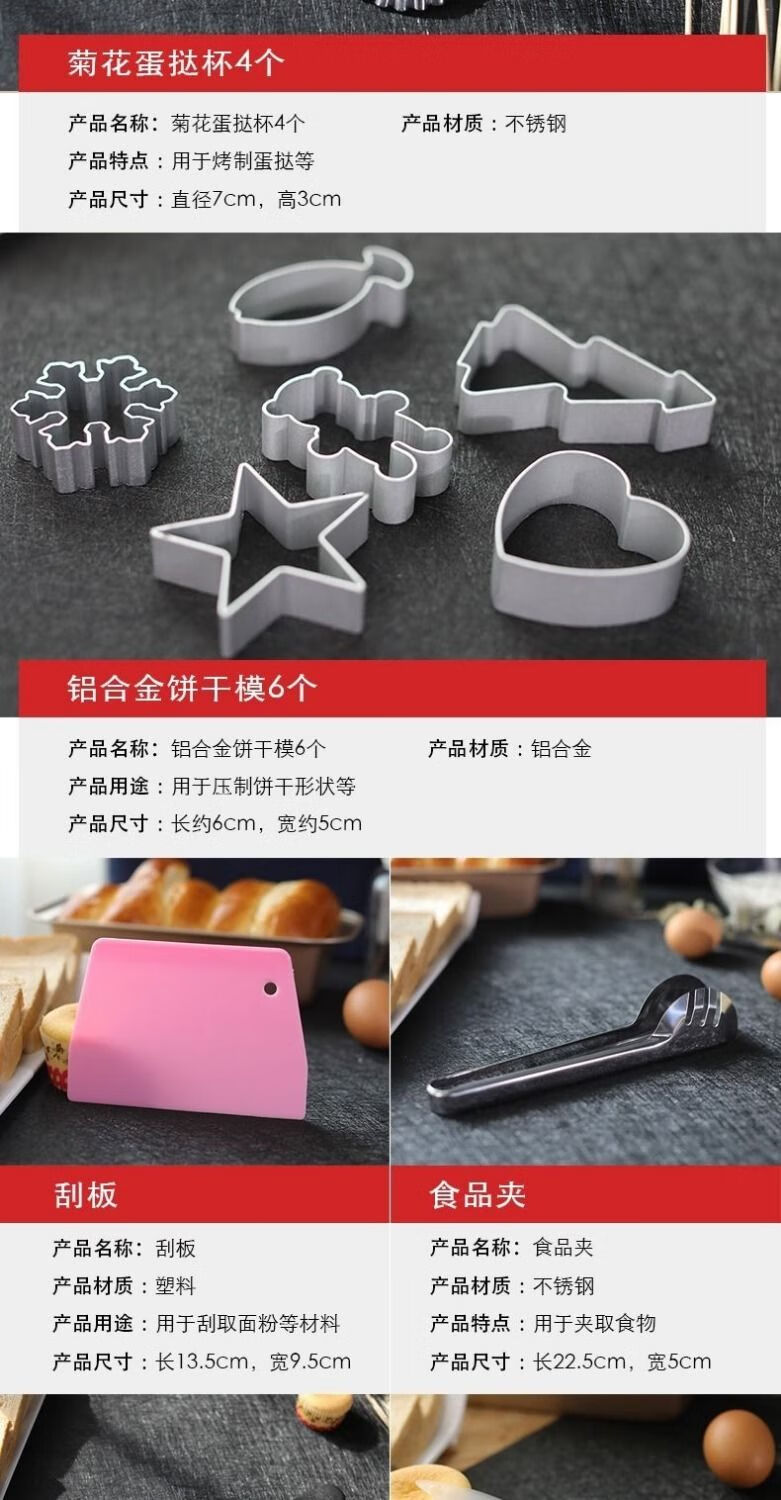 Baking tool set for beginners, household biscuit materials, novice pizza pan, oven baking, chiffon cake mold, Yafo black small mold set, new egg beater tool upgrade