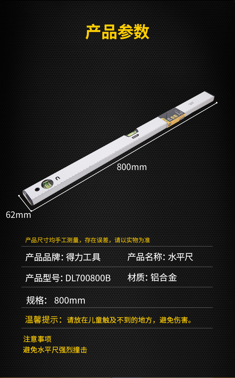 Deli tool level household high-precision solid multi-function ruler measuring level plumber decoration tool magnetic level 300mm DL700300B