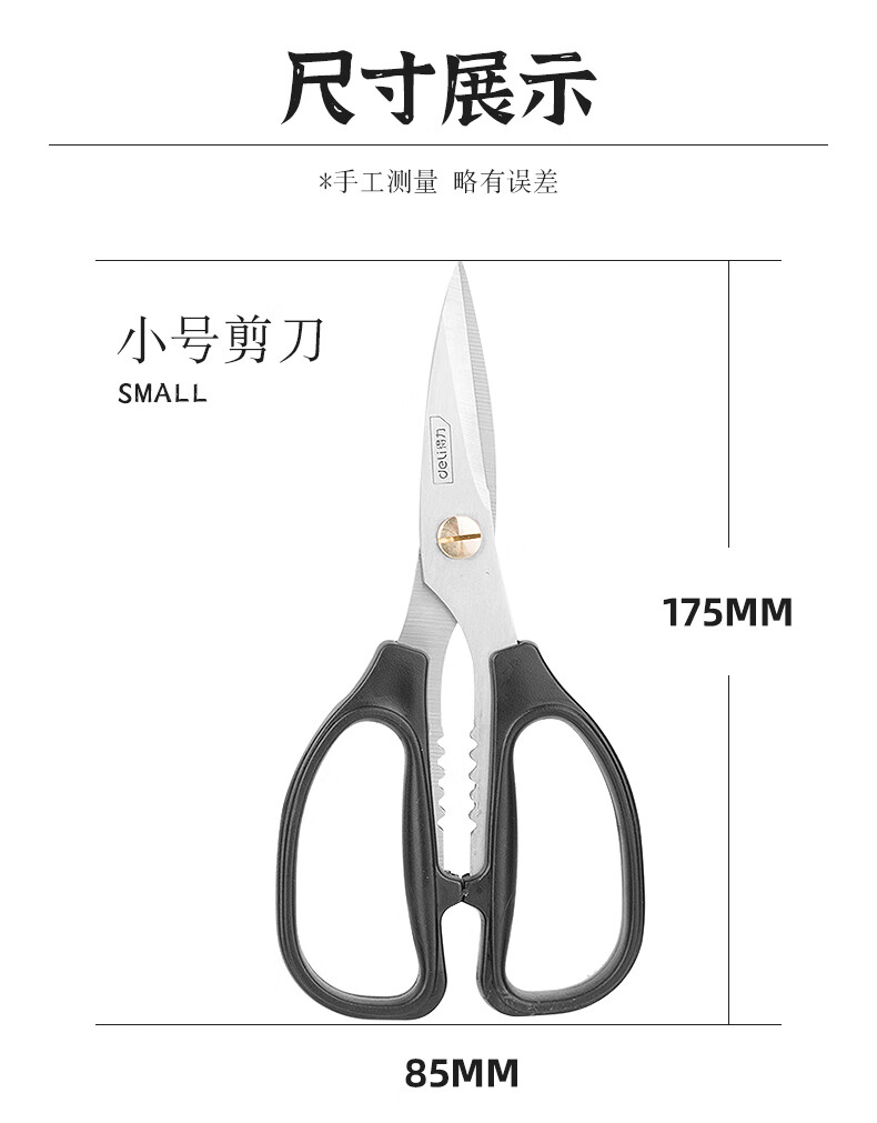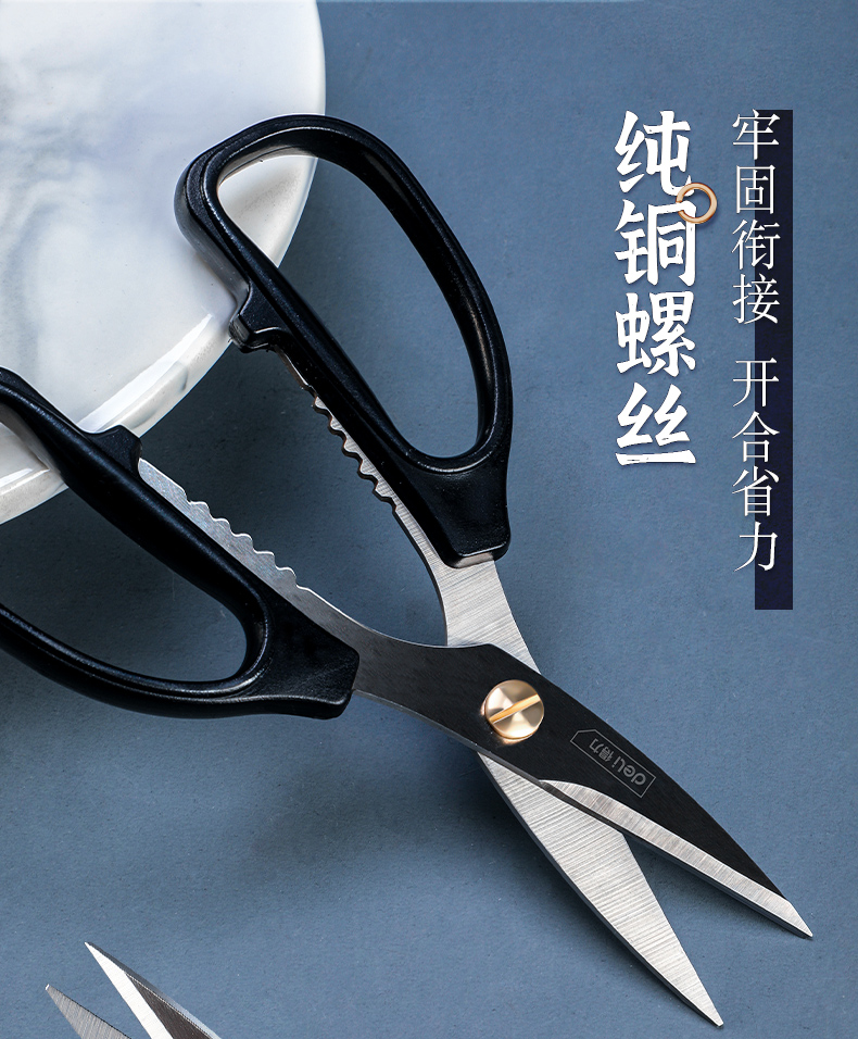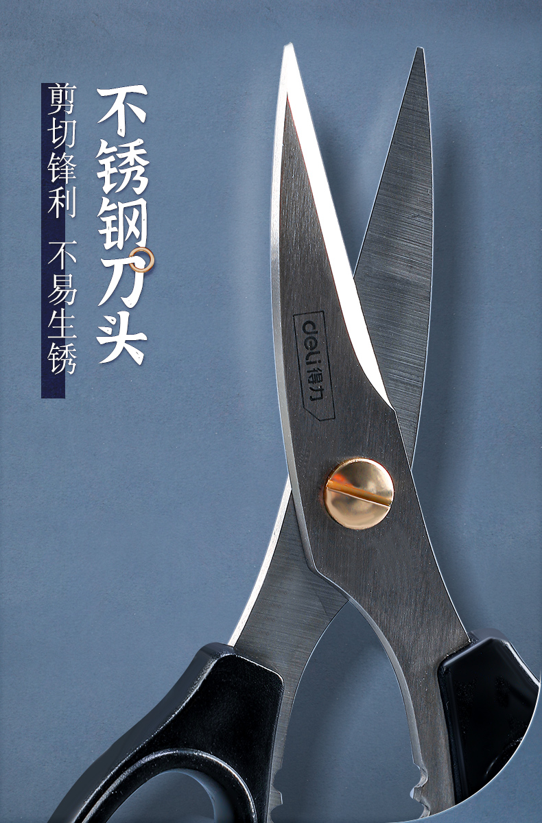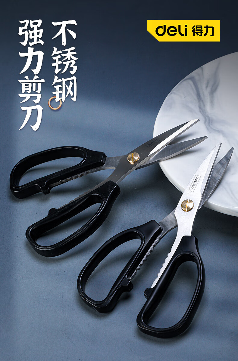 Deli household powerful scissors stainless steel multifunctional kitchen scissors civilian scissors hand tools stainless steel powerful scissors 170mm ABS handle DL2614
