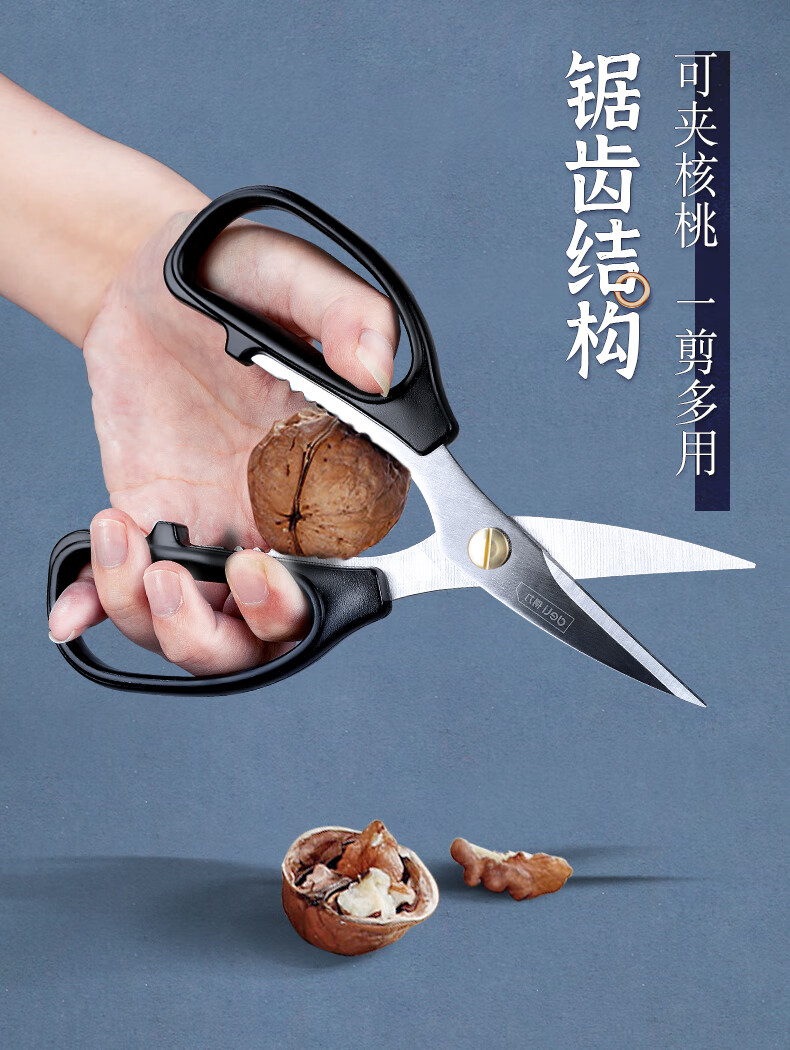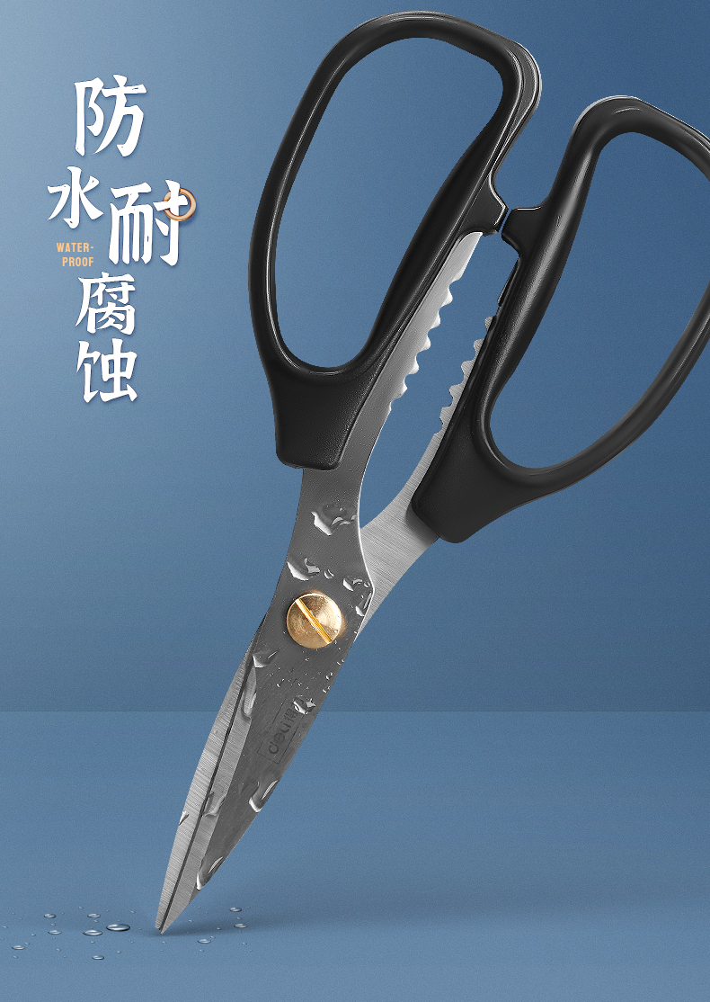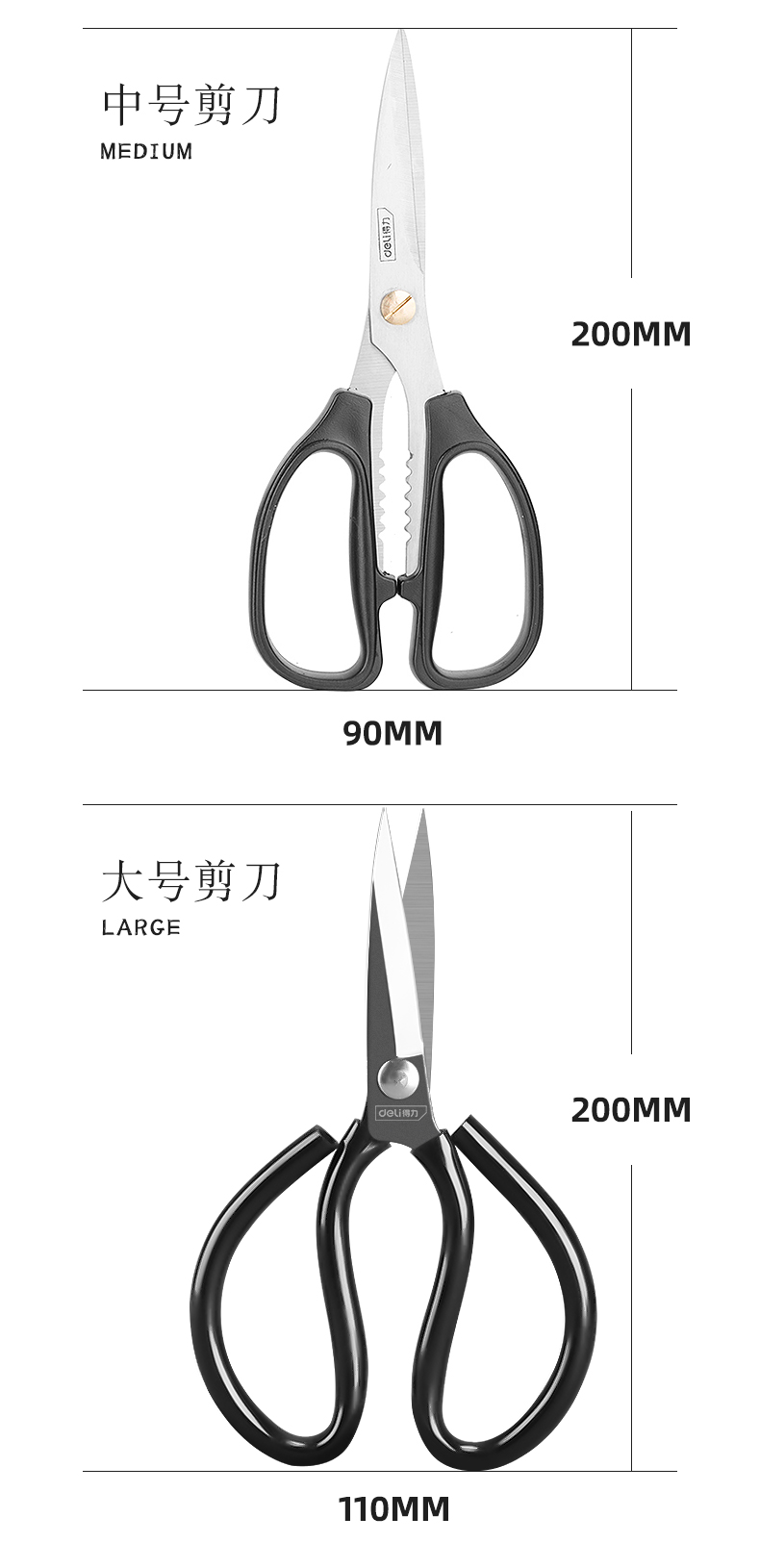 Deli household powerful scissors stainless steel multifunctional kitchen scissors civilian scissors hand tools stainless steel powerful scissors 170mm ABS handle DL2614