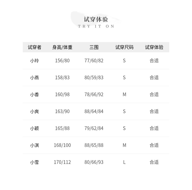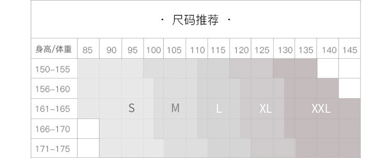 China (cm) 160-165/84-86 165-170 / 88-90 167-172 / 92-96 168-173 / 98-102 170-176 / 106-110