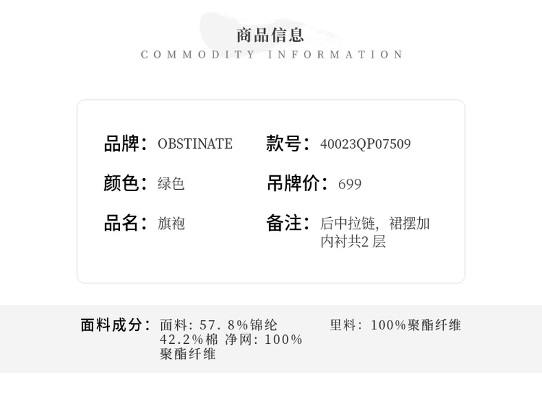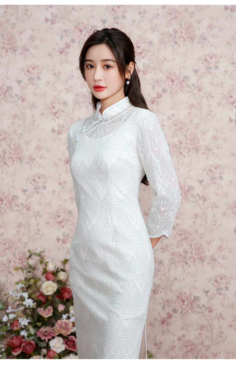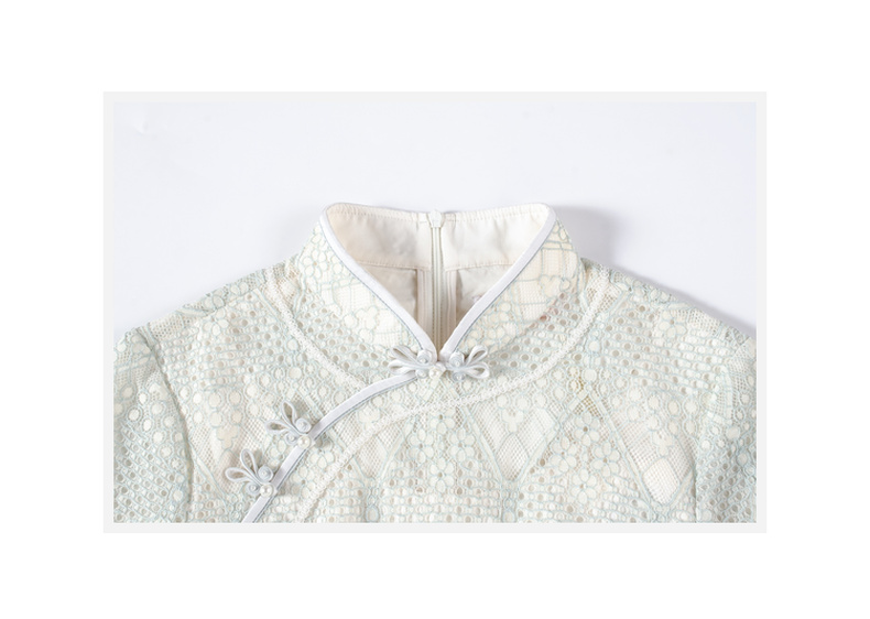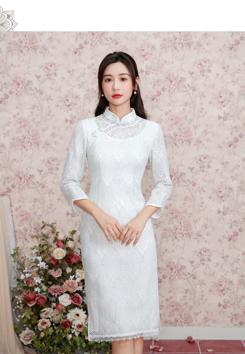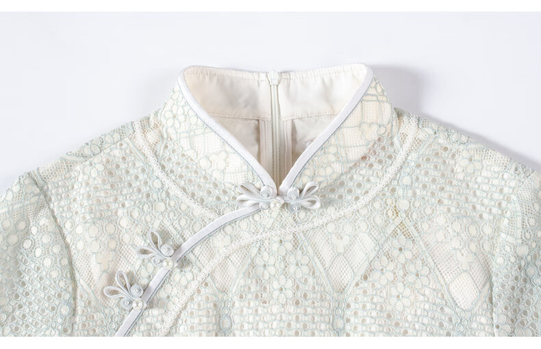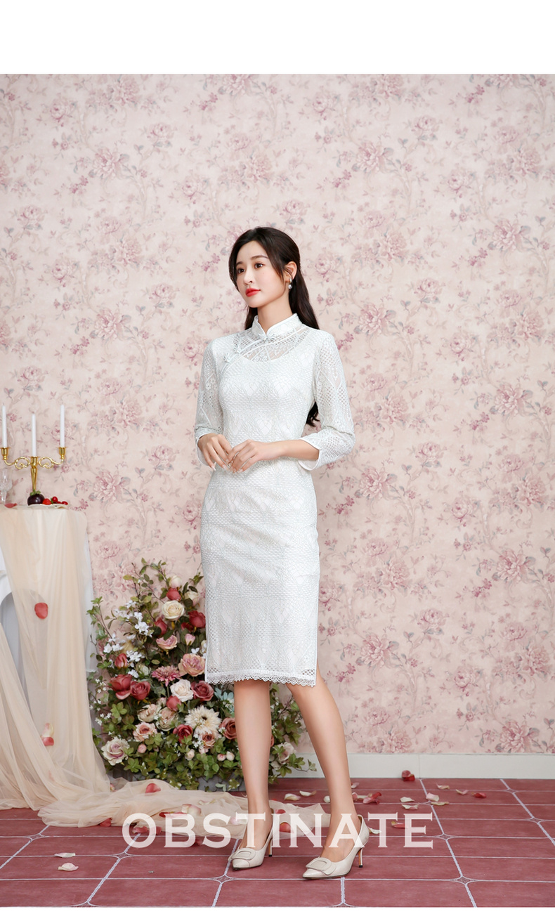 OBSTINATE Clearance Price Autumn New New Chinese Style National Style Lace Three Quarter Sleeve Waist Cheongsam Dress Women's Green S 160/80A
